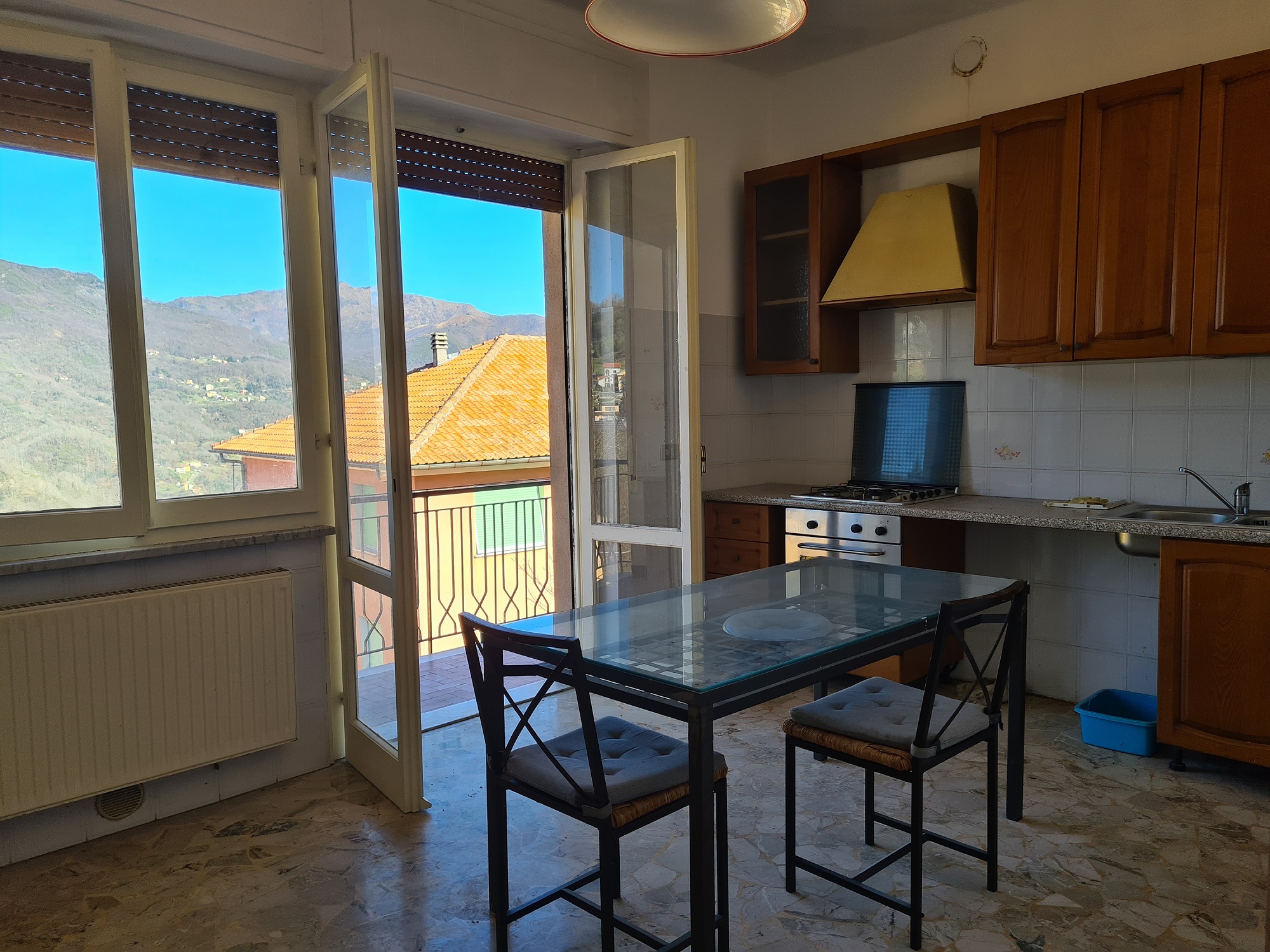 nel Comune di Lumarzo in località Piane, in posizione comoda ai negozi ed ai mezzi pubblici , in palazzina anni ' 60 appartamento al terzo piano (la palazzina non è dotata di ascensore) composto da ingresso, due camere (una servita da balconata), soggiorno, cucina abitabile (ampia, luminosa ed affacciata su balconata panoramica), disimpegno e servizi (con vasca e finestra) per complessivi 80 mq. utili (oltre alle due balconate)