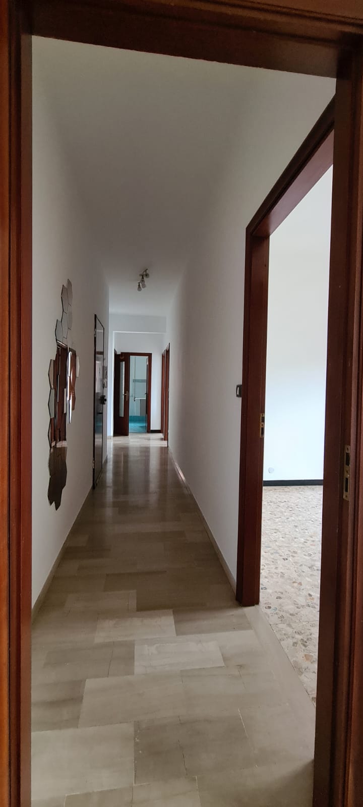 appartamento al quarto piano (il palazzo è dotato di ascensore) composto da ingresso, soggiorno, cucina abitabile, due camere (entrambe matrimoniali), disimpegno e servizi (ampi, con doccia e finestra) oltre a balconata per complessivi 80 mq. utili (balconata esclusa).