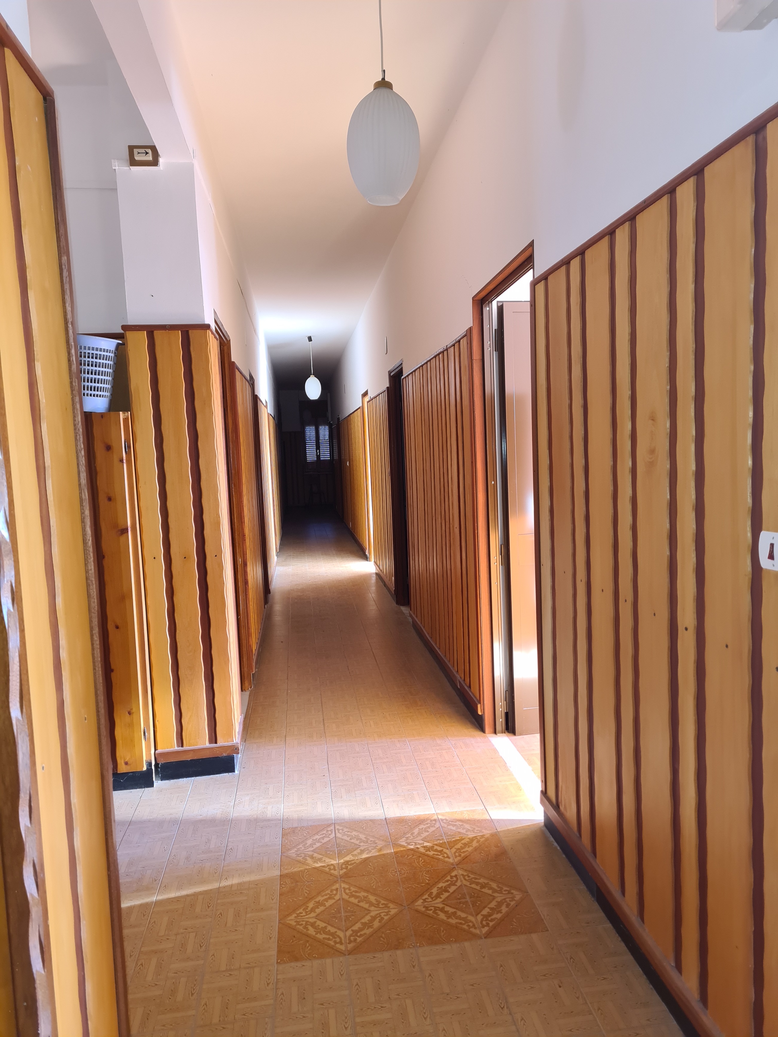 a) un corpo principale su quattro livelli : 1) grande salone a taverna – centrale termica – cantine magazzini al piano sottostrada 2) veranda d'accesso, locale bar reception – cucina - locali tecnici – servizi e salone ristorante al piano strada 3) n. 12 camere tutte con servizi e locali tecnici al primo piano 4) altre 12 camere tutte con servizi e locali tecnici al secondo piano. (i quattro livelli misurano complessivamente 1000 mq.)