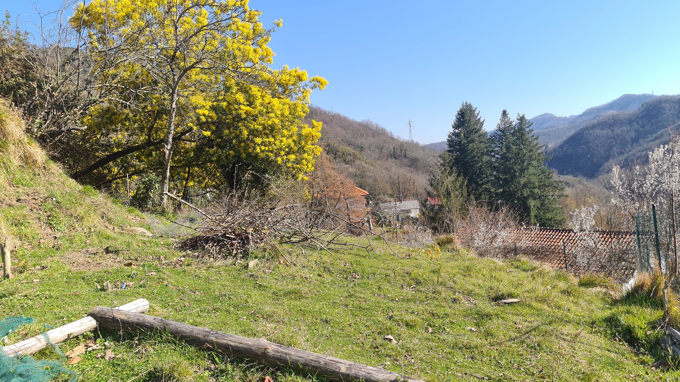 Piccolo cortile pertinenziale (con barbecue) e davvero interessante terreno a fasce, tutto utilizzabile ad orto, per circa 400 mq. complessivi, splendidamente esposto al sole.