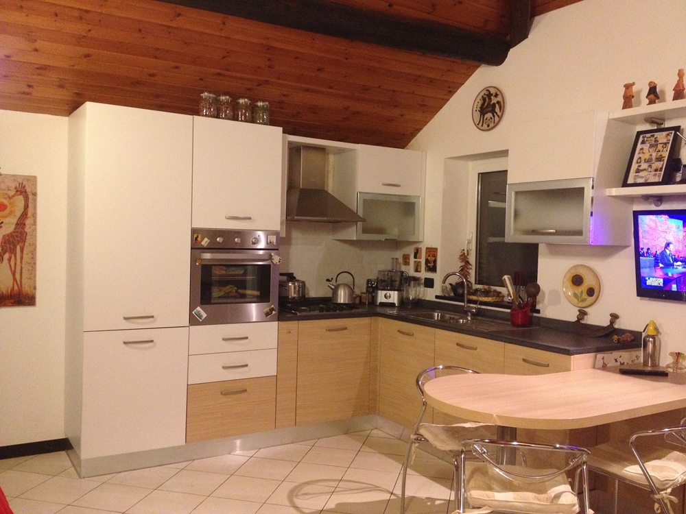 L'appartamento, che ha accesso da gradevole scala in muratura, è composto da veranda (con alloggio calderina), soggiorno con angolo cottura, camera matrimoniale (molto luminosa, con due finestre) e servizi (completi, con doccia e finestra) per complessivi 45 mq. utili, oltre alla terrazza di 24 mq. Al piano terreno, con accesso dal cortile pertinenziale, locale uso taverna di 18 mq. con portoncino e finestra.