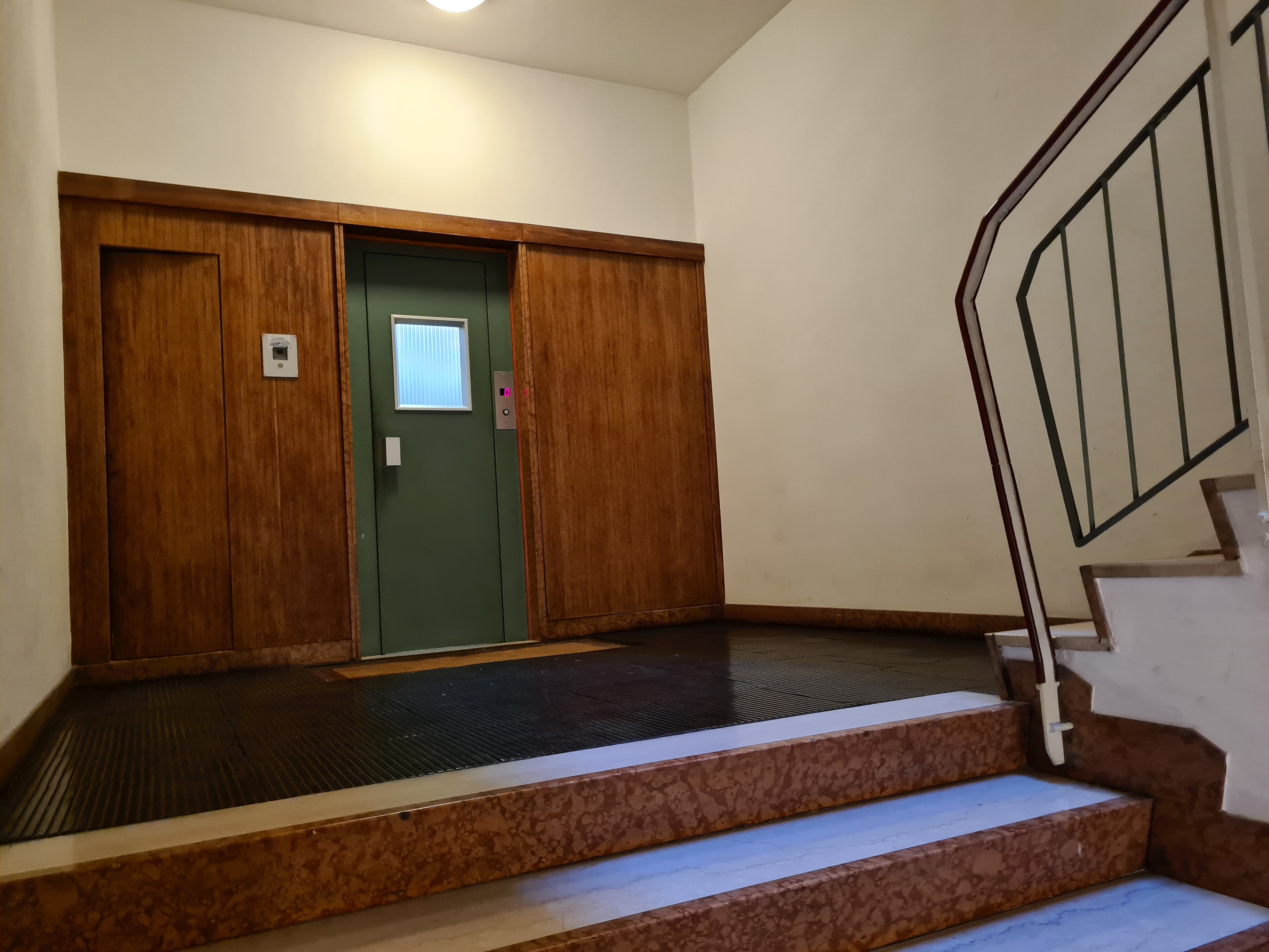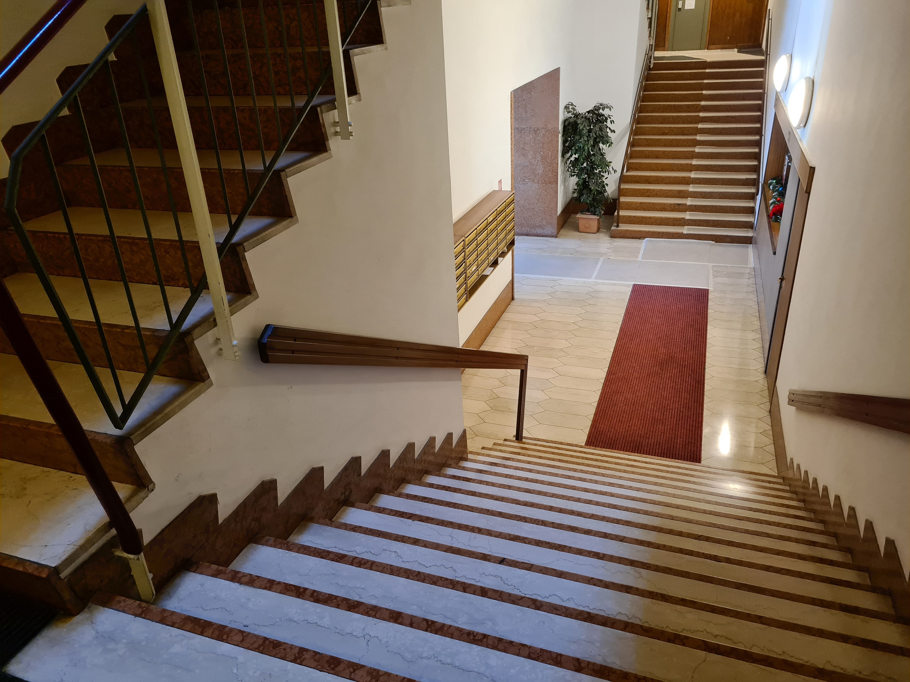 in elegante palazzo metà anni '60, con parti comuni (tetto, facciate, vano scale e portone) in più che buone condizioni,