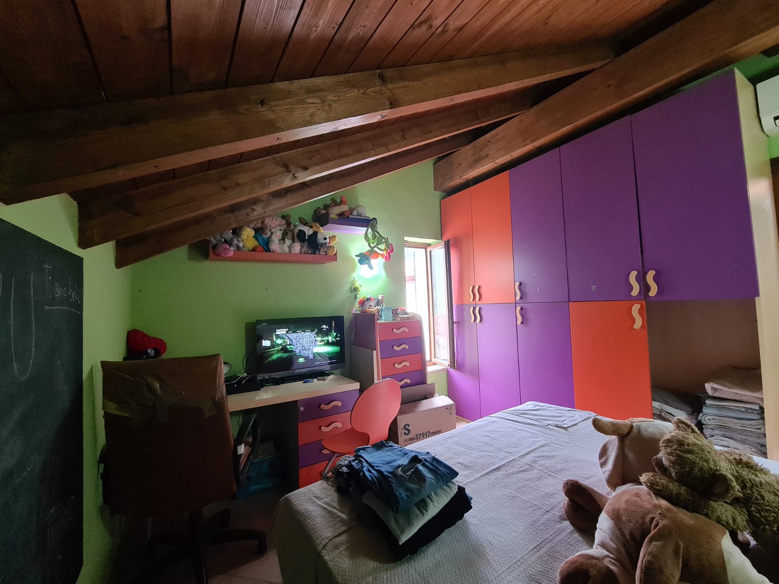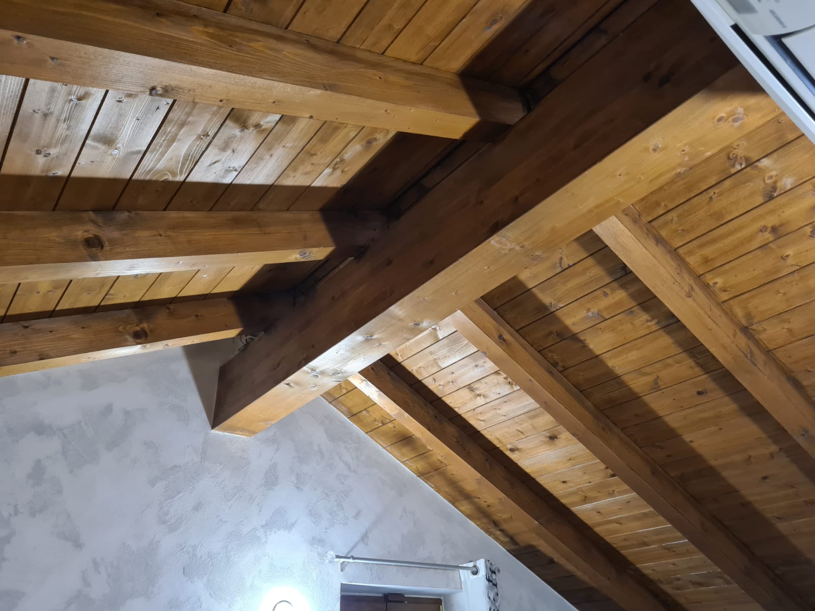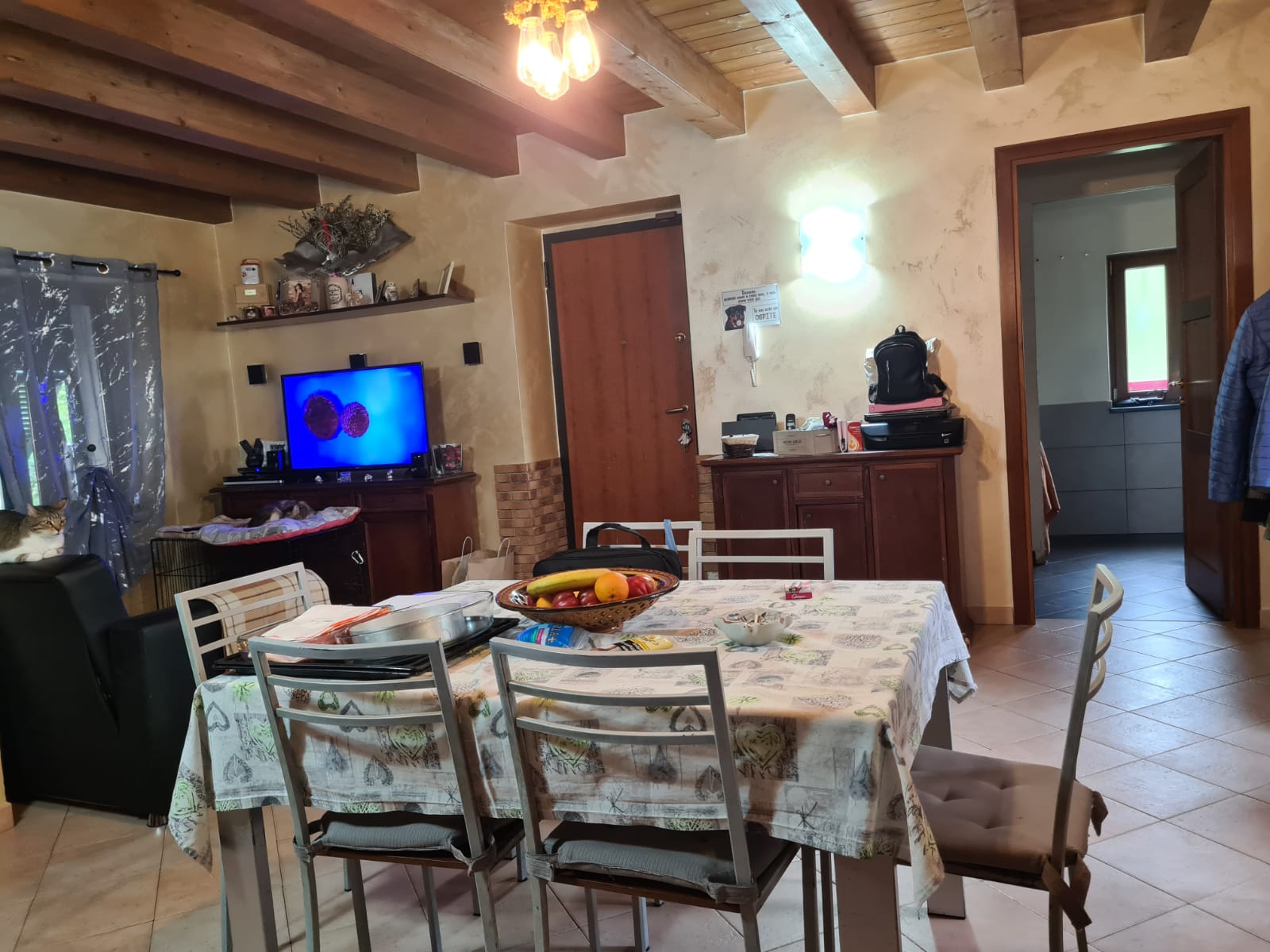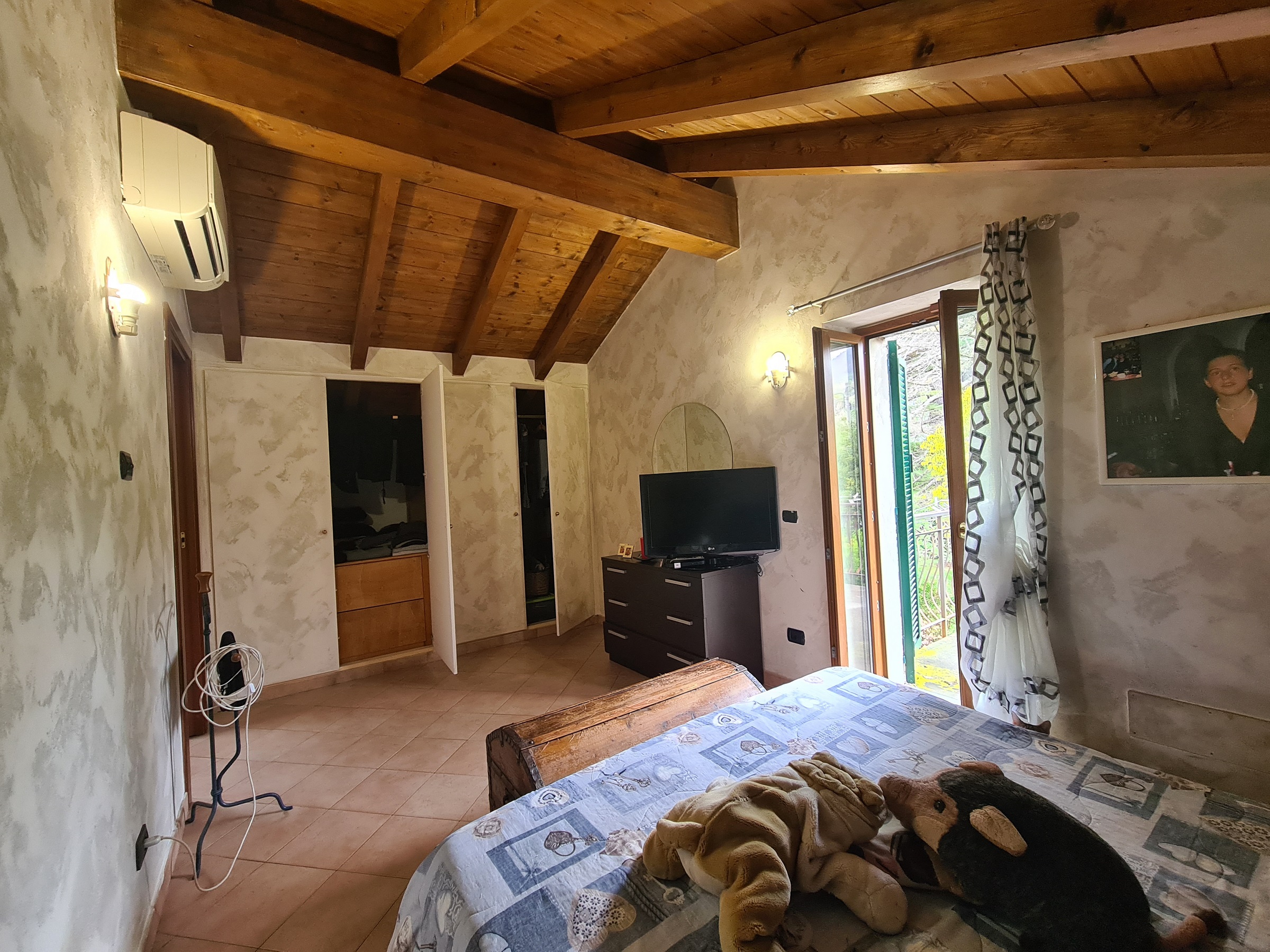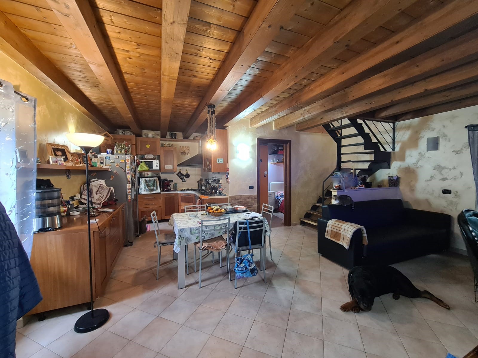 I serramenti sono di ultima generazione a taglio termico; caratteristici i soffitti con travi a vista.