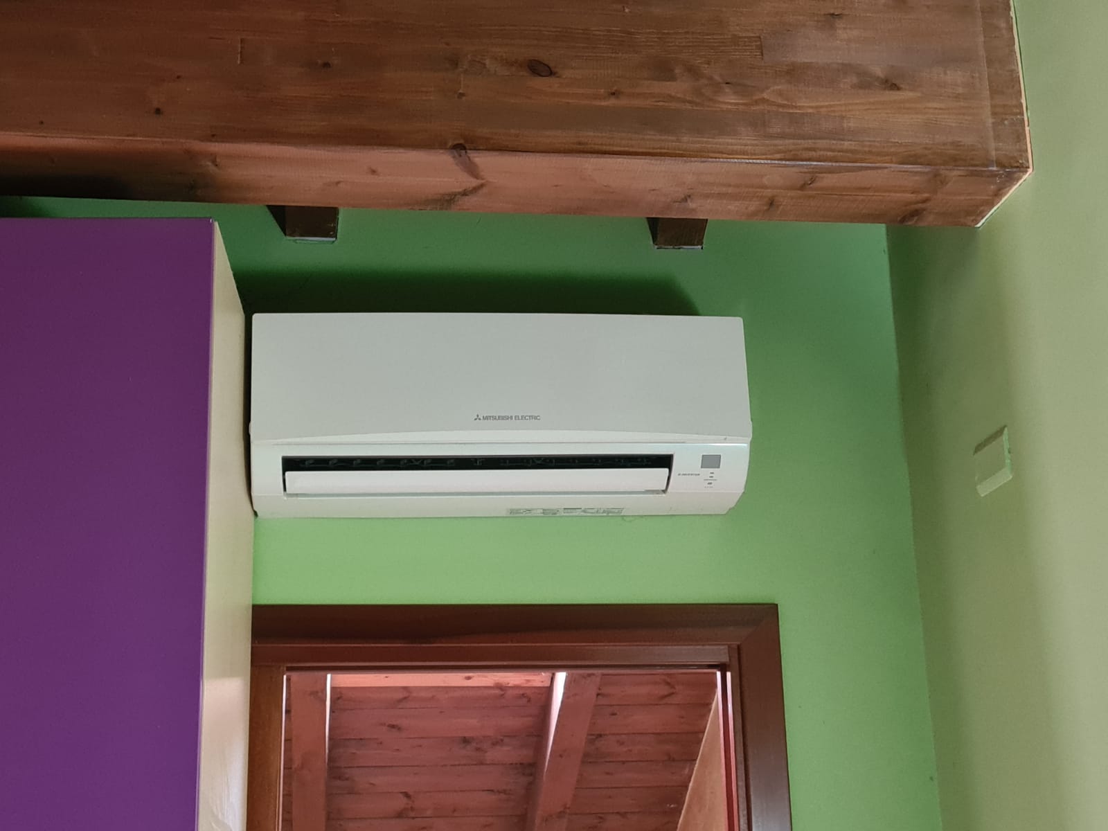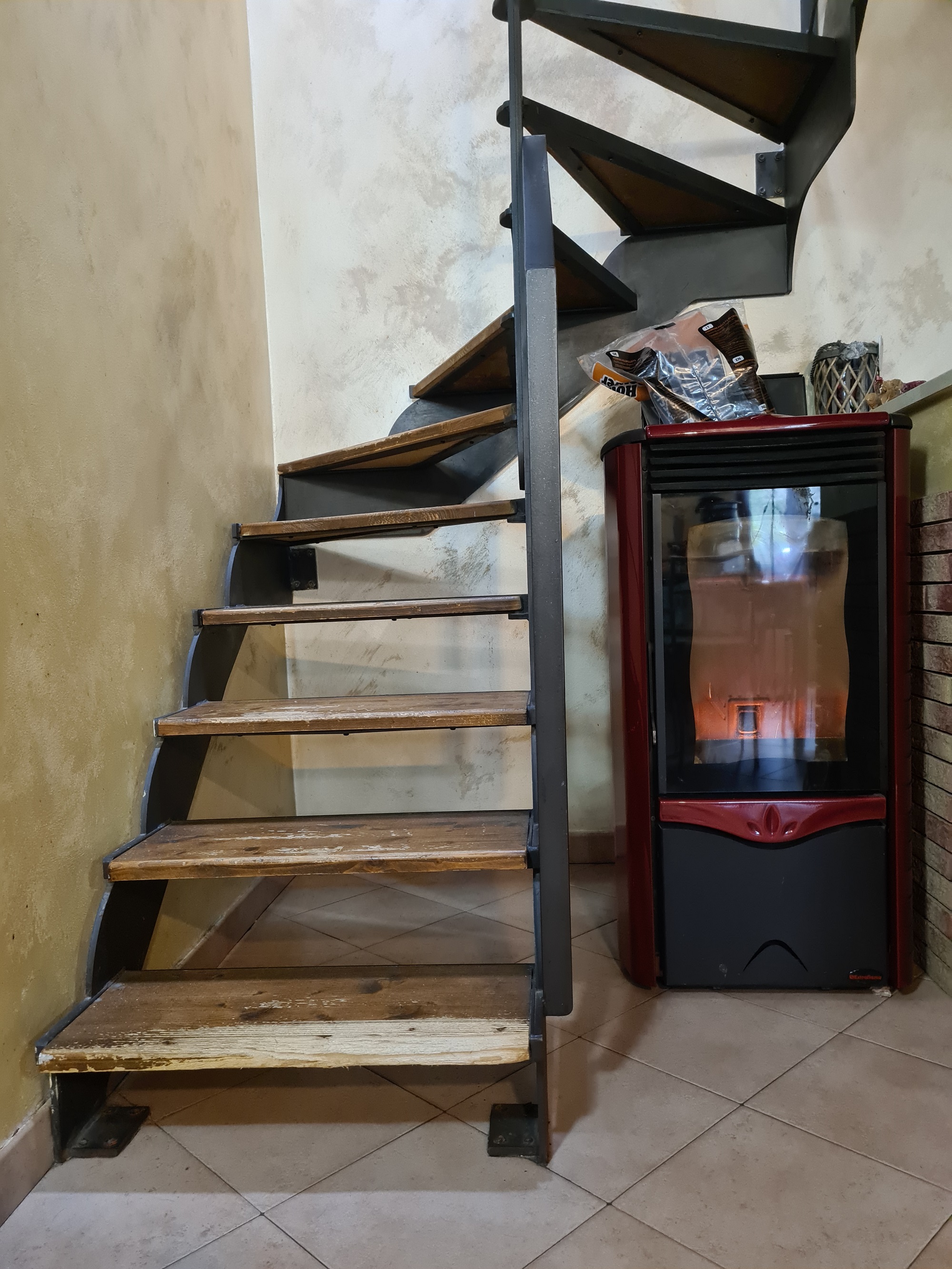 Impianto di riscaldamento autonomo con calderina a pellet ed elementi caldo freddo a pompa di calore nelle camere.
