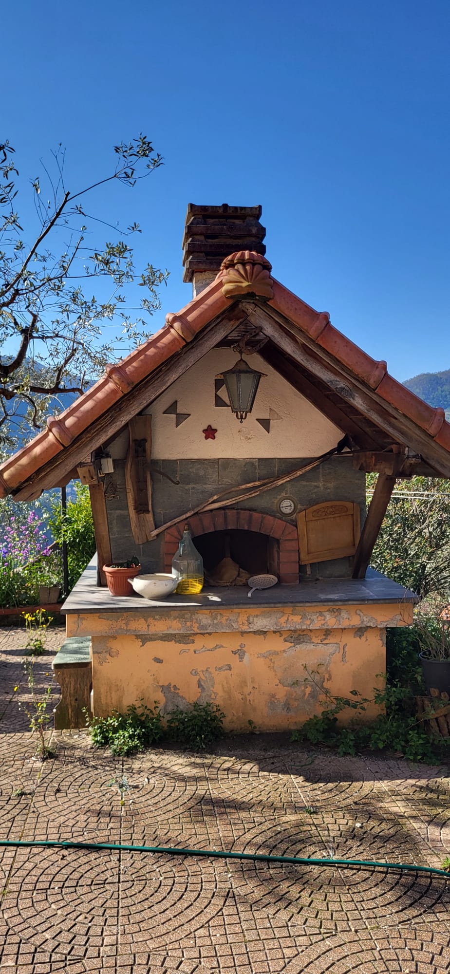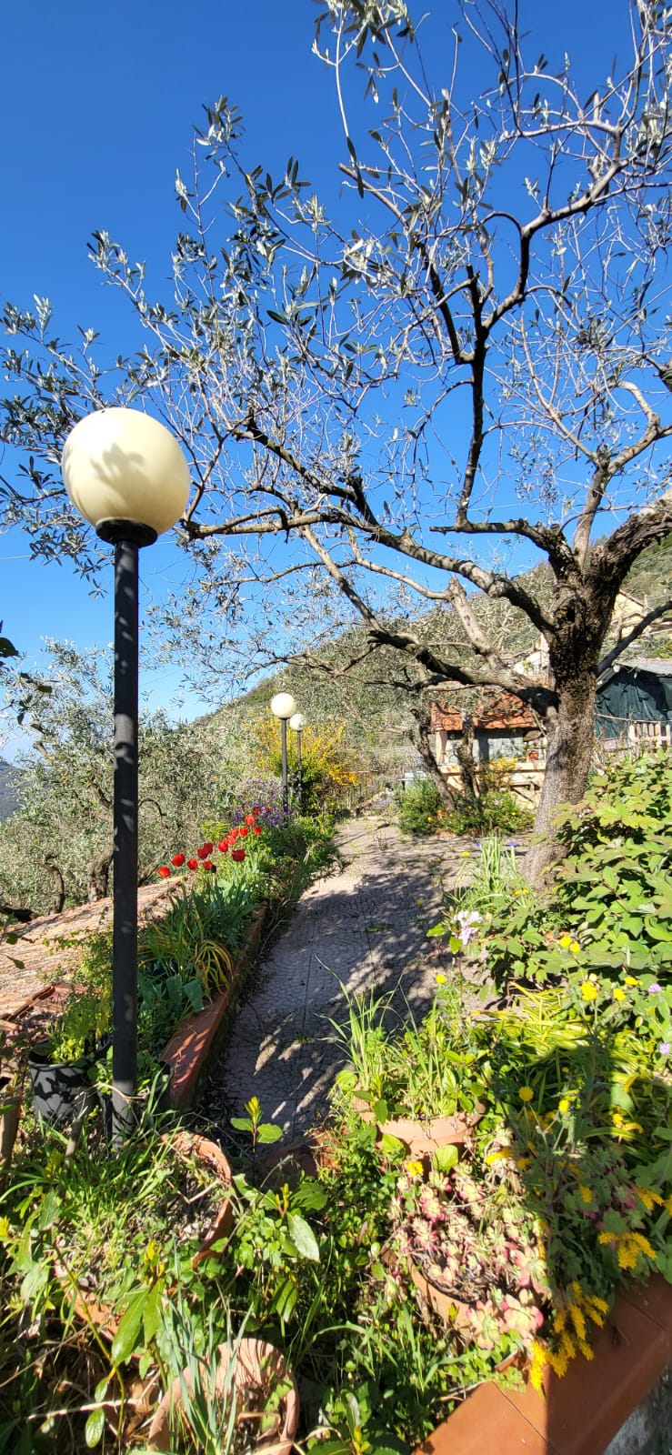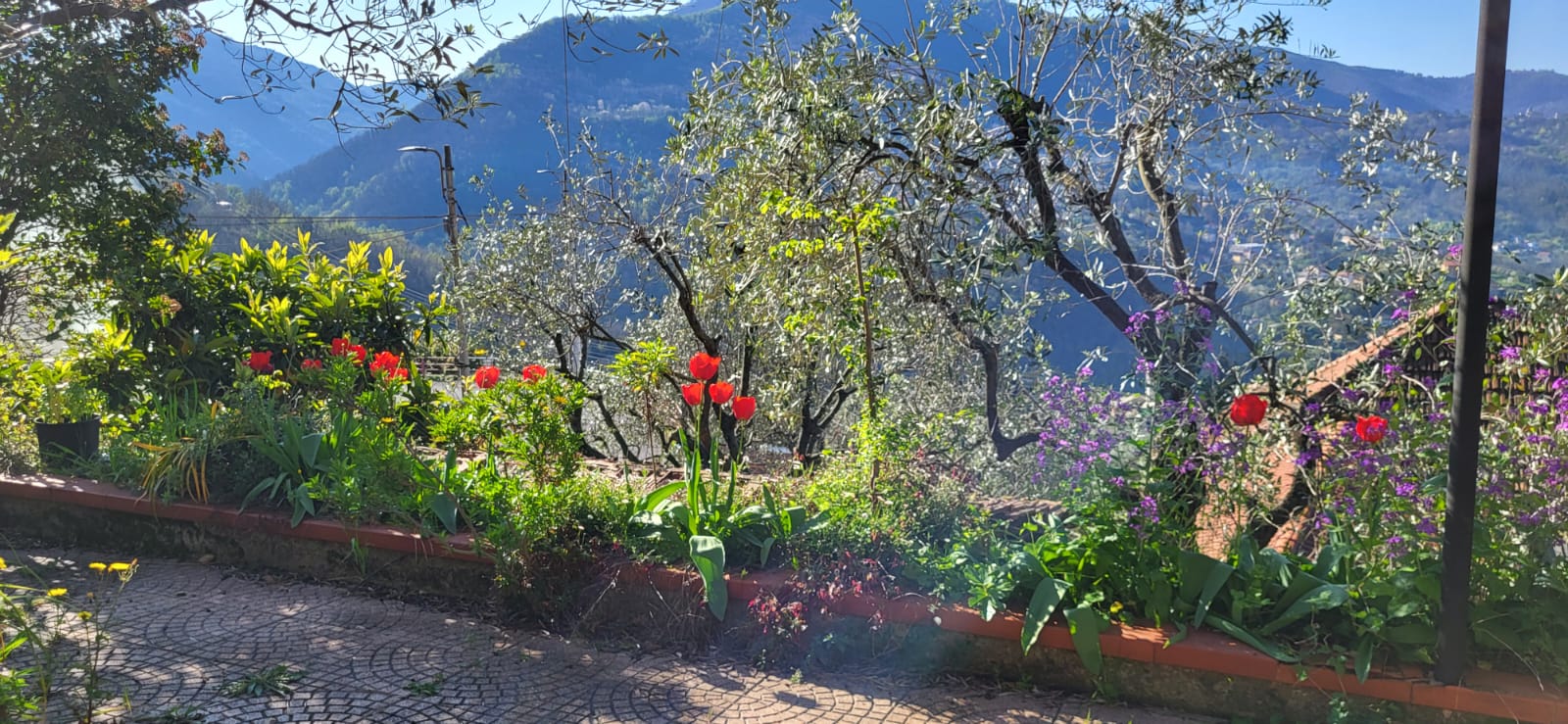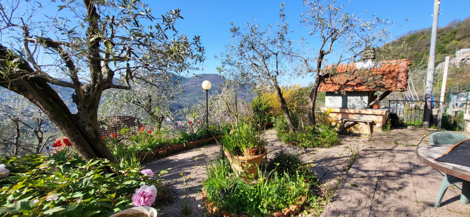Completano la proprietà un bellissimo giardino (in parte terrazzato ed attrezzato) e due belle fasce di terreno in adiacenza ad orto/giardino e con alberi da frutta. Tutta la proprietà è completamente delimitata e recintata. Gli spazi esterni (giardino terrazze e fasce ad orto) misurano complessivamente 530 mq.