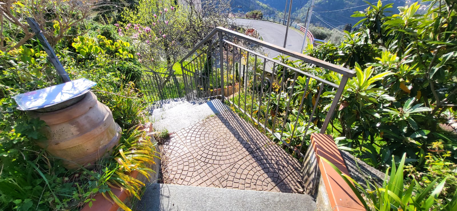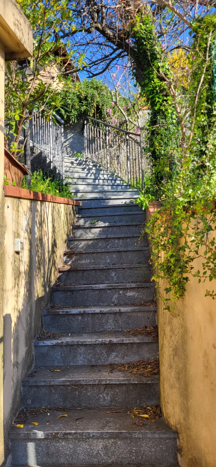 appartamento al piano terreno con ingresso completamente indipendente tramite piccola rampa d’accesso a box di proprietà (per auto medio piccole) e da cancello privato con caratteristica scaletta a salire all’orto, al giardino terrazzato ed alla proprietà tutta.
