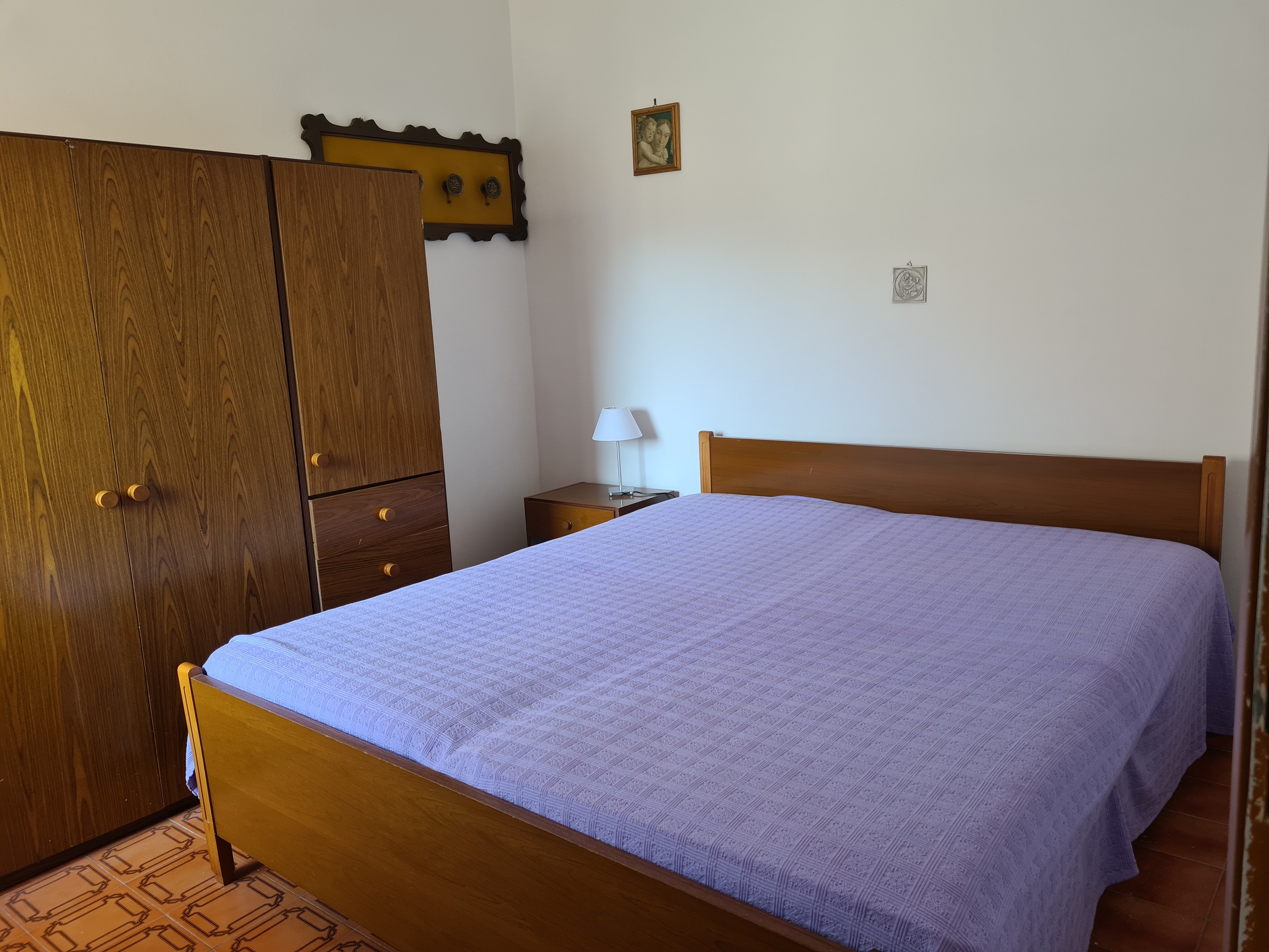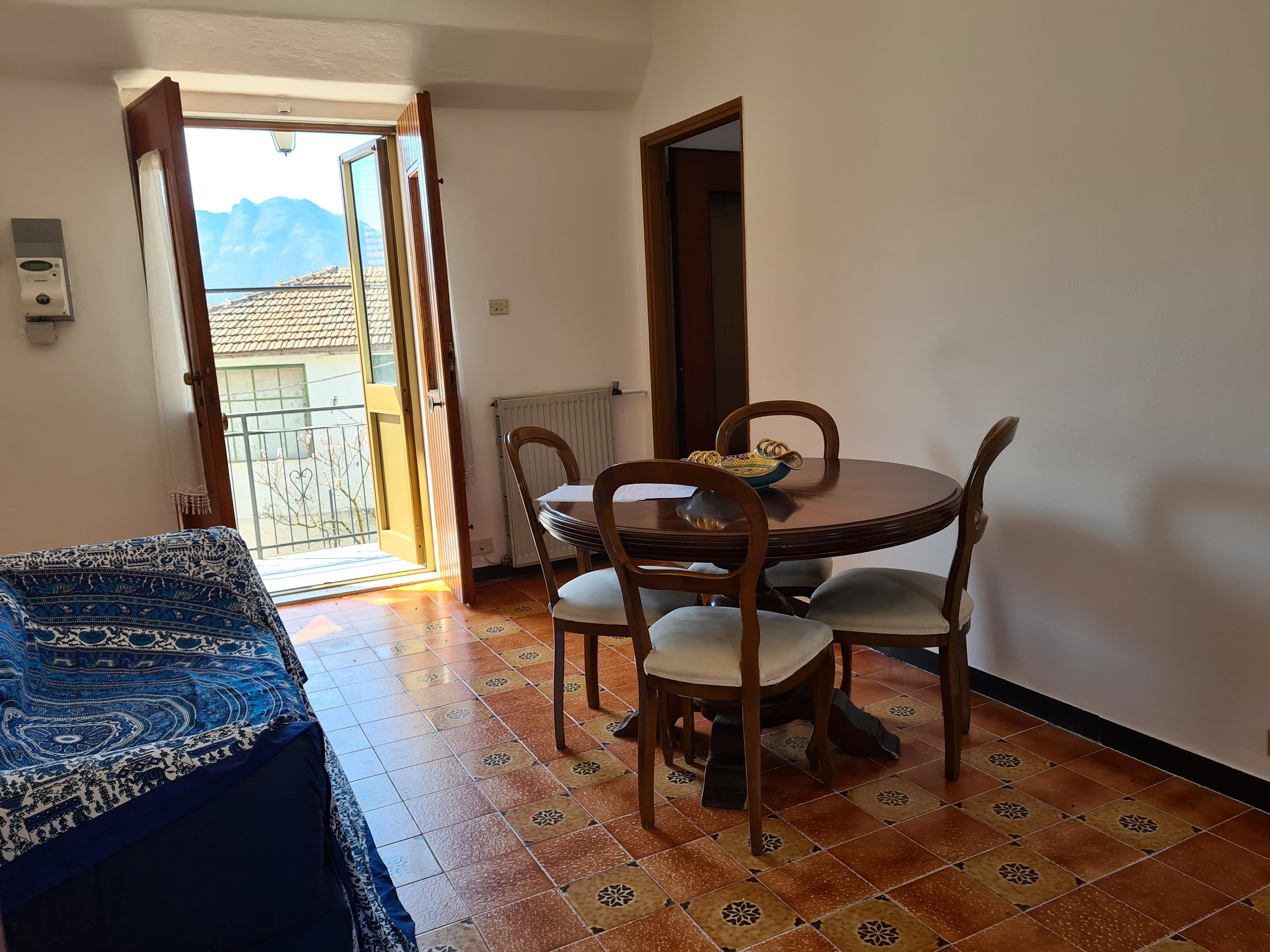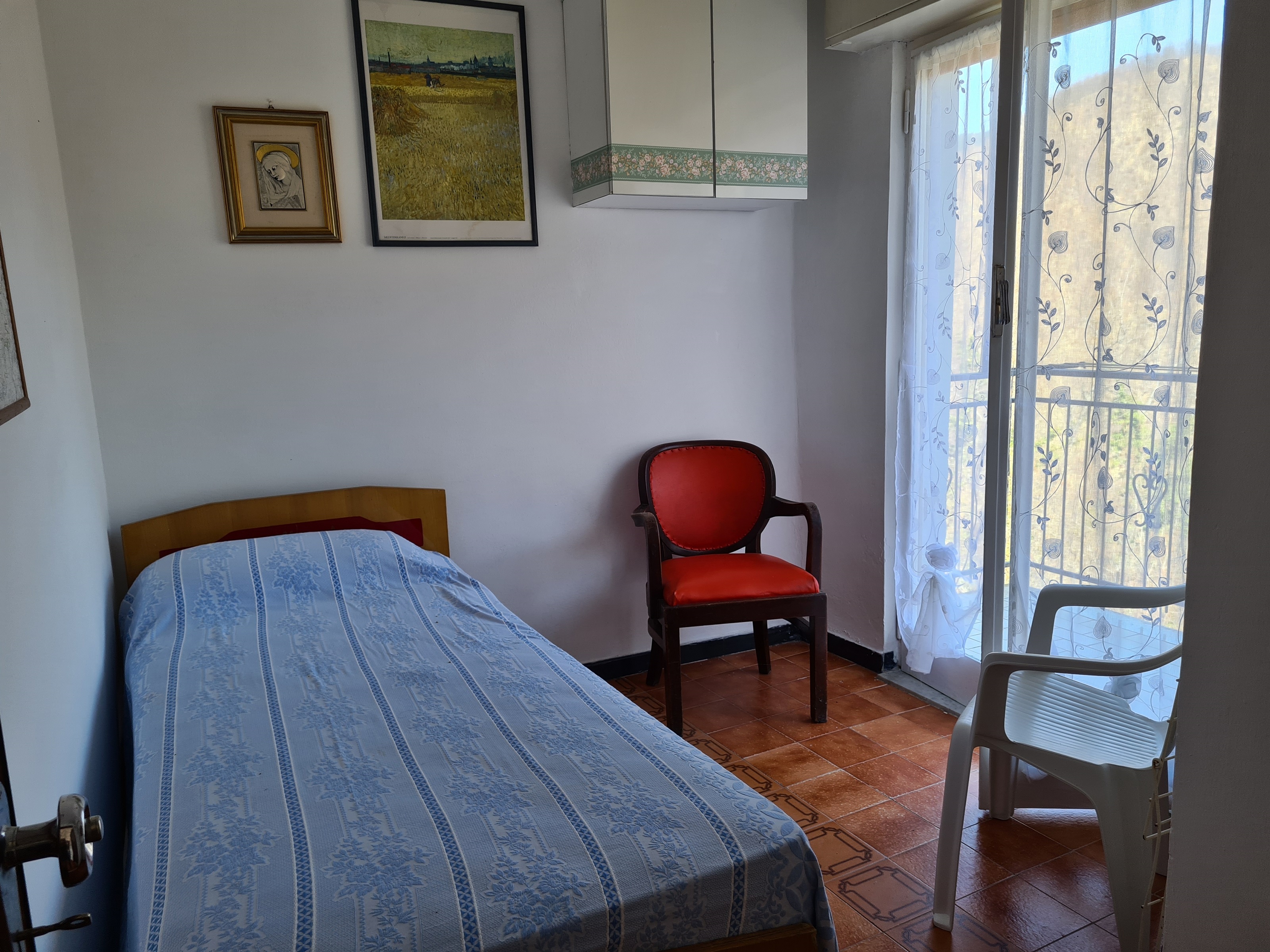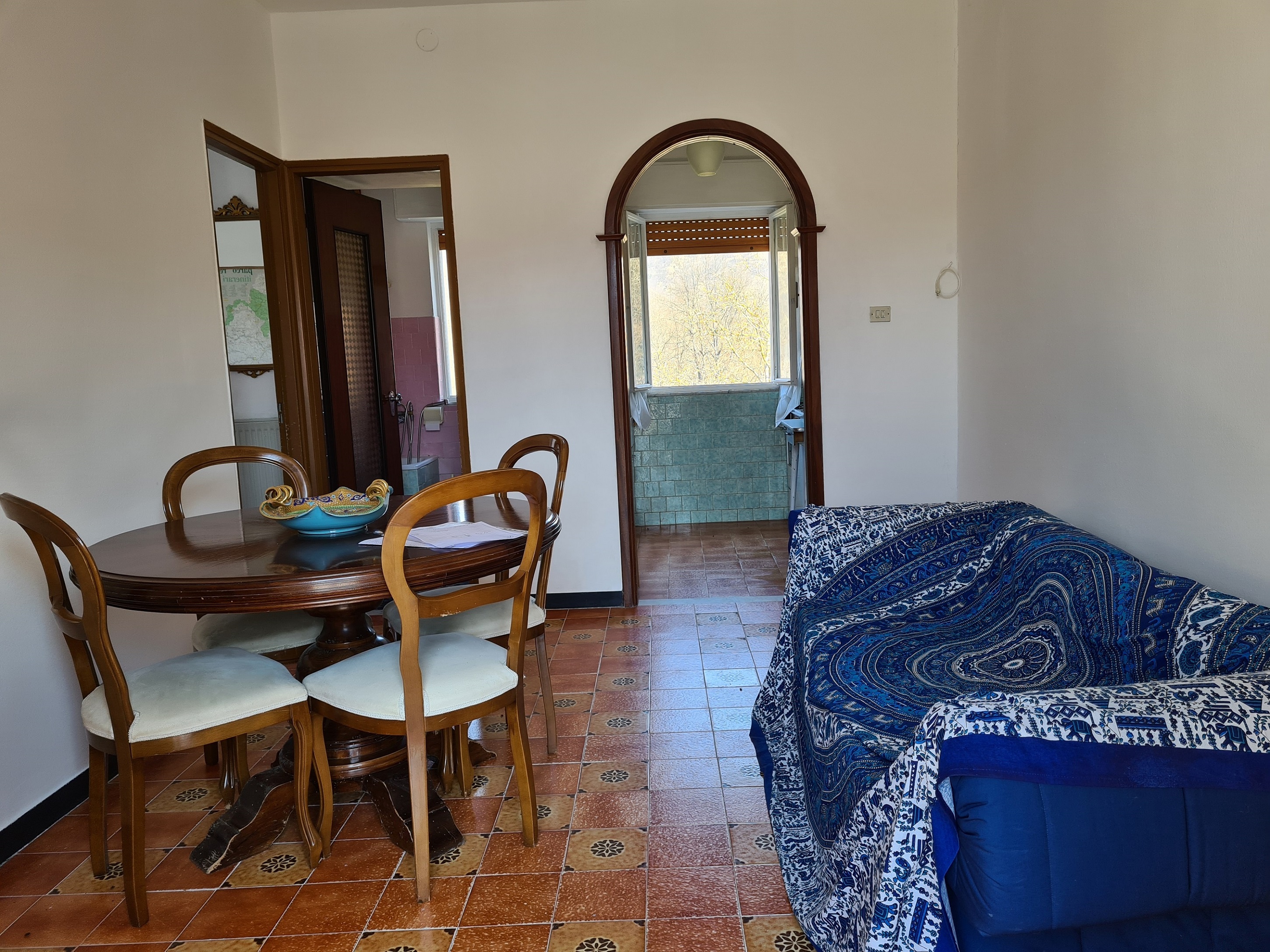 in casetta bifamiliare, appartamento al piano superiore, con accesso indipendente da scala esterna in muratura composto da gradevole piccolo terrazzo d'accesso, soggiorno, cucinino, camera matrimoniale, camera singola (affacciata su balcone panoramico) e servizi (con vasca e finestra) per complessivi 45 mq. utili (oltre al terrazzo ed al poggiolo).