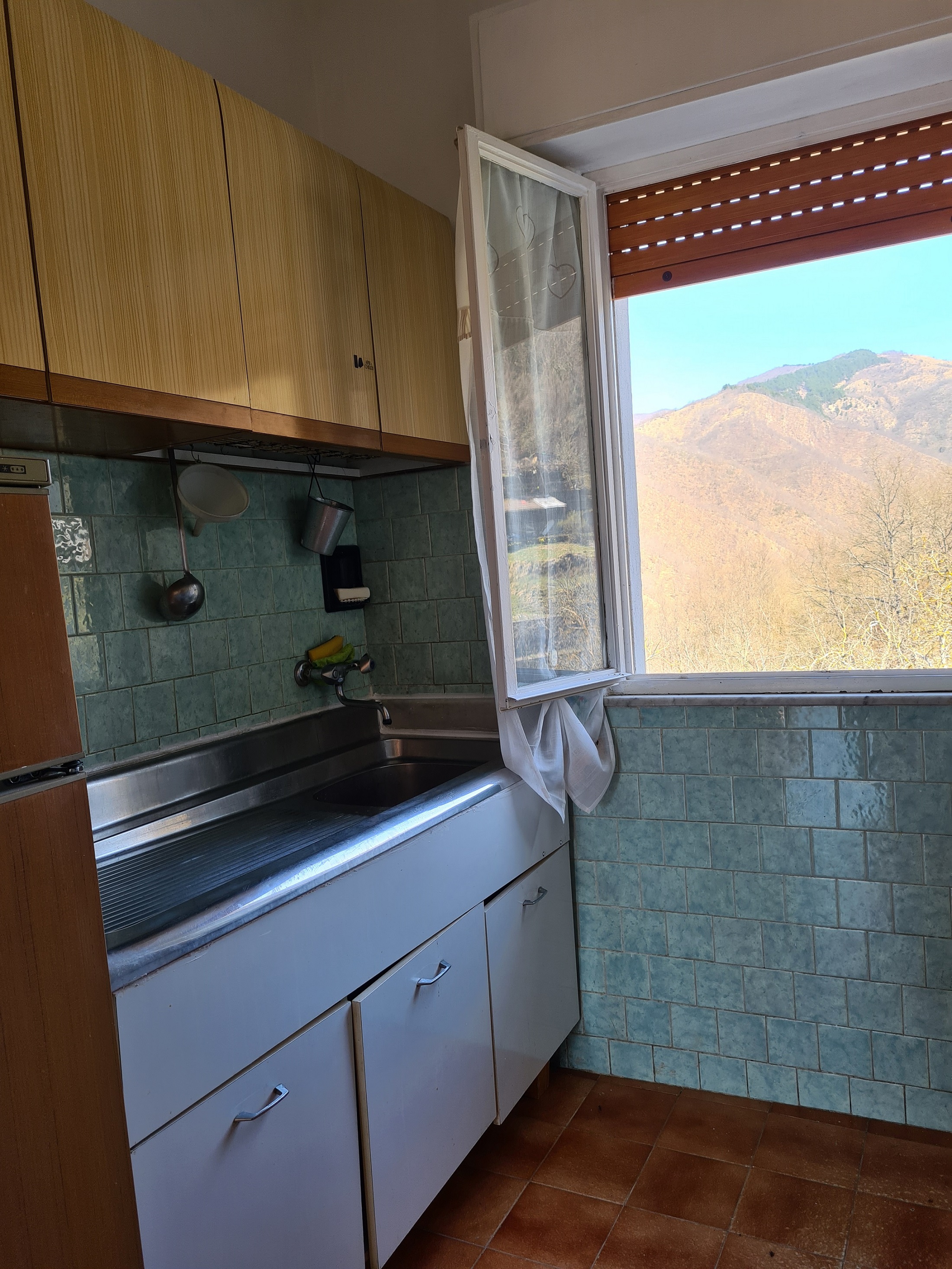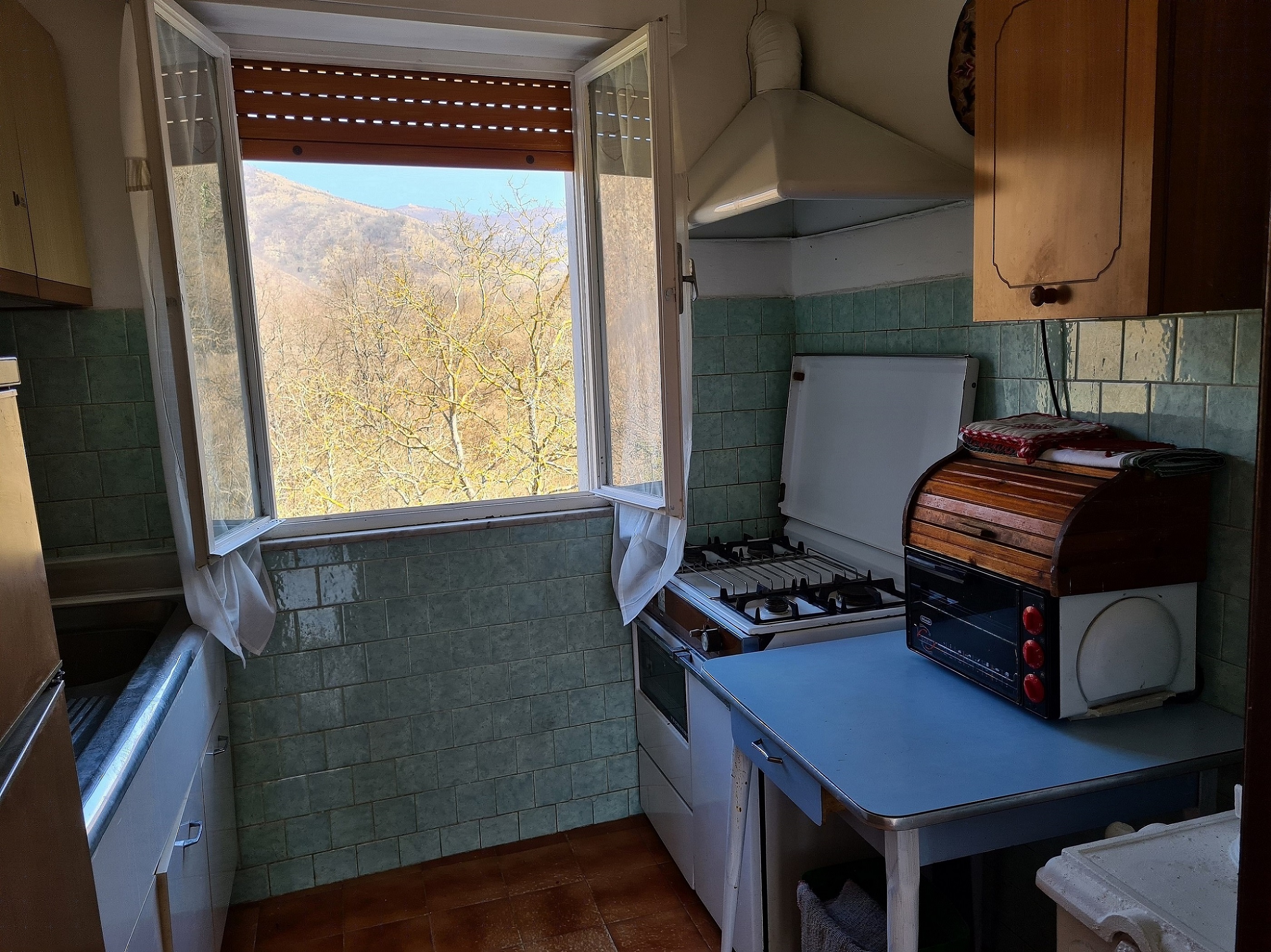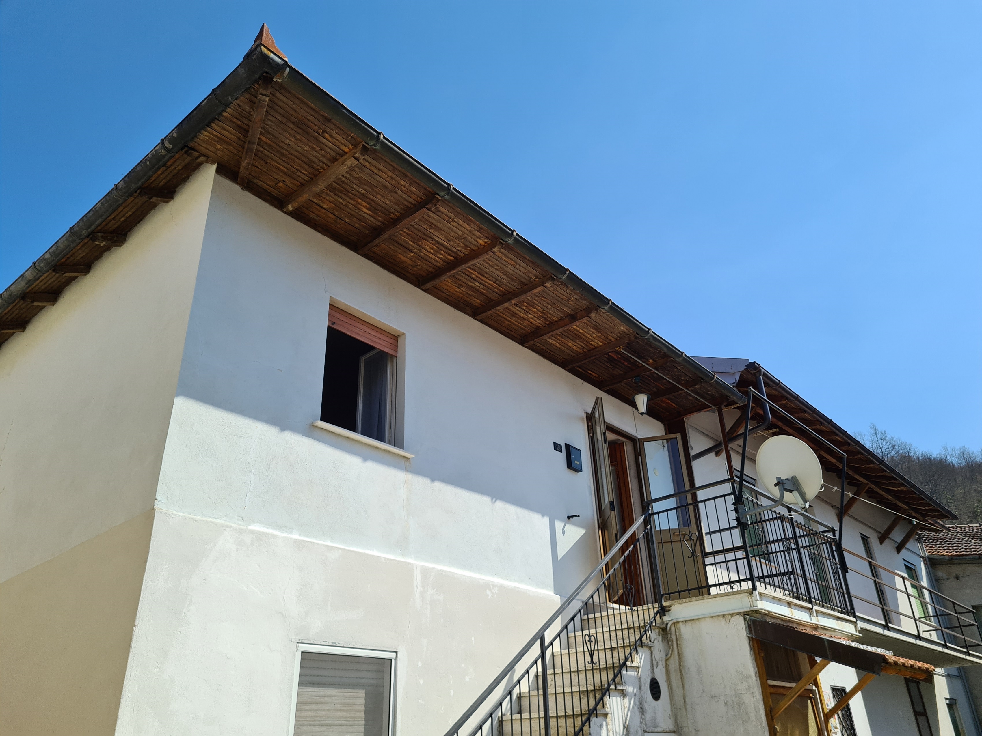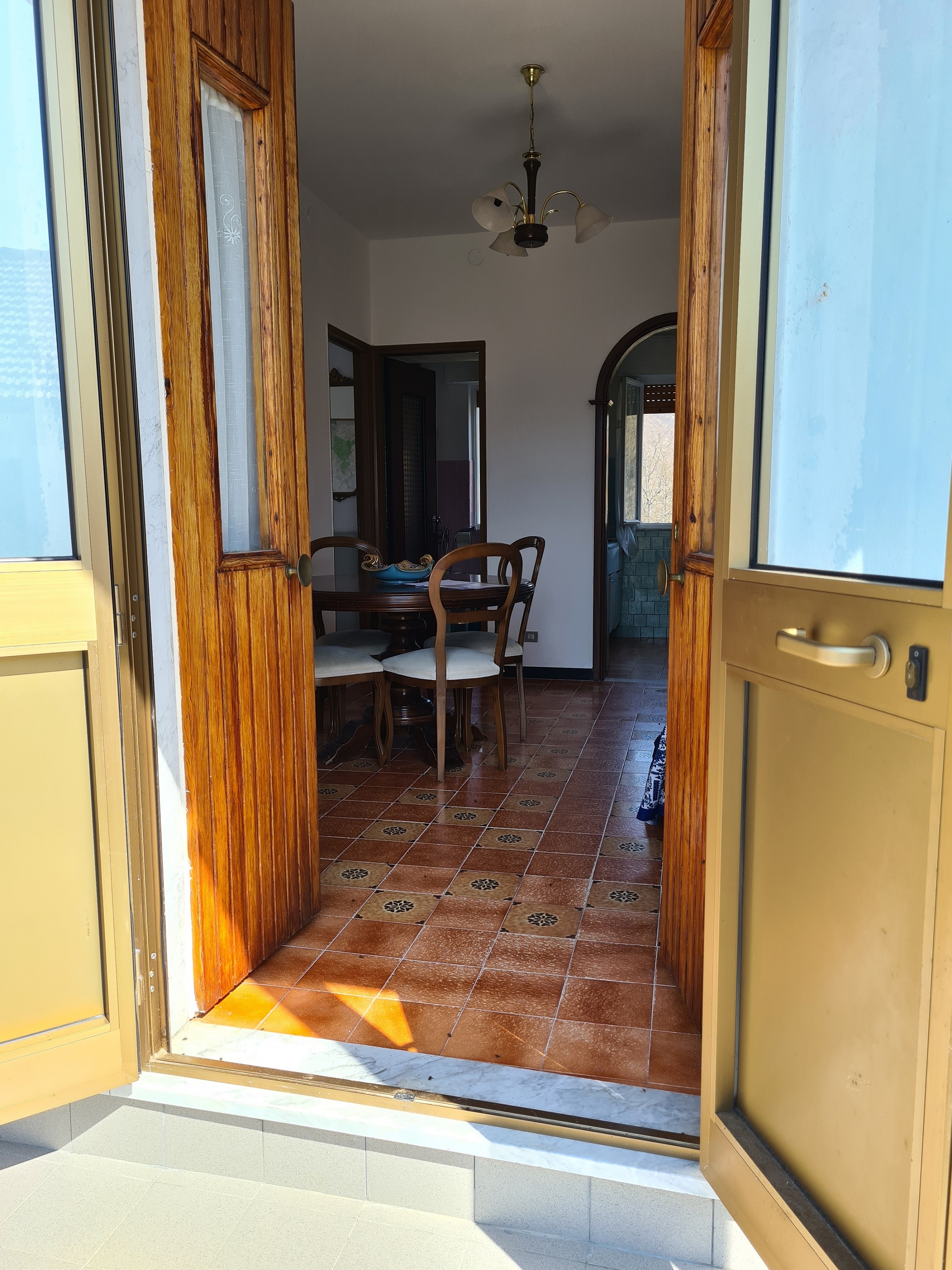 in casetta bifamiliare, appartamento al piano superiore, con accesso indipendente da scala esterna in muratura composto da gradevole piccolo terrazzo d'accesso, soggiorno, cucinino, camera matrimoniale, camera singola (affacciata su balcone panoramico) e servizi (con vasca e finestra) per complessivi 45 mq. utili (oltre al terrazzo ed al poggiolo).
