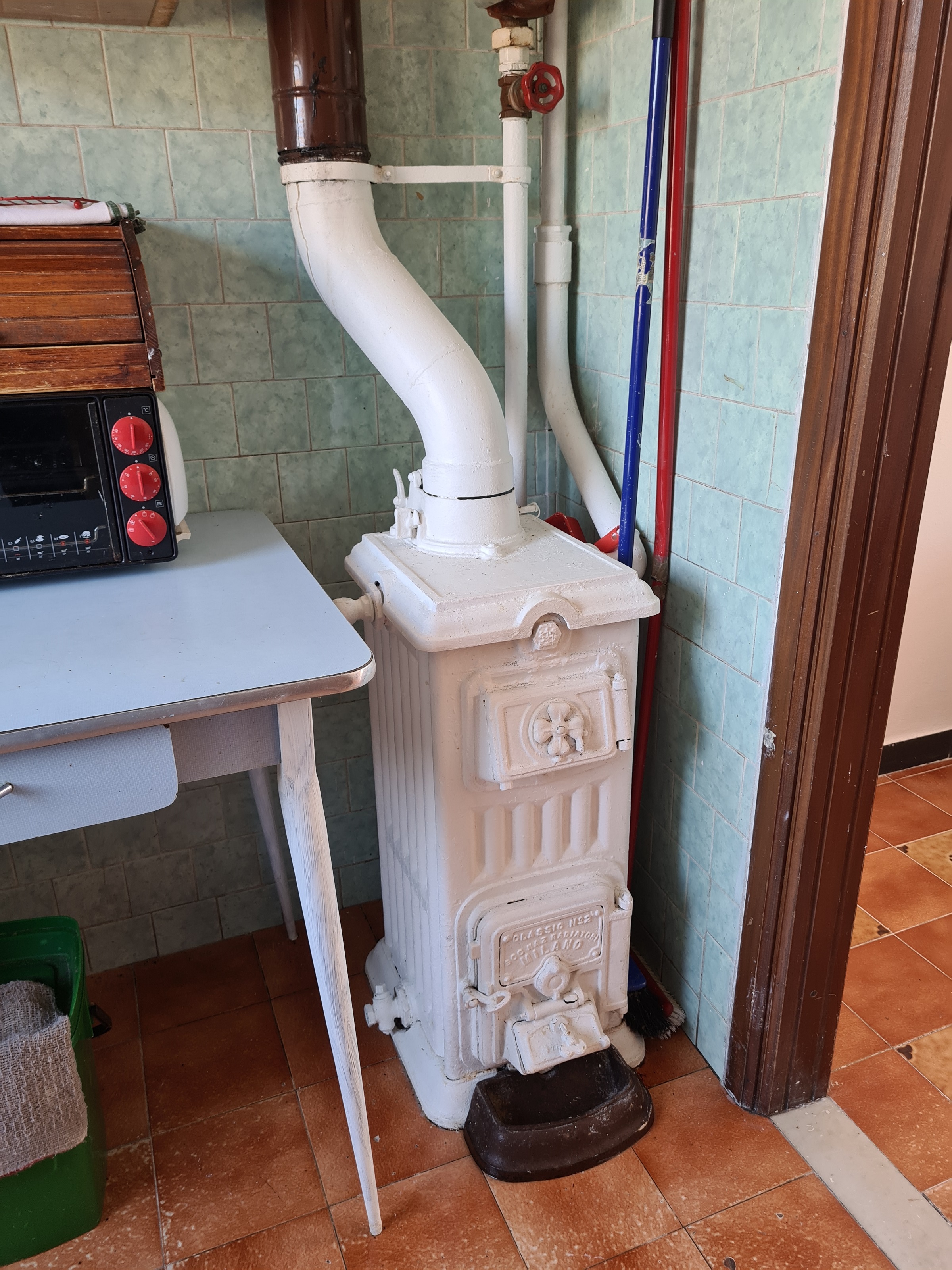 Finestre in metallo, tapparelle in legno. Impianto di riscaldamento con stufa a legna ed elementi scaldanti in ogni ambiente. Boiler elettrico per la produzione di acqua calda.