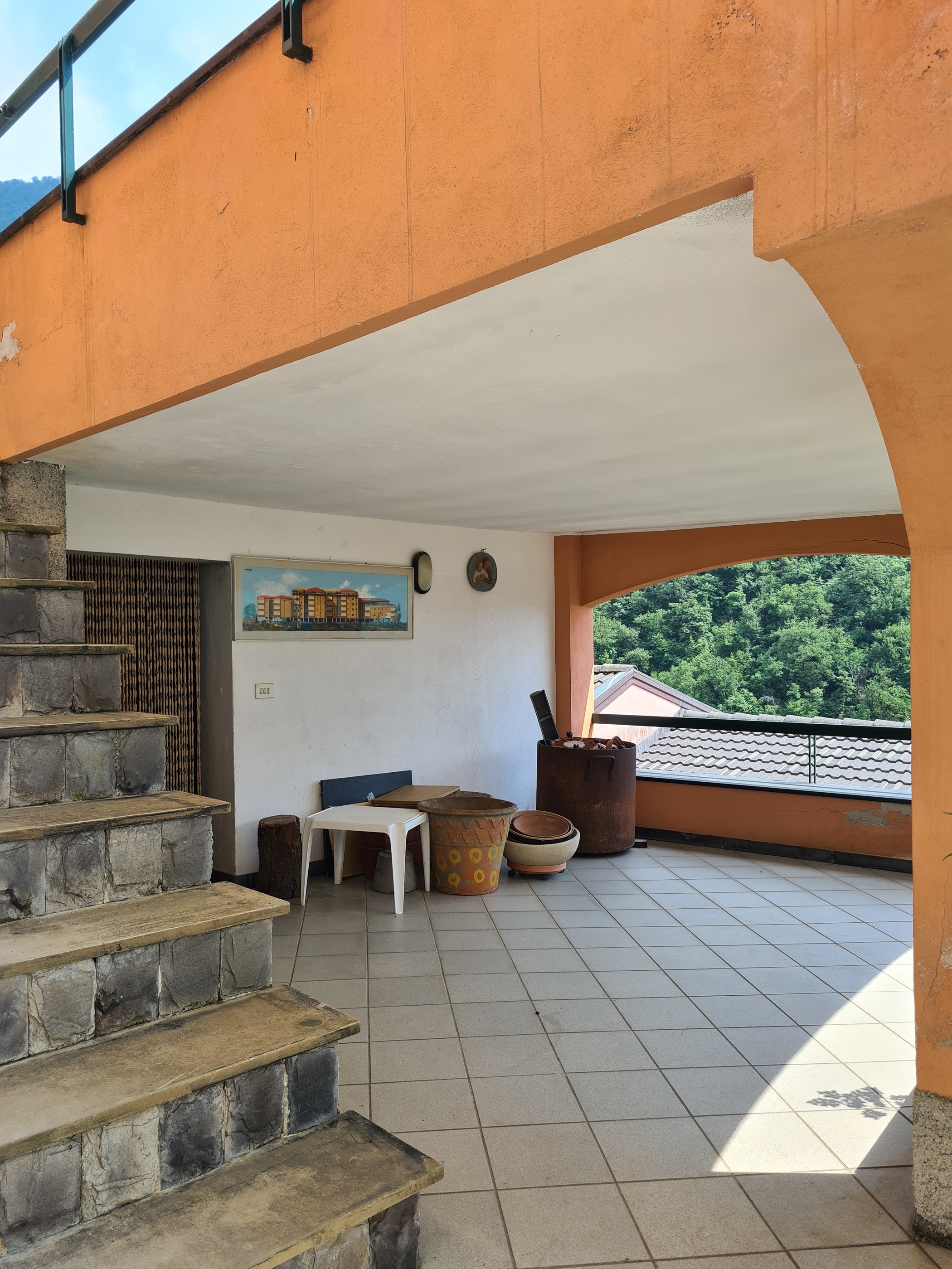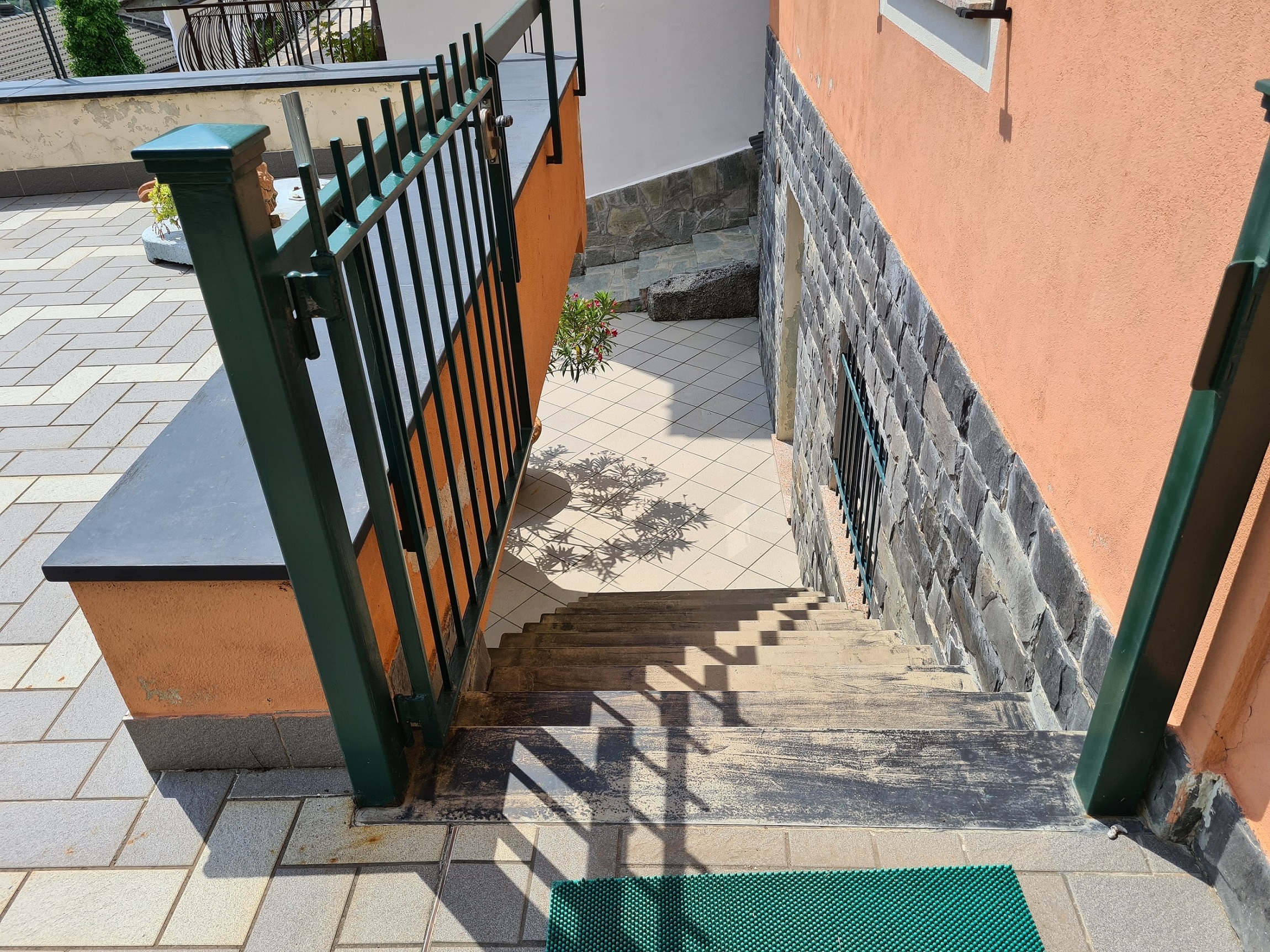 Dalla terrazza al piano si accede, al livello sottostante ad un gradevole porticato ed ad un grande locale a cantina (portoncino e finestra) per altri 25 mq. utili.