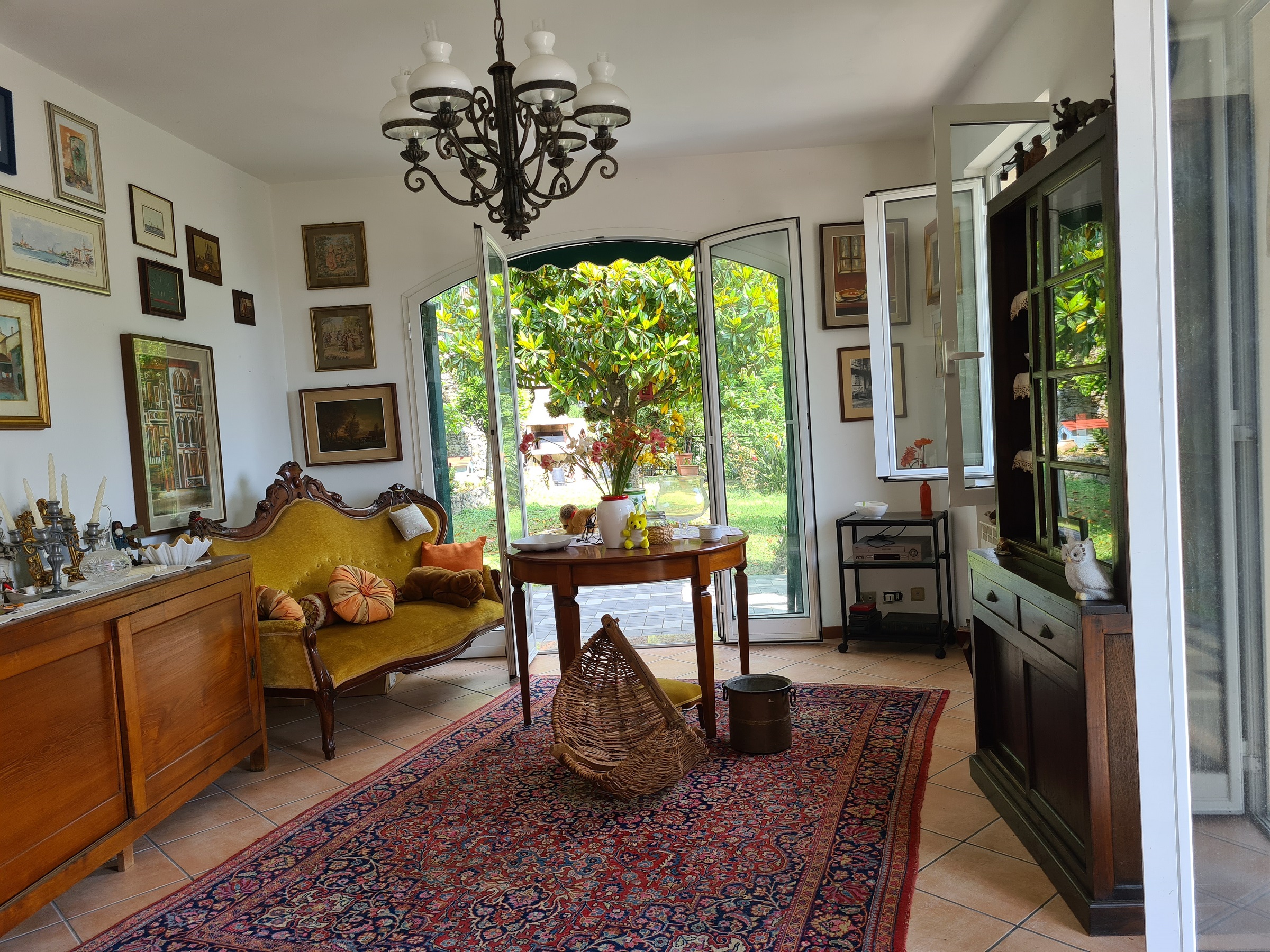 altrettanto elegante grande appartamento con ingresso indipendente, splendido giardino e panoramica terrazza al piano, oltre a porticato e grande cantina pertinenziale.