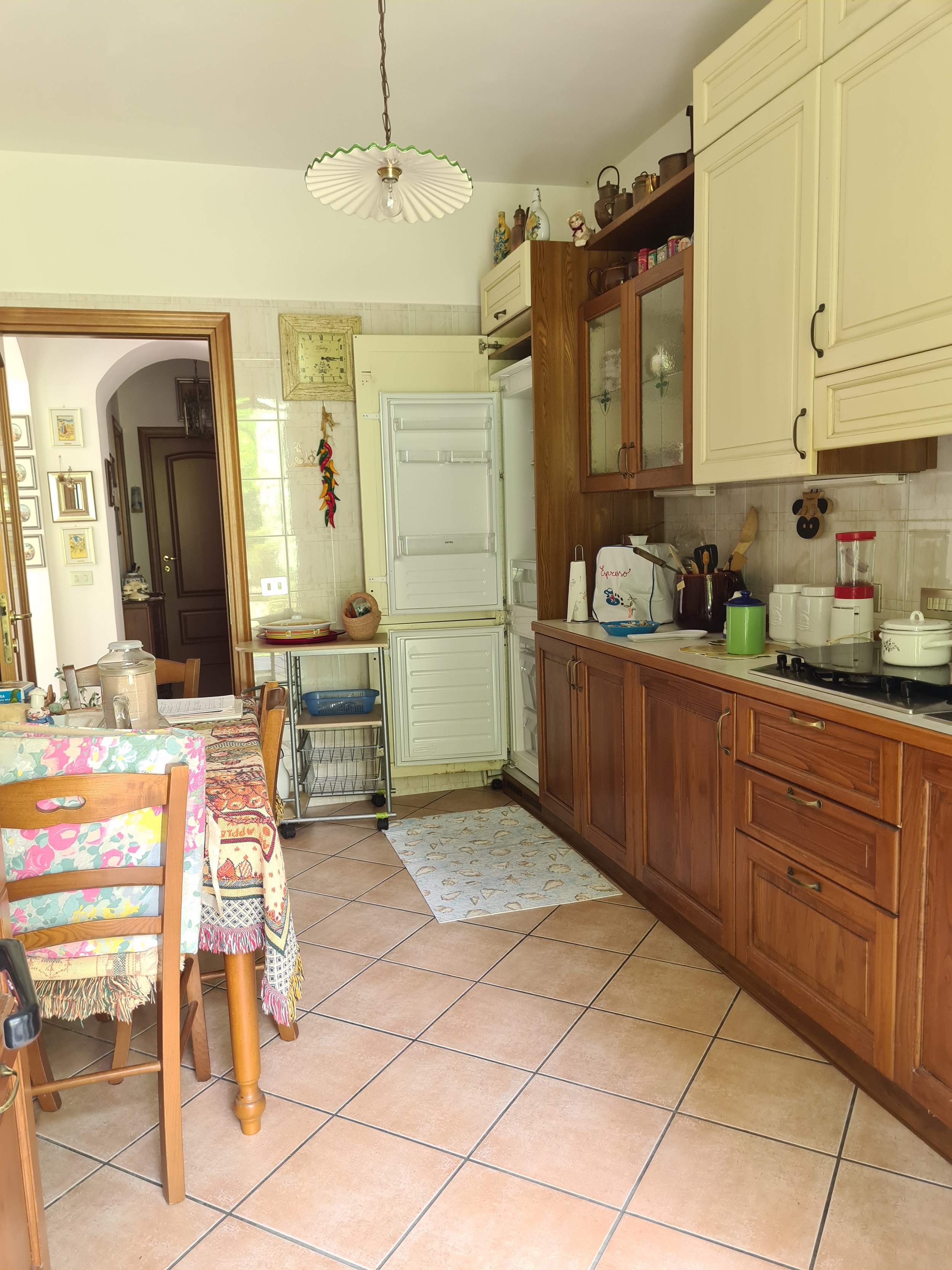 L'appartamento è composto da ingresso, cucina abitabile, splendido soggiorno (affacciato, come la cucina, sul giardino e sulla terrazza), disimpegno alla zona notte, tre camere e grande bagno (con finestra e doccia) oltre a ripostiglio per complessivi 95 mq. utili. Il giardino attrezzato e perfettamente mantenuto misura 100 mq. La terrazza 20 mq.