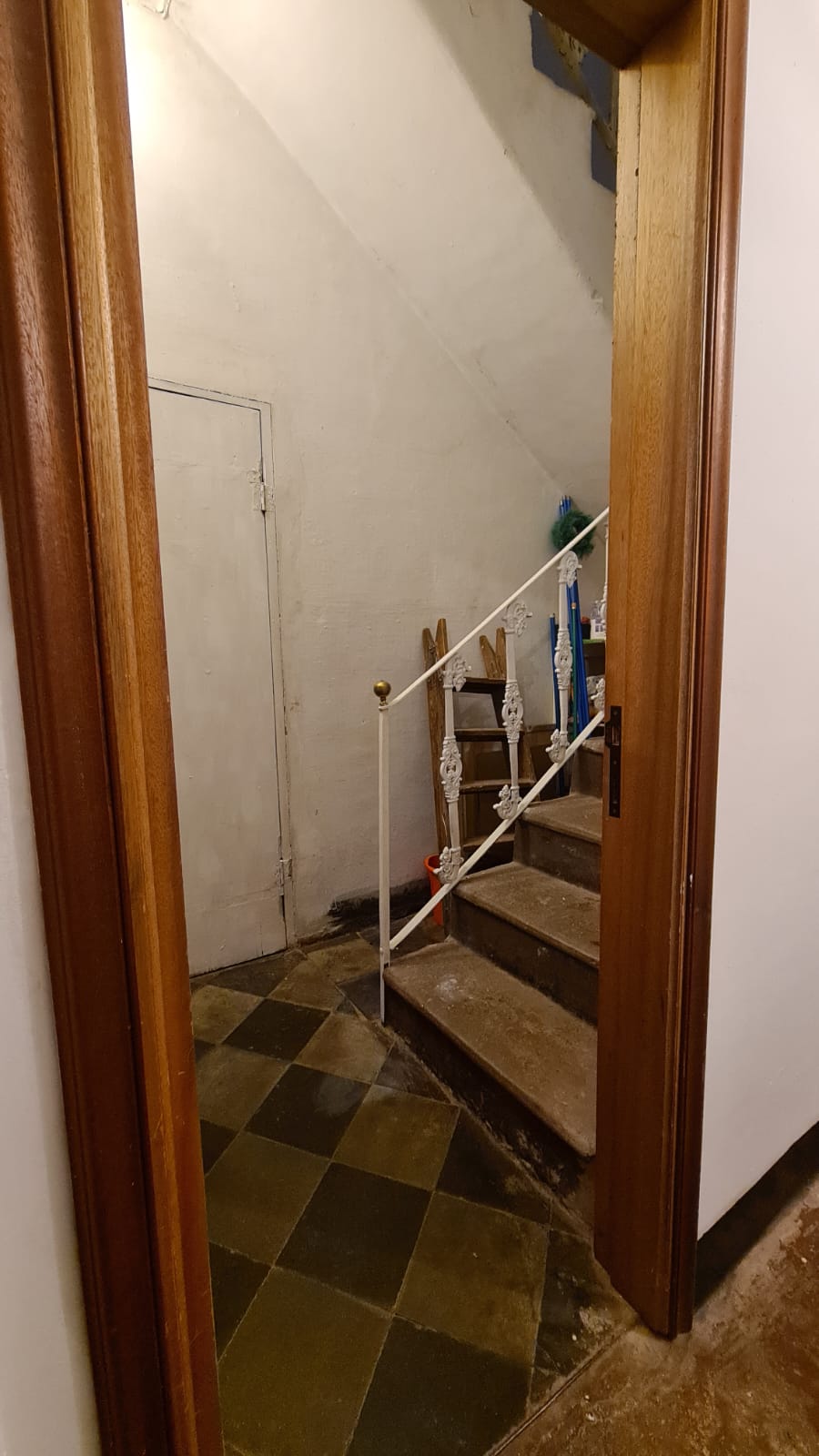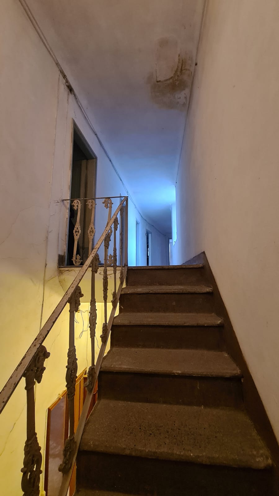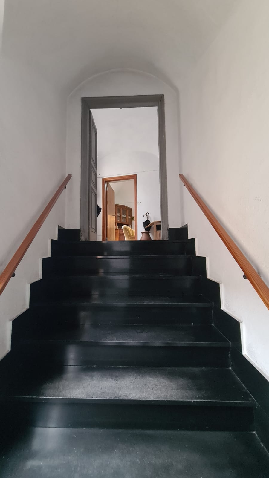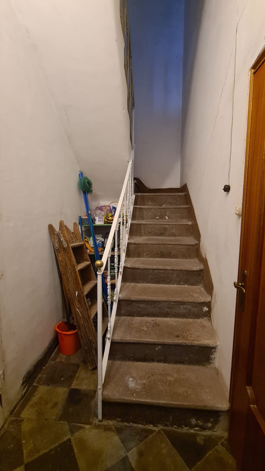 Completano la proprietà un secondo più piccolo alloggio (con ingresso indipendente dal caratteristico pianerottolo ma anche comunicante con l’appartamento principale tramite porta interna) formato da ingresso a corridoio, da una vecchia cucina con salottino oltre a piccolo servizio igienico (solo wc) per altri 25 mq. utili.