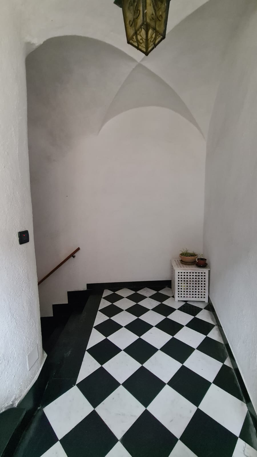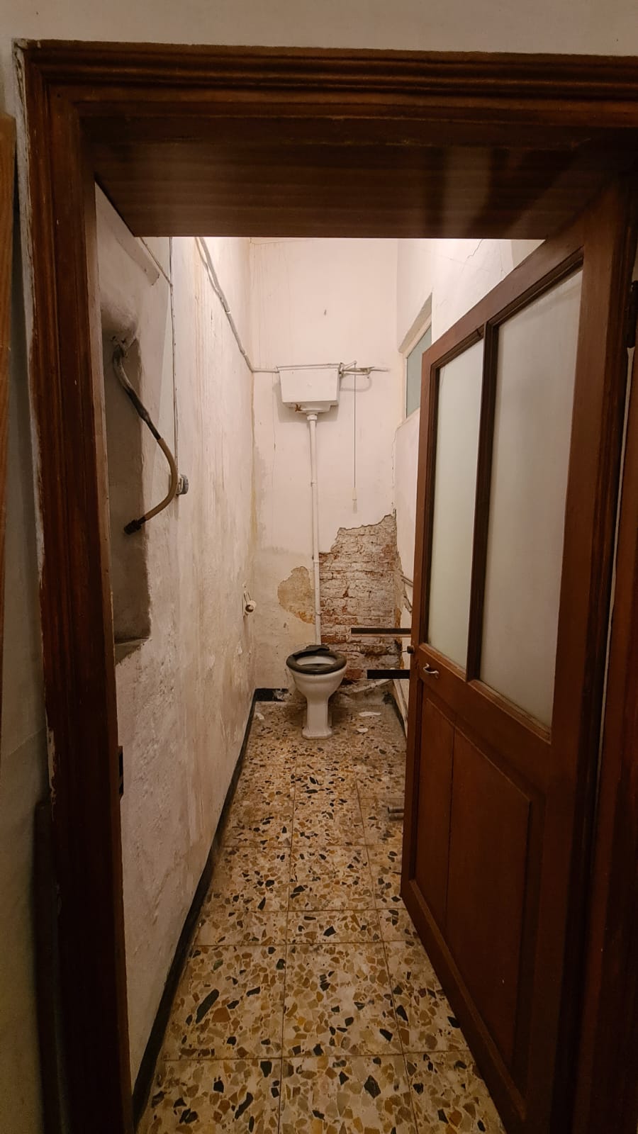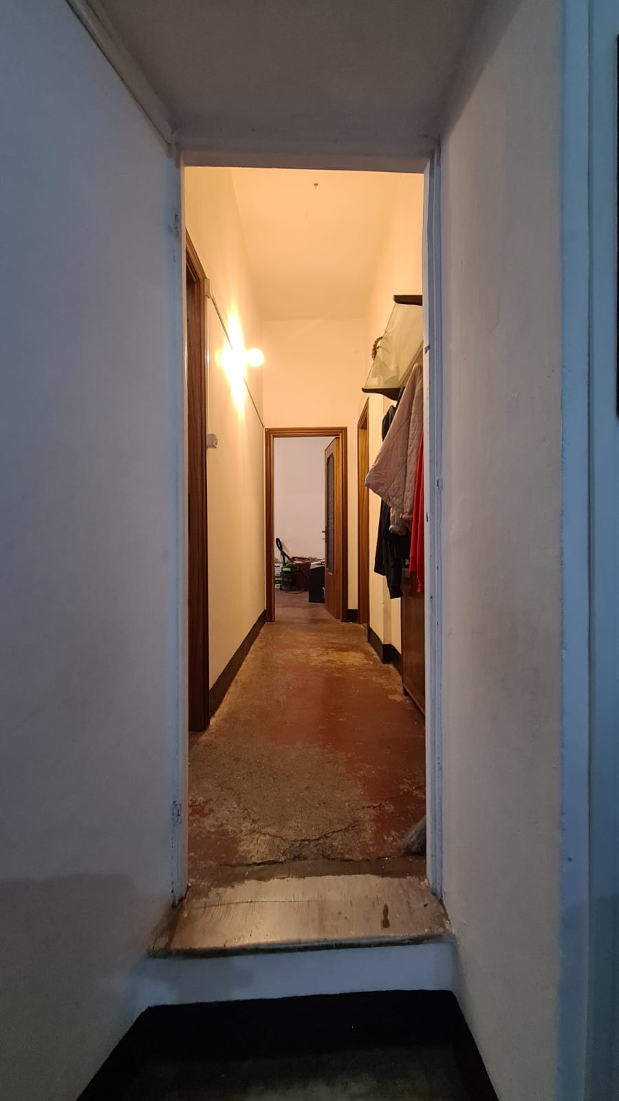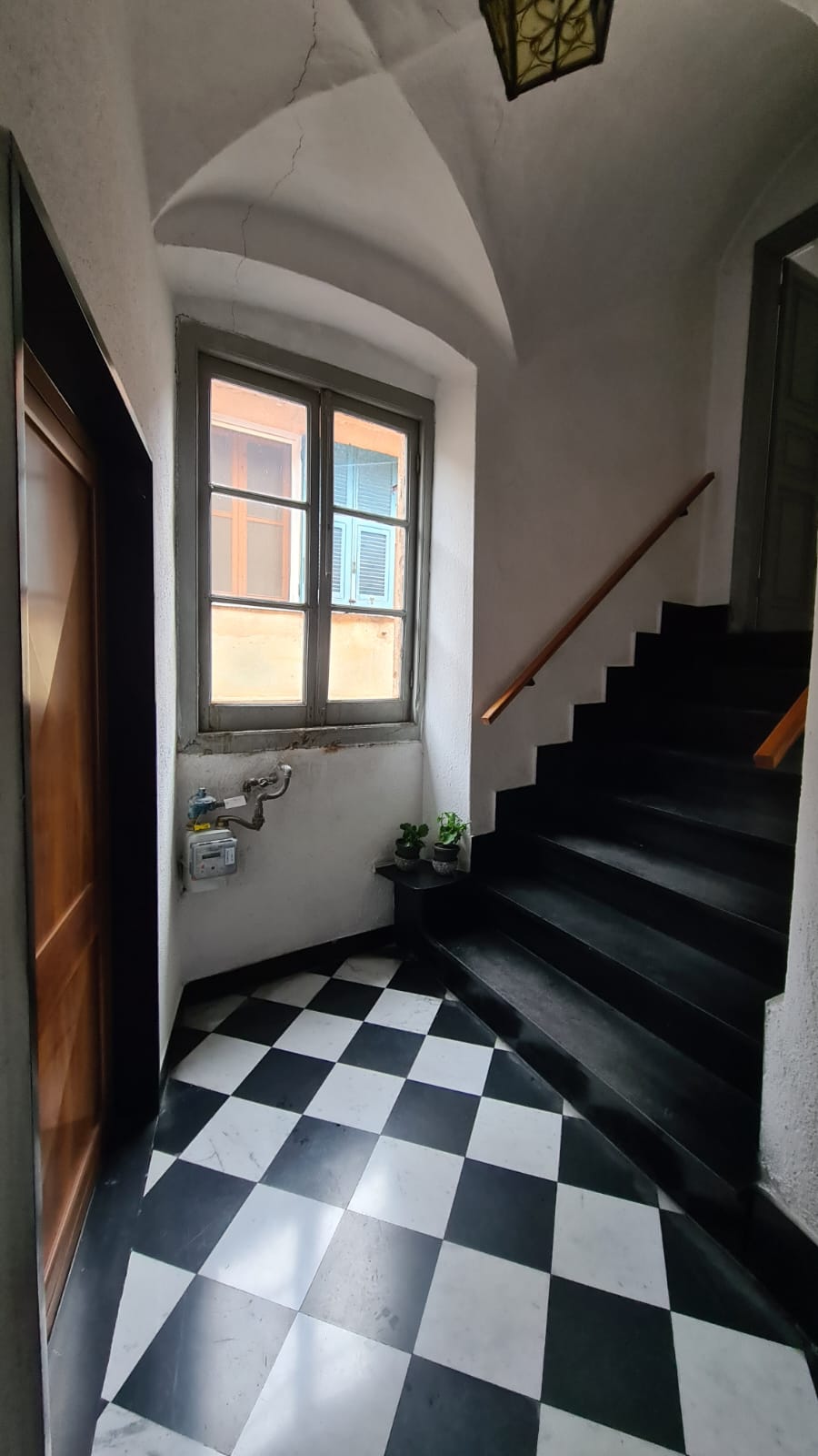 Completano la proprietà un secondo più piccolo alloggio (con ingresso indipendente dal caratteristico pianerottolo ma anche comunicante con l’appartamento principale tramite porta interna) formato da ingresso a corridoio, da una vecchia cucina con salottino oltre a piccolo servizio igienico (solo wc) per altri 25 mq. utili.