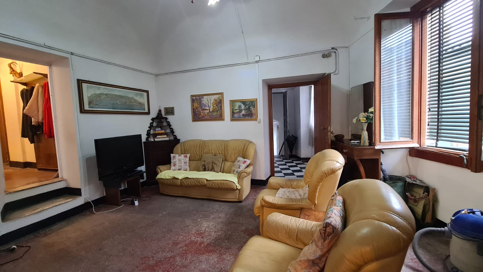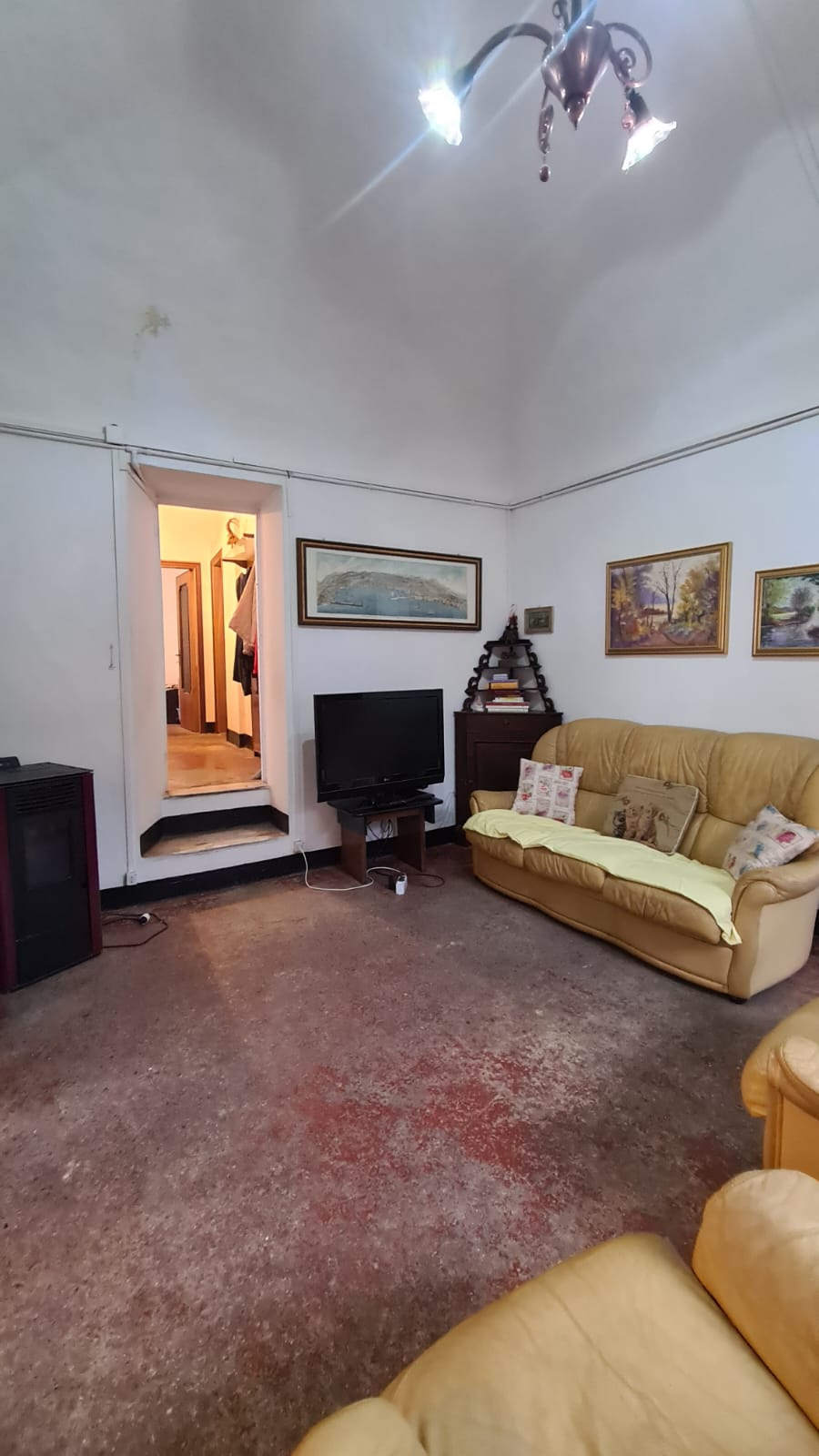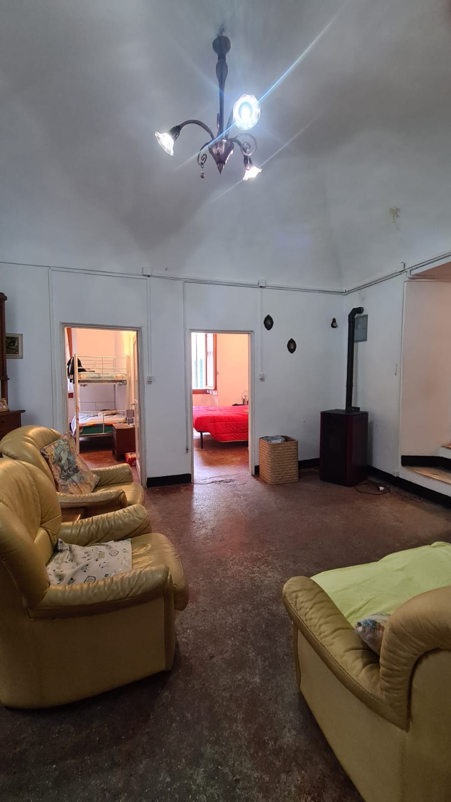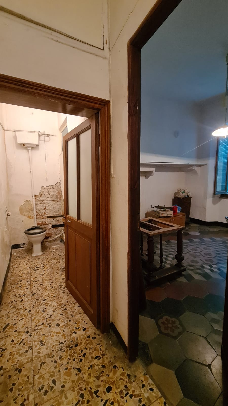 Completano la proprietà un secondo più piccolo alloggio (con ingresso indipendente dal caratteristico pianerottolo ma anche comunicante con l’appartamento principale tramite porta interna) formato da ingresso a corridoio, da una vecchia cucina con salottino oltre a piccolo servizio igienico (solo wc) per altri 25 mq. utili.
