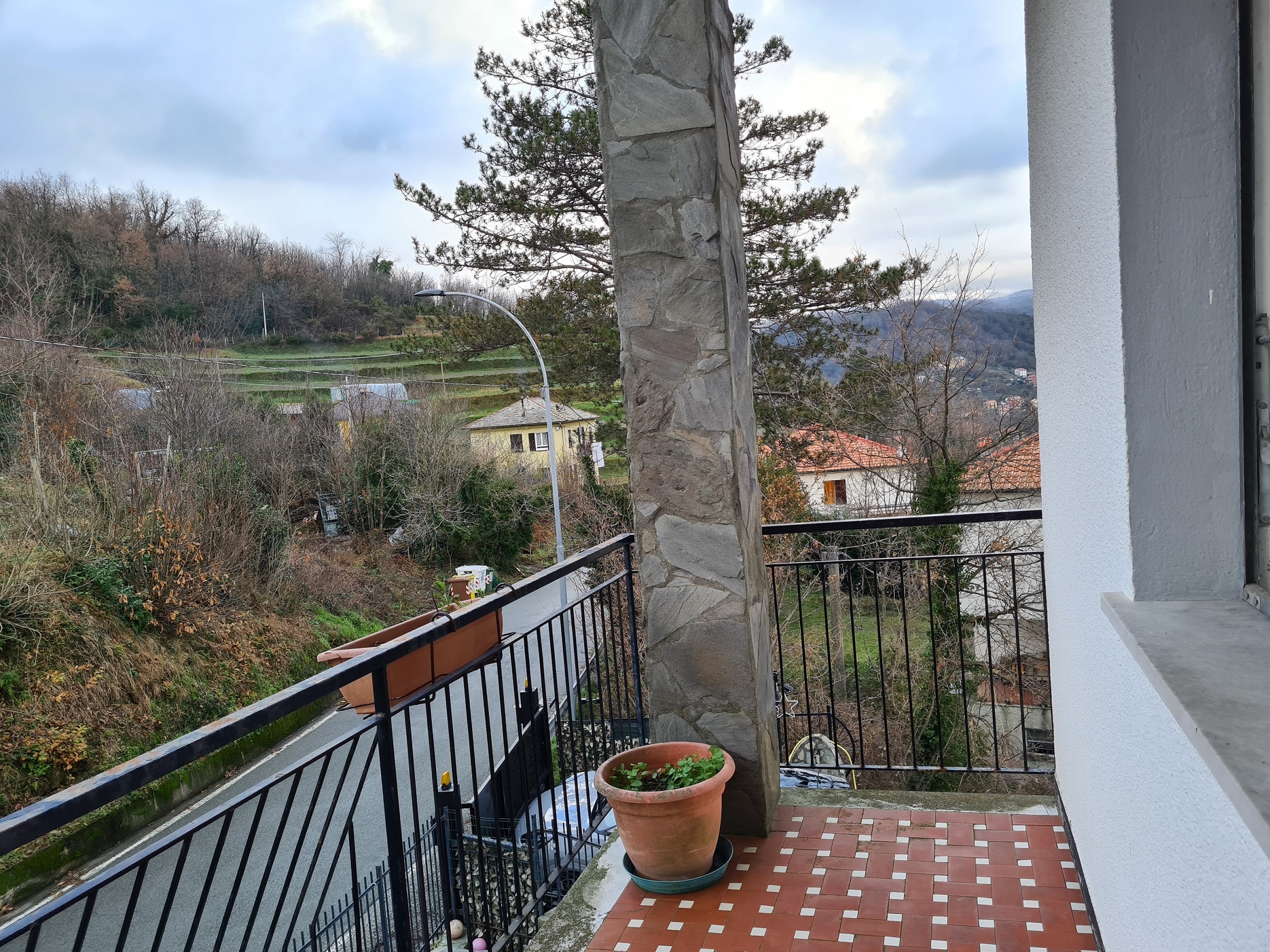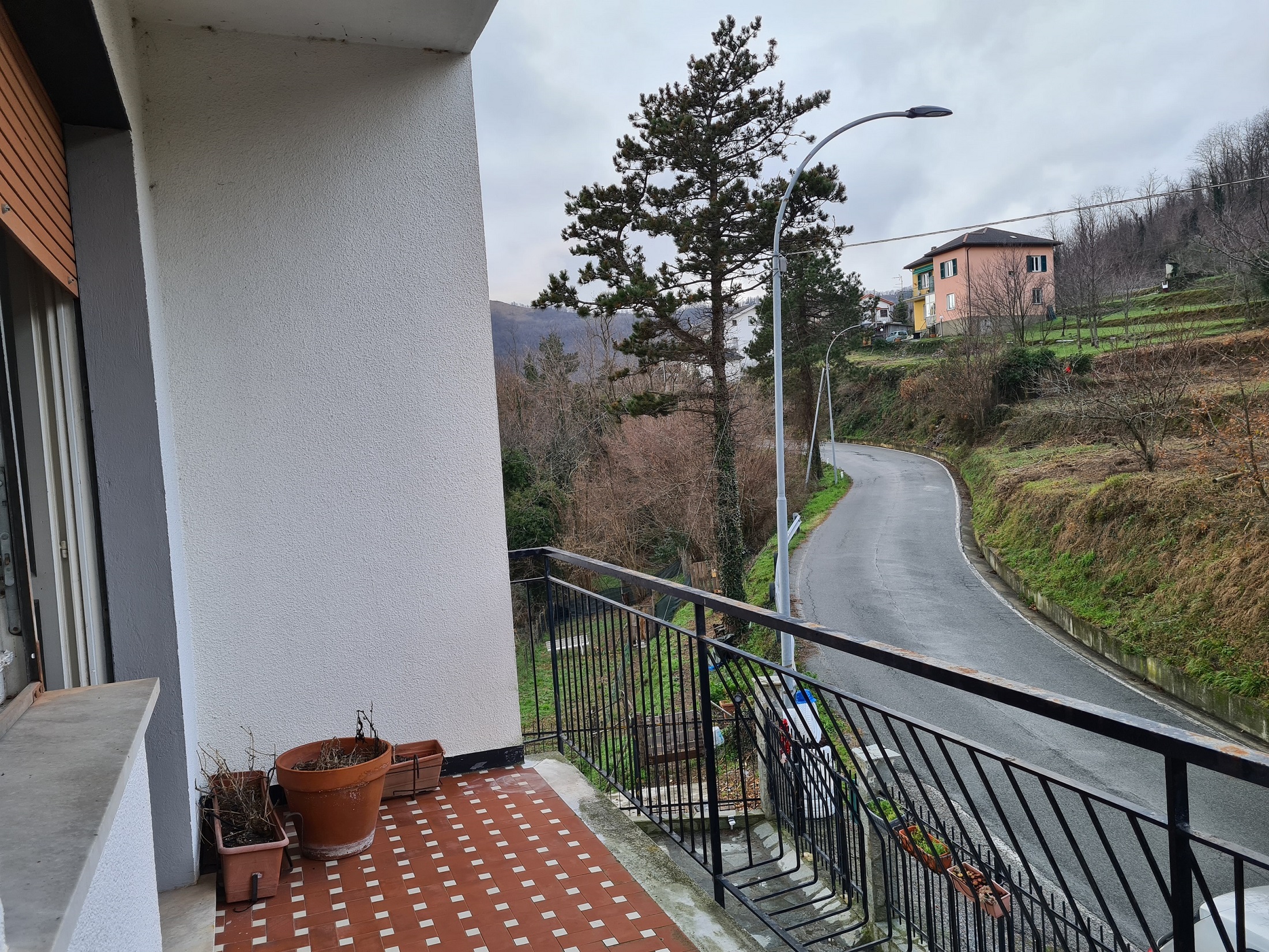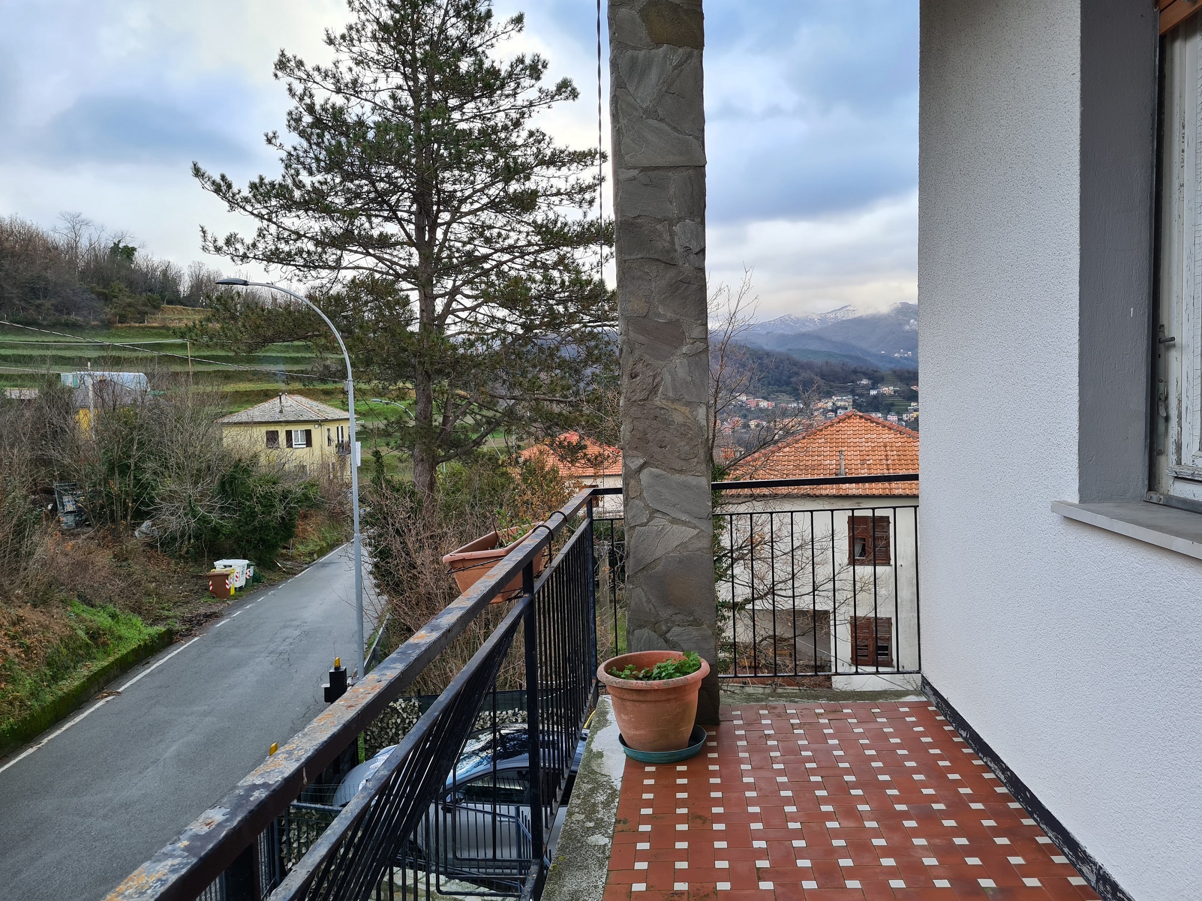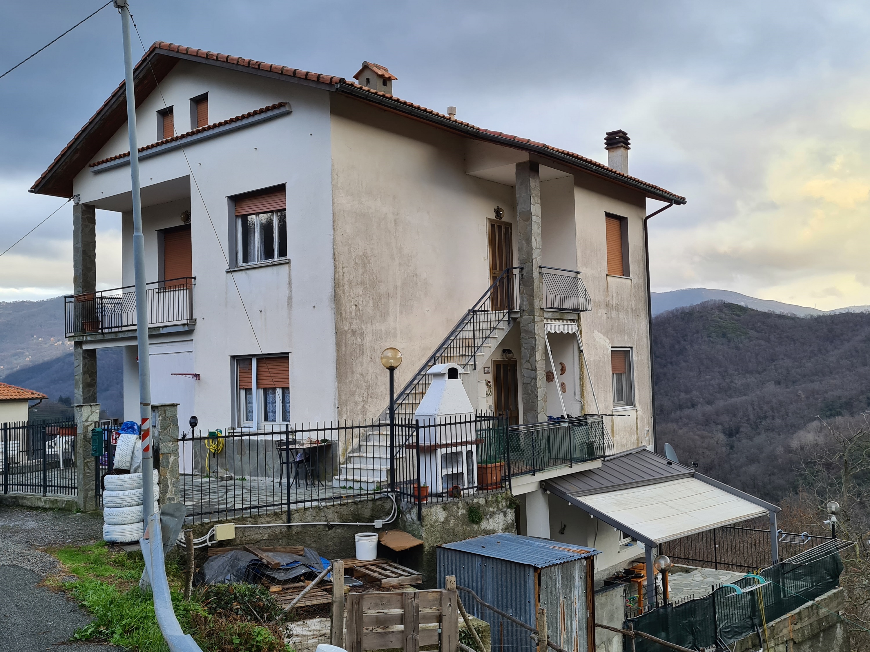 appartamento al primo piano (rispetto alla sede stradale) ed ultimo (oltre a piccola mansarda pertinenziale), con accesso indipendente da scala esterna e pianerottolo coperto, formato da ingresso, due camere, entrambe servite da balcone (l'uno splendidamente esposto sulla vallata – l'altro, coperto, esposto sulla strada e sull'area d'accesso alla proprietà), soggiorno ,cucina abitabile e servizi (con vasca e finestra) per complessivi 70 mq. utili (oltre alla due balconate).