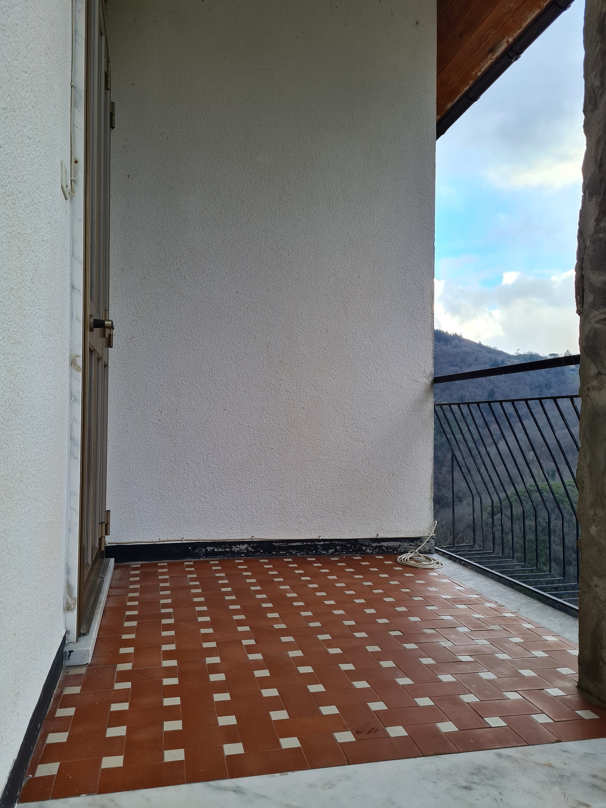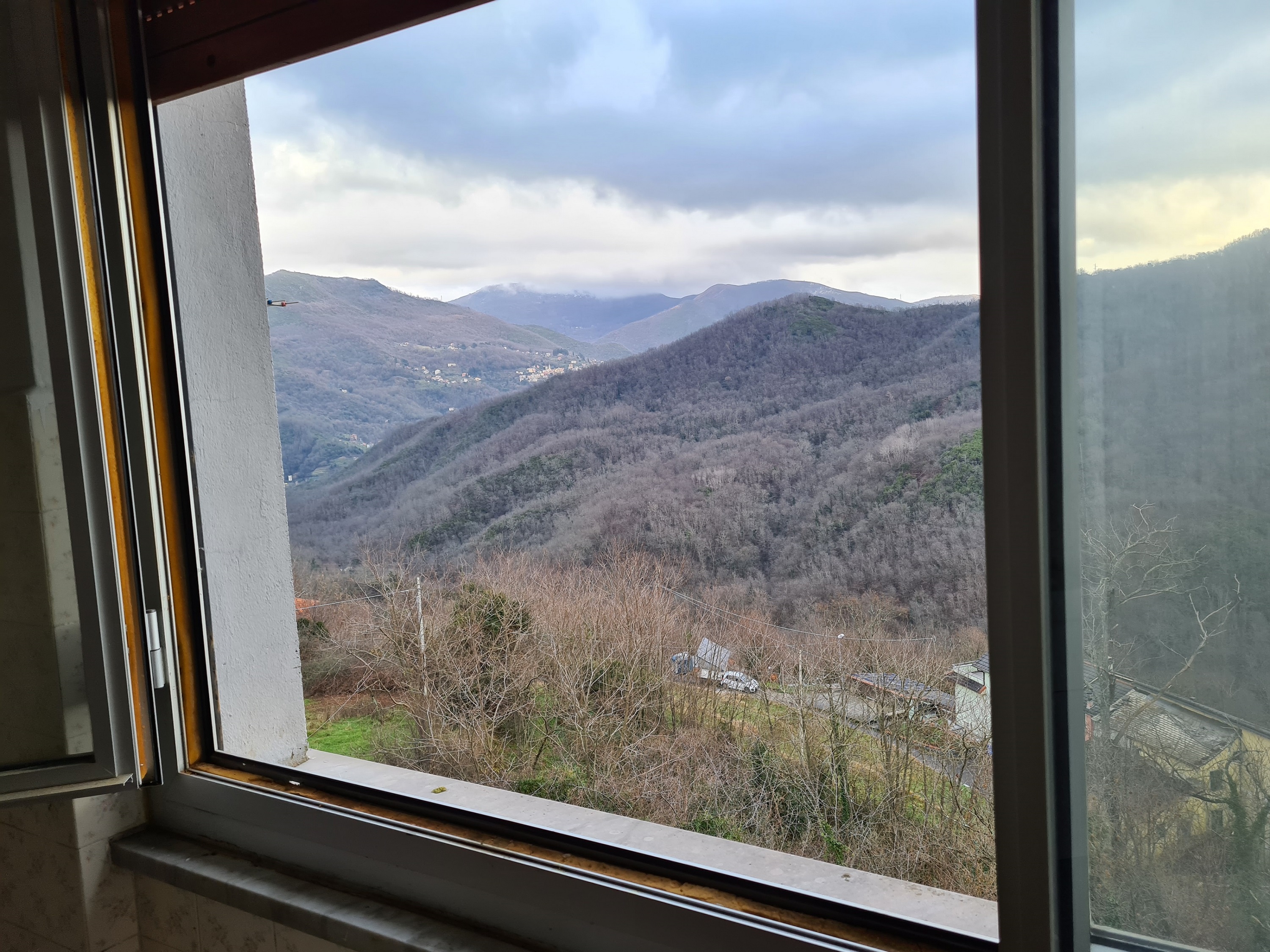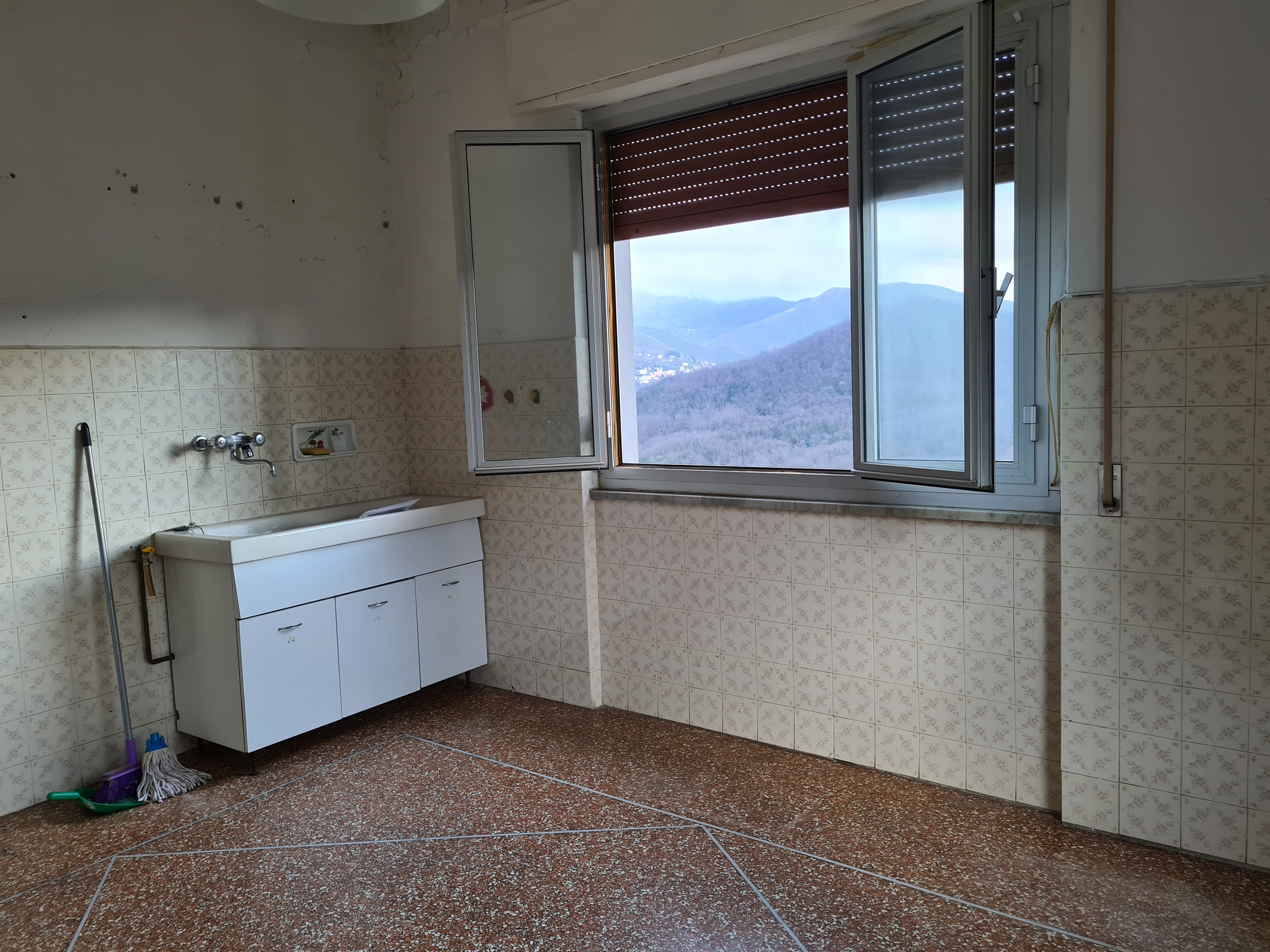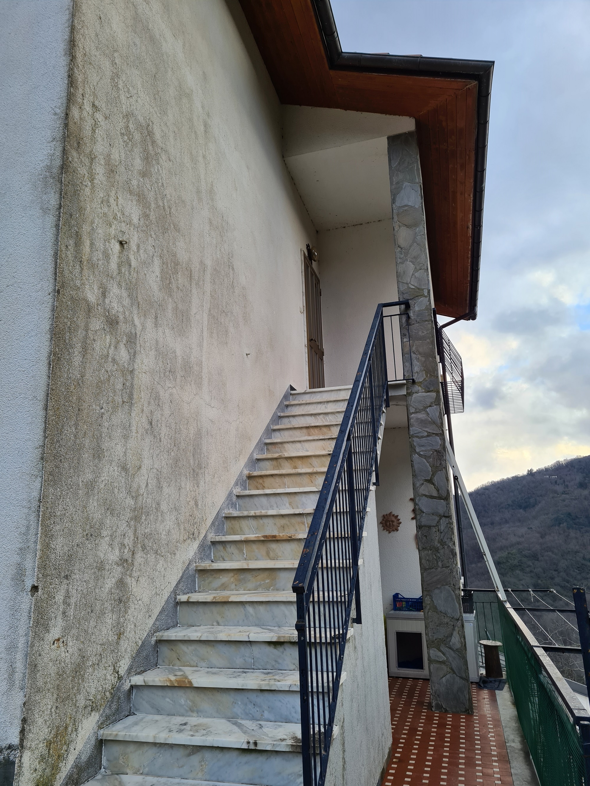 appartamento al primo piano (rispetto alla sede stradale) ed ultimo (oltre a piccola mansarda pertinenziale), con accesso indipendente da scala esterna e pianerottolo coperto, formato da ingresso, due camere, entrambe servite da balcone (l'uno splendidamente esposto sulla vallata – l'altro, coperto, esposto sulla strada e sull'area d'accesso alla proprietà), soggiorno ,cucina abitabile e servizi (con vasca e finestra) per complessivi 70 mq. utili (oltre alla due balconate).