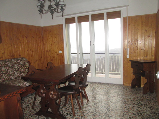 L'appartamento è composto da ingresso, soggiorno con bell'affaccio su balconata perimetrale esposta sulla vallata, cucinino, grande camera matrimoniale e servizi (ampi, con vasca e finestra) per compessivi 55 mq. utili (oltre alla balconata perimetrale).