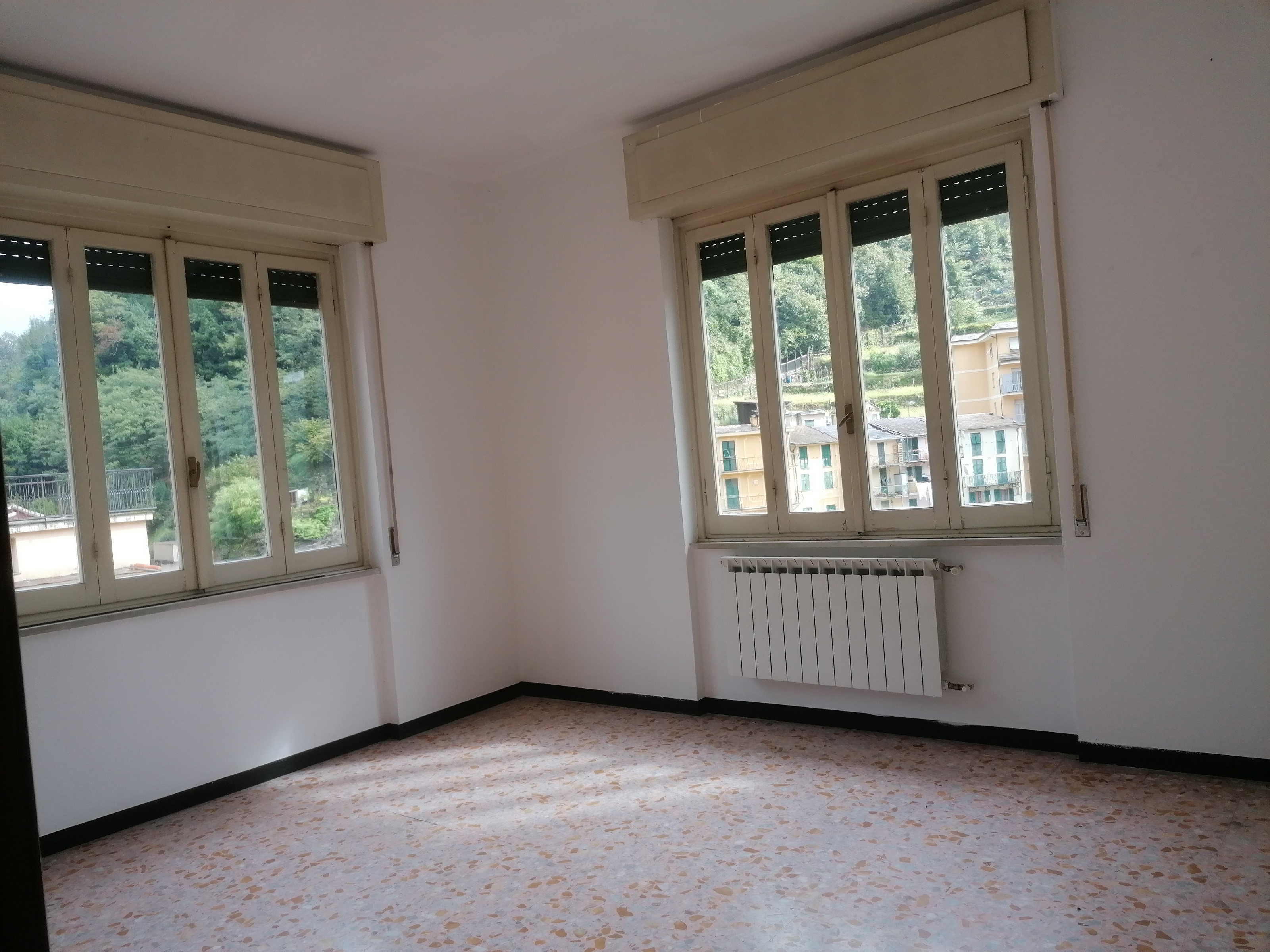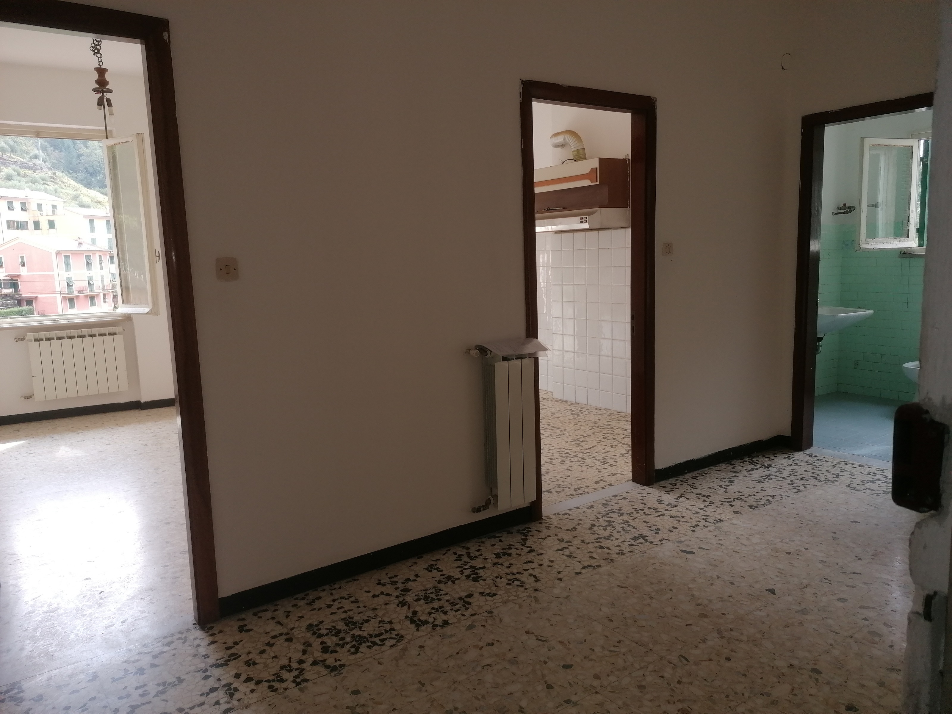 Sufficienti condizioni di manutenzione con pavimenti in graniglia di marmo, finestre in legno, tapparelle in legno ed impianto di riscaldamento autonomo con calderina a metano ed elementi scaldanti in ogni ambiente. Di rilievo l'affaccio, con panoramica esposizione sulla località e massima luminosità di tutti gli ambienti (l'appartamento è tutto esterno con esposizione a levante/mezzogiorno)