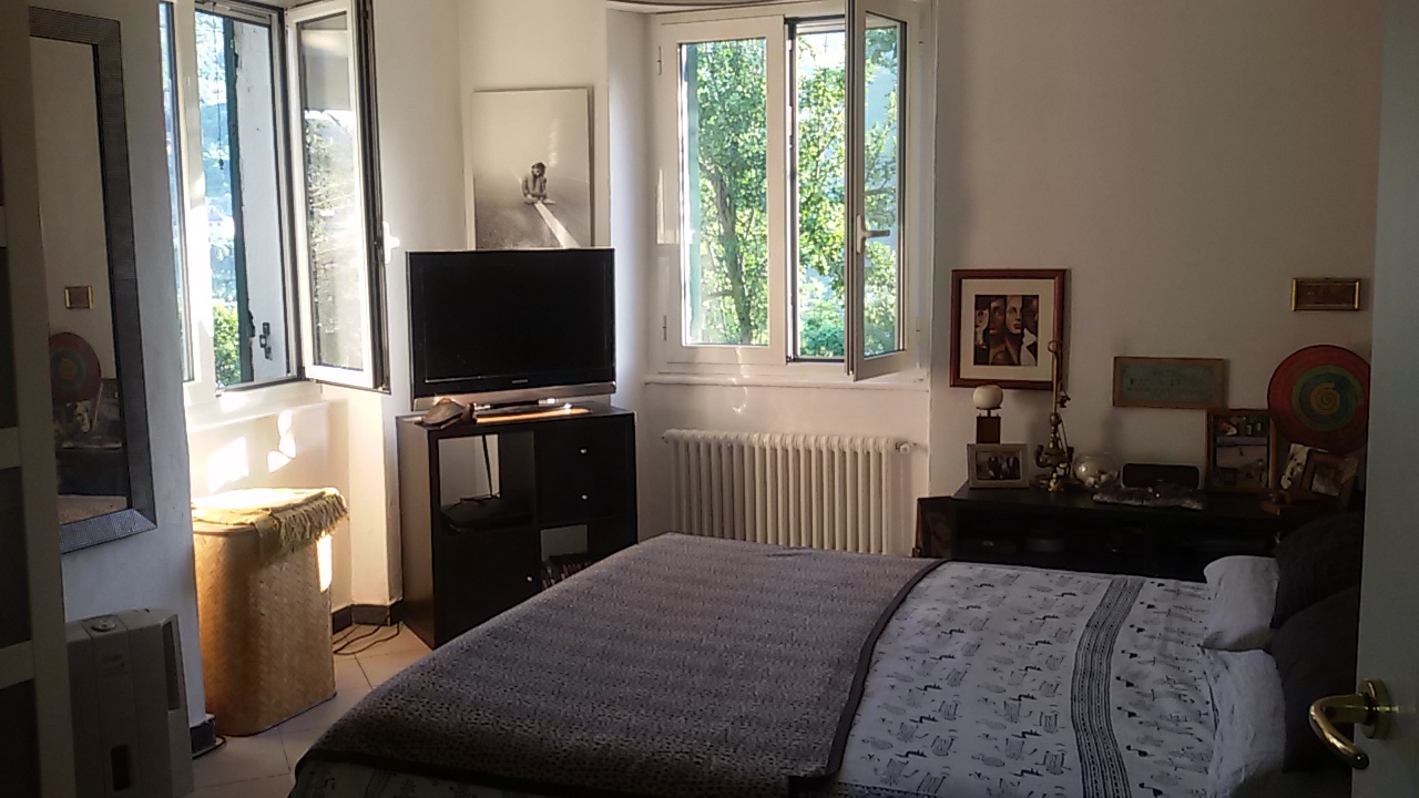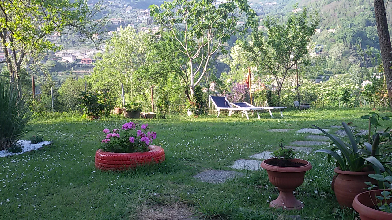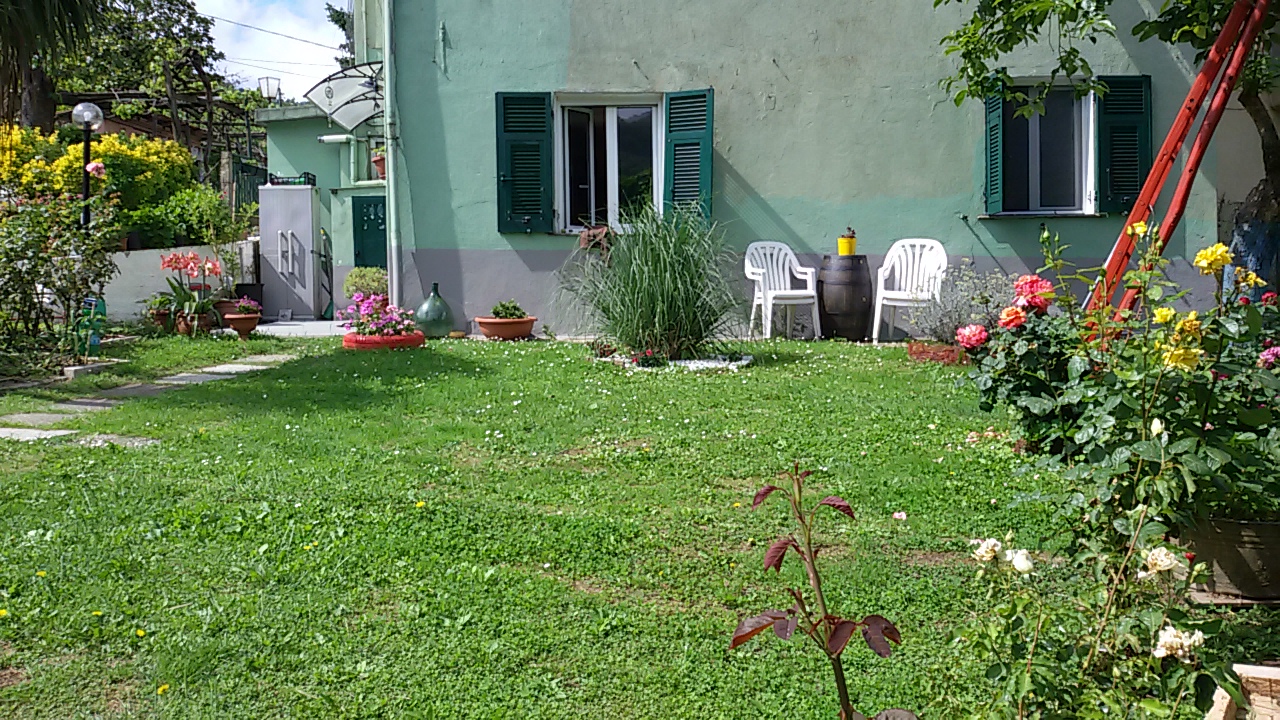 in gradevole contesto immerso nel verde, con accesso privato e posto macchina scoperto di proprietà, in caratteristica trifamiliare d'epoca (con tetto e facciate in ordine), appartamento al piano terreno, con ingresso indipendente e splendido terreno a giardino ed orto di 400 mq. con cascinotto/taverna indipendente in muratura, tutto ben esposto al sole, e con vista panoramica, in contesto silenzioso, non distante dalla strada carrabile (breve tratto pedonale in caratteristica crosetta privata con trogolo)