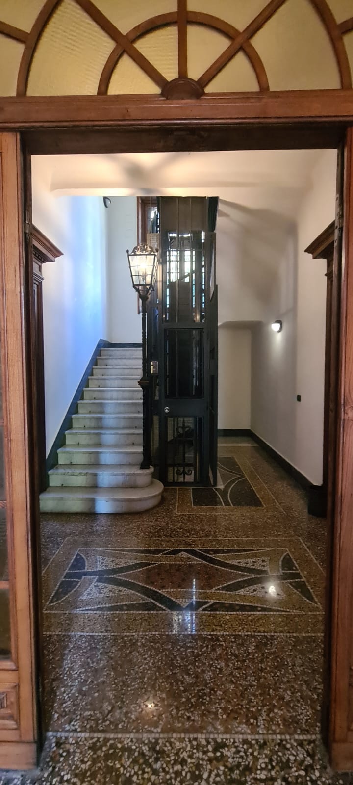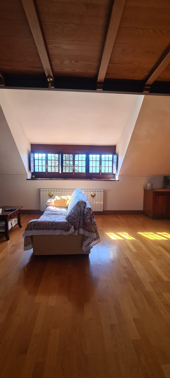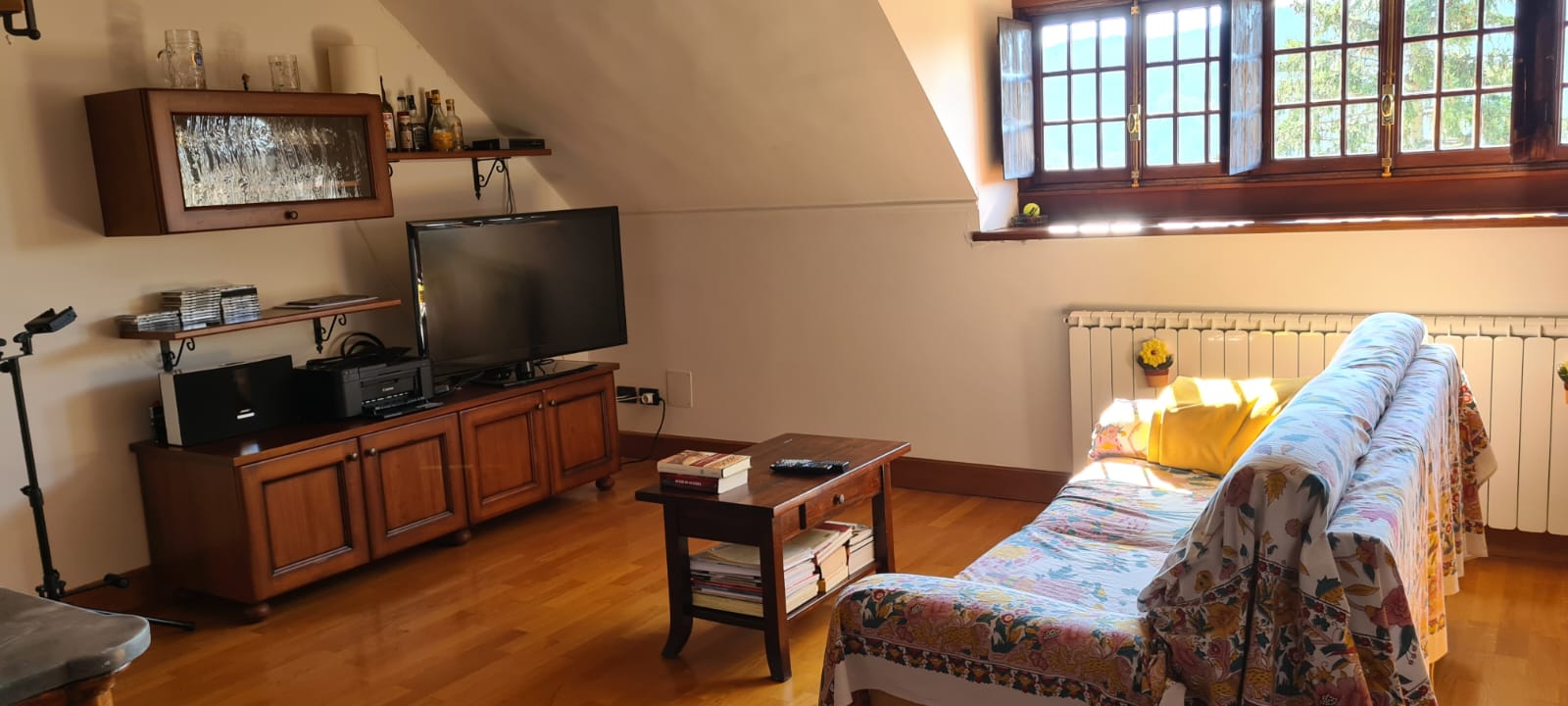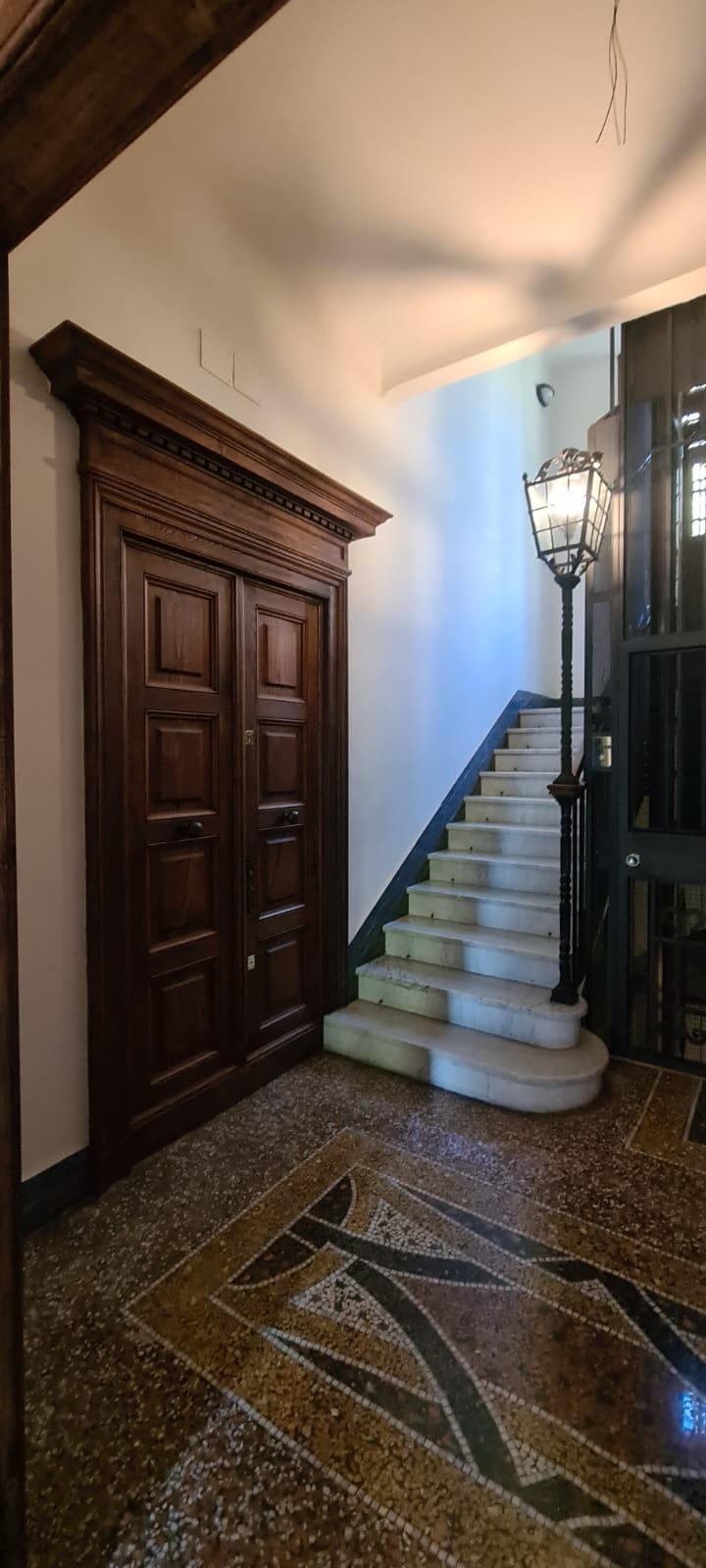 caratteristico appartamento mansardato posto al terzo ed ultimo piano (la villa è dotata di ascensore) composto da una grande zona giorno con cucina a vista, disimpegno, due camere e servizi (vasca e finestra) oltre a locale soppalcato (con accesso dalla zona giorno tramite scala in legno e ferro) ad uso studio o zona notte con secondo locale servizi.