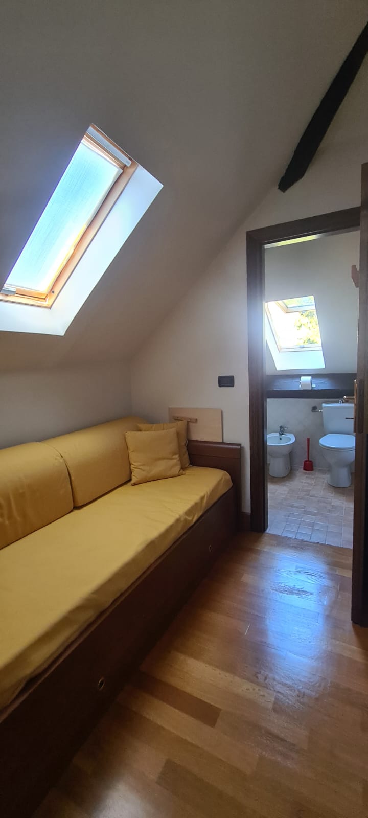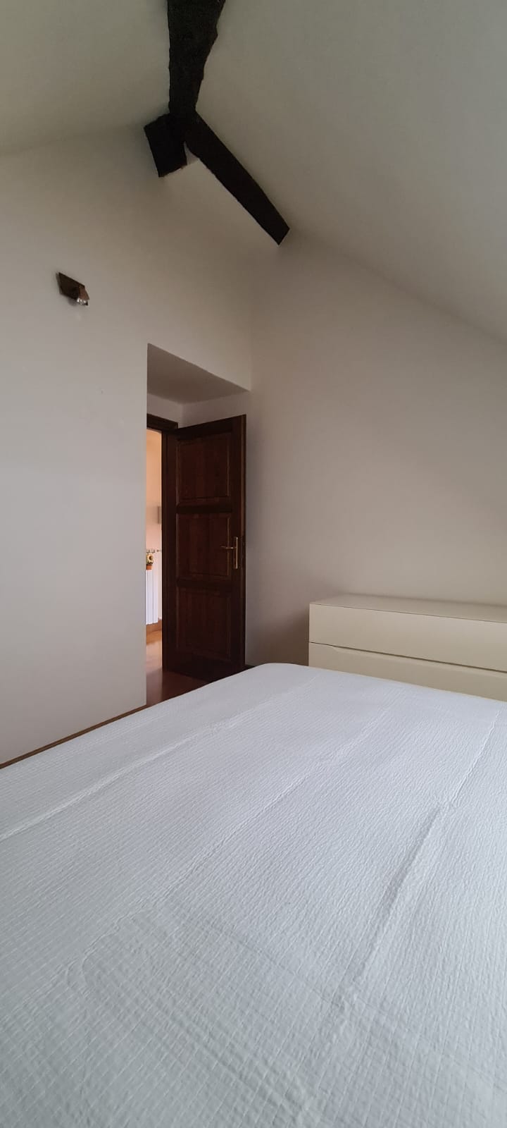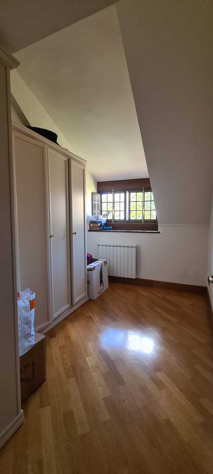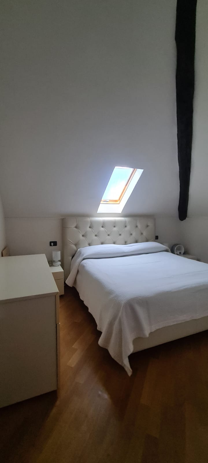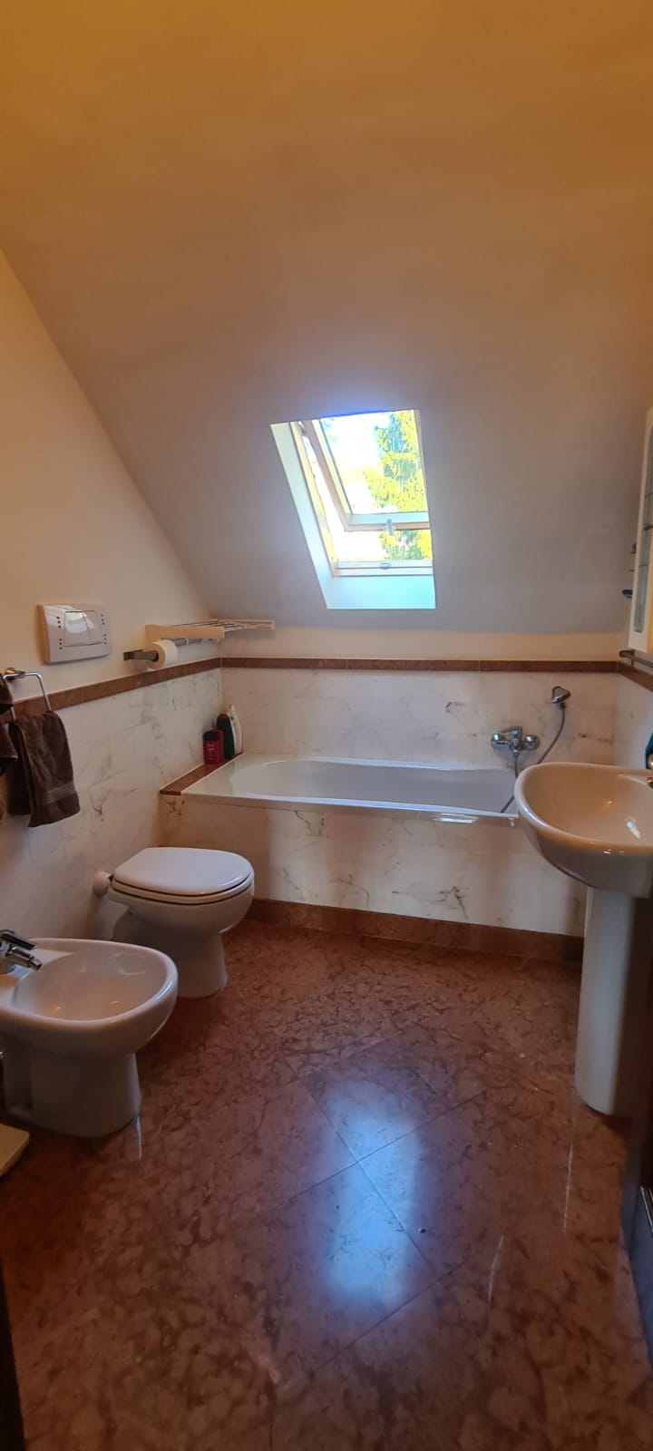 caratteristico appartamento mansardato posto al terzo ed ultimo piano (la villa è dotata di ascensore) composto da una grande zona giorno con cucina a vista, disimpegno, due camere e servizi (vasca e finestra) oltre a locale soppalcato (con accesso dalla zona giorno tramite scala in legno e ferro) ad uso studio o zona notte con secondo locale servizi.