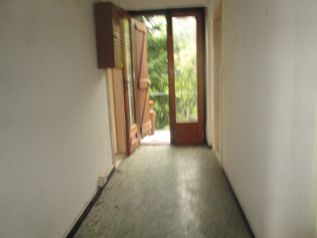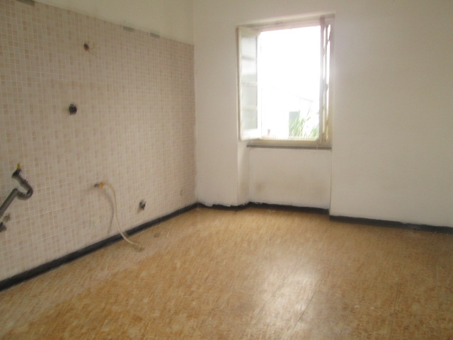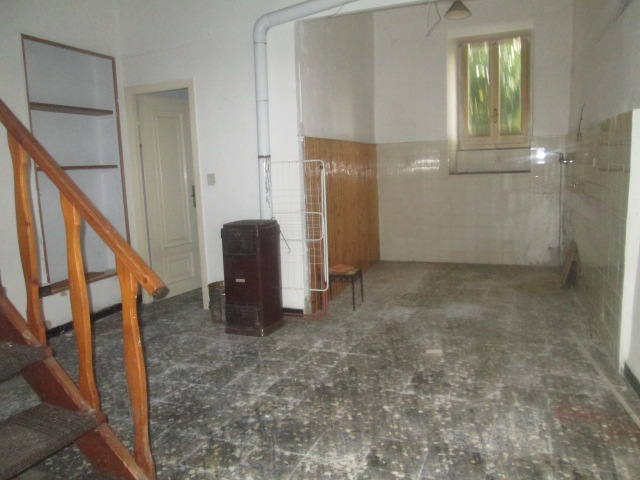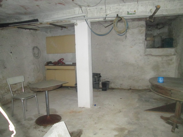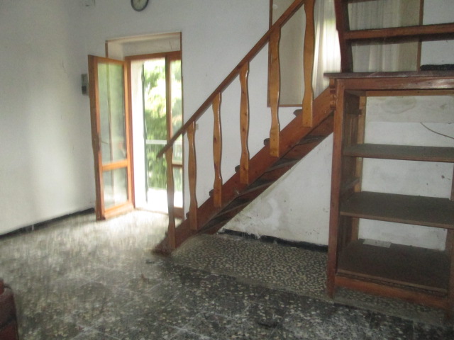La casa, che versa in mediocri condizioni di manutenzione, è composta, per il corpo più grande, da un locale garage ed un ampio locale a magazzino al piano strada (per complessivi 45 mq.); al primo piano (con accesso da cortile e pianerottolo esterno) da ingresso, soggiorno (luminoso, due finestre), cucina abitabile, servizi (vasca e finestra) e due camere per complessivi 55 mq. utili.