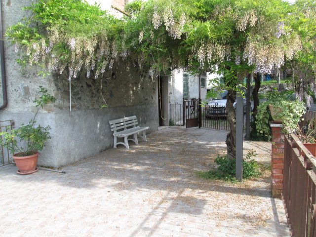 al piano terra, con accesso sia dal giardino (tramite scala esterna in muratura) sia da un gradevolissimo terrazzo al piano (circa 60 mq. con panoramica esposizione e splendido pergolato in glicine)