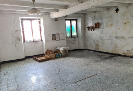 la casa, disabitata da diversi anni, è composta al piano terra da un grande locale a cantina (di fronte al porticato) e da ingresso e da un vano con finestra (entrambi con soffitti a volta seppur intonacati); al piano primo (al quale si accede tramite scala interna in muratura) da due grandi locali (due finestre – una finestra) affacciati sulla località e sulla vallata a mezzogiorno, oltre ad un vano più piccolo (sempre esposto a mezzogiorno) ed a piccolo wc; al piano secondo ed ultimo da grande locale cucina (due finestre) e da quattro grandi vani (uno servito da balcone) oltre ad un secondo piccolo wc.