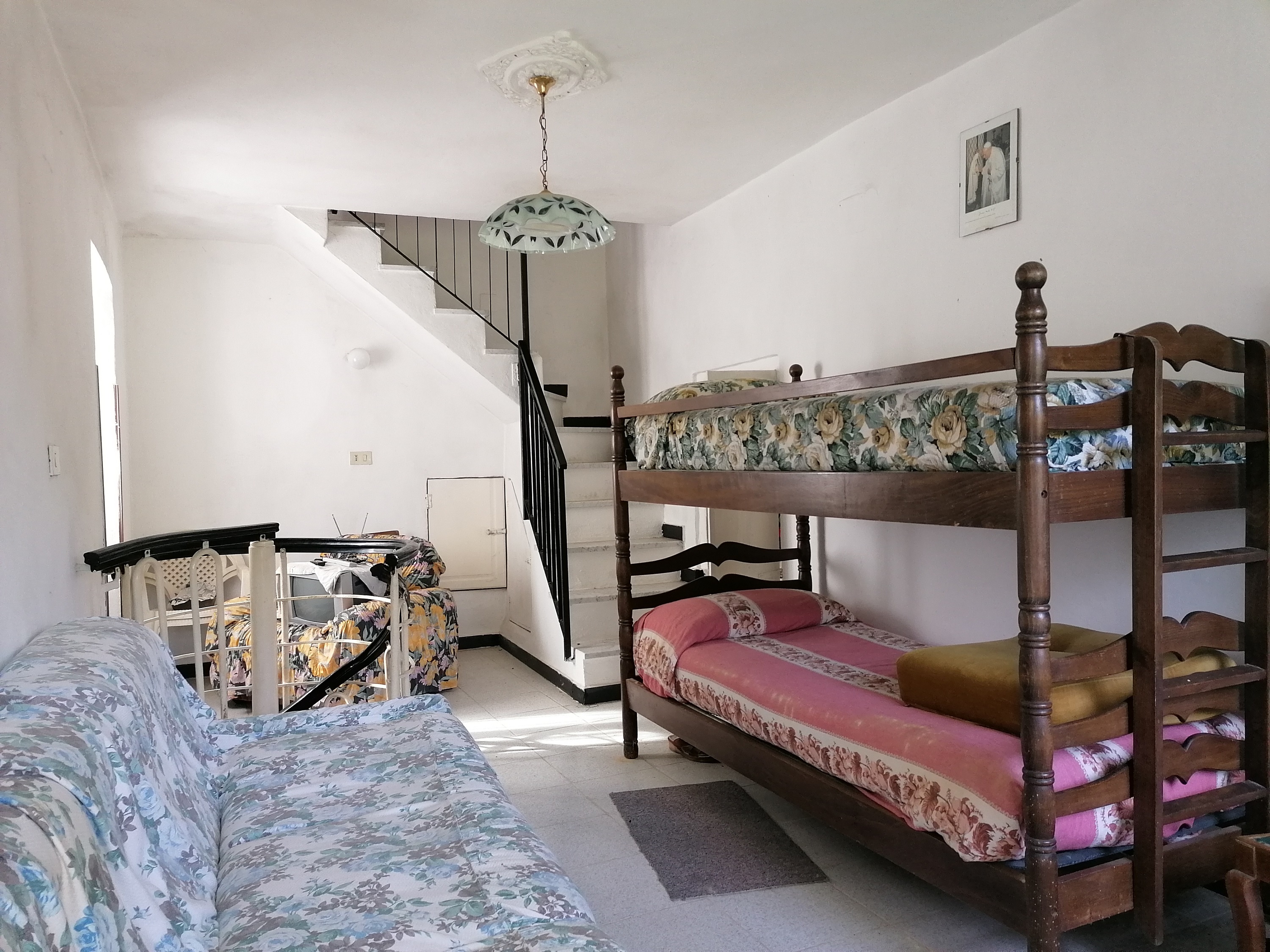 La casetta, che ha tetto e facciate in ottime condizioni è formata al piano terra da un piccolo terrazzo d'accesso con cantina e da cucina e bagno con antibagno, al primo piano da un vano a giorno affacciato su un secondo più gradevole terrazzo (di fatto è l'ingresso principale); al secondo ed ultimo piano (scala in muratura) da una camera con piccolo balcone.