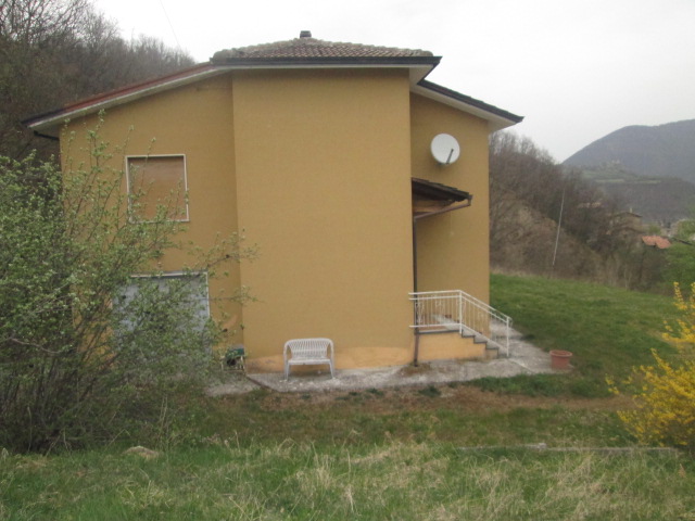 villino bipiano, indipendente su tre lati, con accesso carrabile, grande box/magazzino al piano terreno, bel terreno a prato e giardino circostante di circa 1200 mq. e gradevolissima esposizione sulla vallata e sulla località.