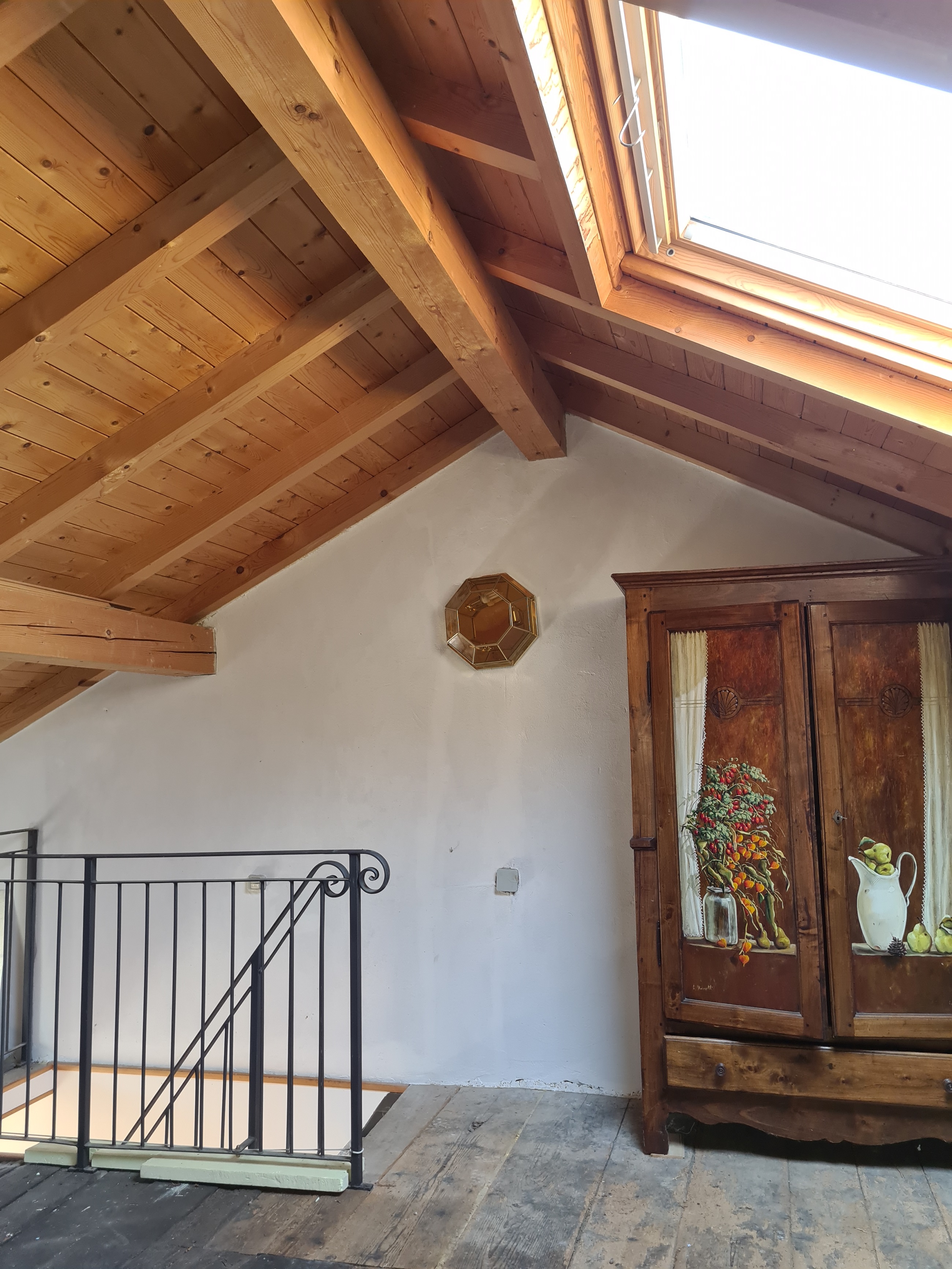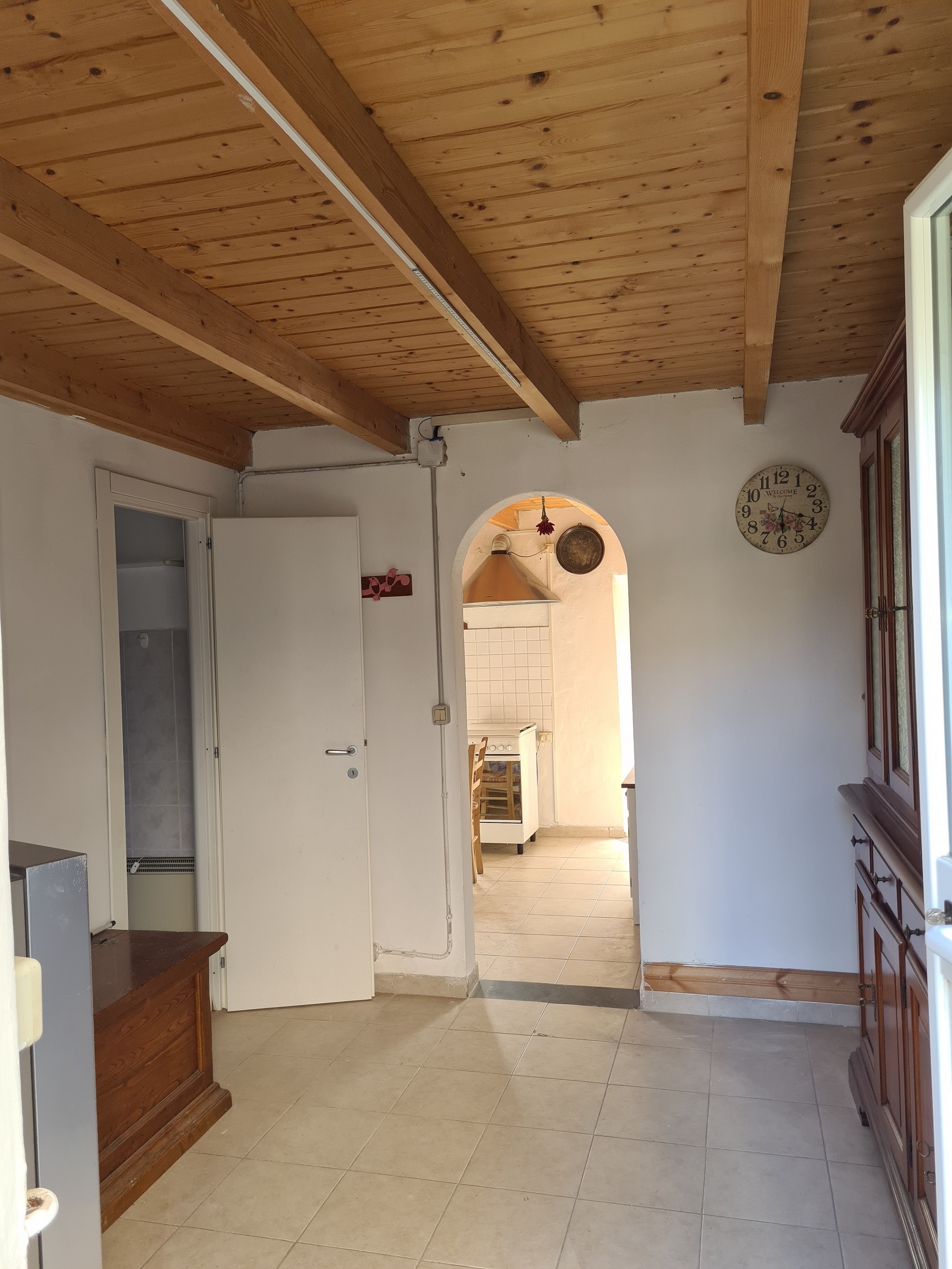 casa da terra a tetto, indipendente su due lati, con doppio accesso indipendente (da piccola corte pertinenziale a giardino (carrabile con moto) e da terrazza verandata), composta al piano terreno da cucina abitabile, ingresso/soggiorno (affacciato sulla piccola corte a giardino) e servizi (con doccia e finestra); al primo piano da un salotto (molto luminoso – due finestre), da una camera matrimoniale (ampia – due finestre); al secondo ed ultimo piano da un grande locale mansardato con velux e due piccole finestre in facciata (molto caratteristico e luminoso - travi a vista) ideale come zona notte.