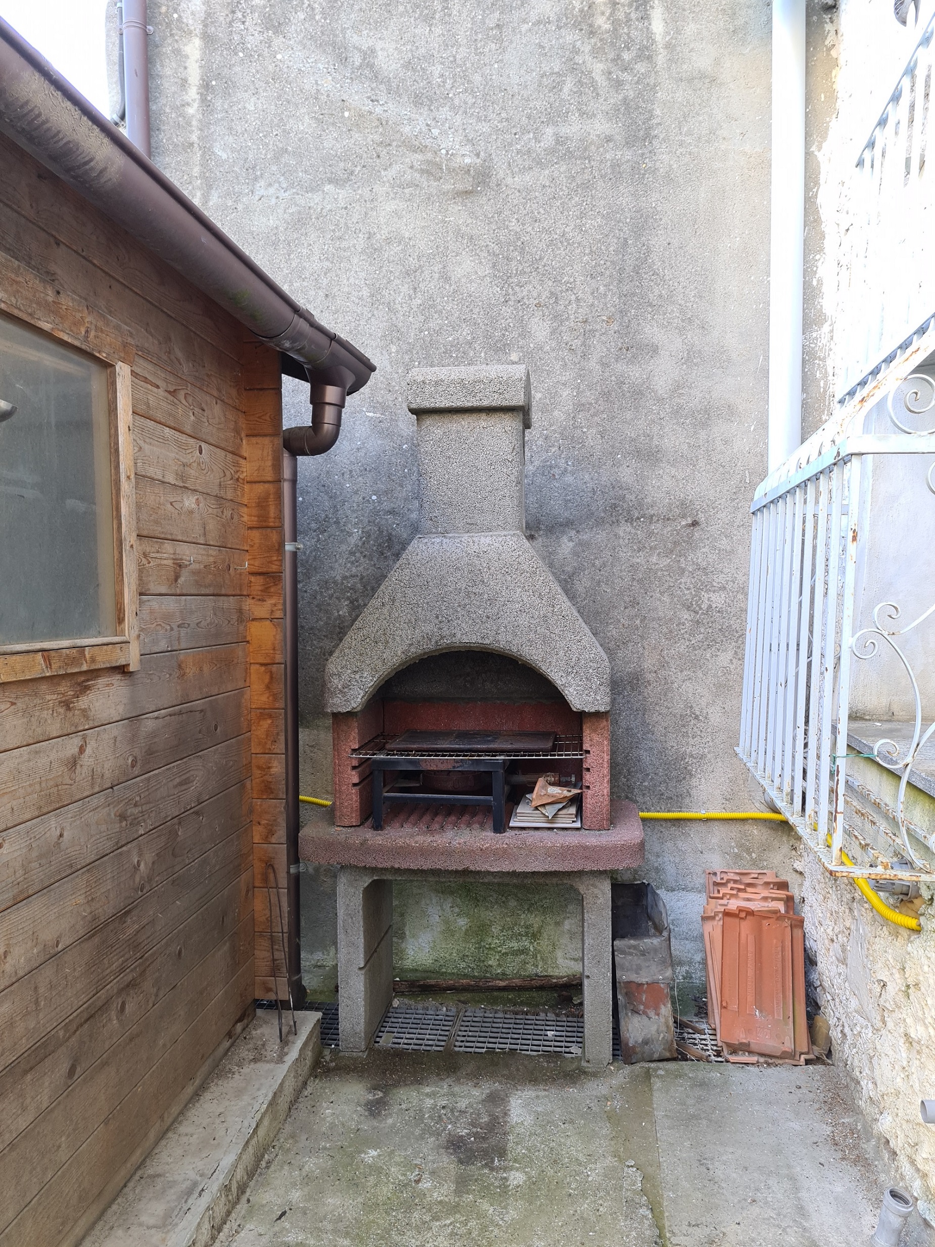 Gradevole l'affaccio sul borgo. Altrettanto il piccolo giardino con casetta il legno (ricovero pellet e bombole) e barbecue.