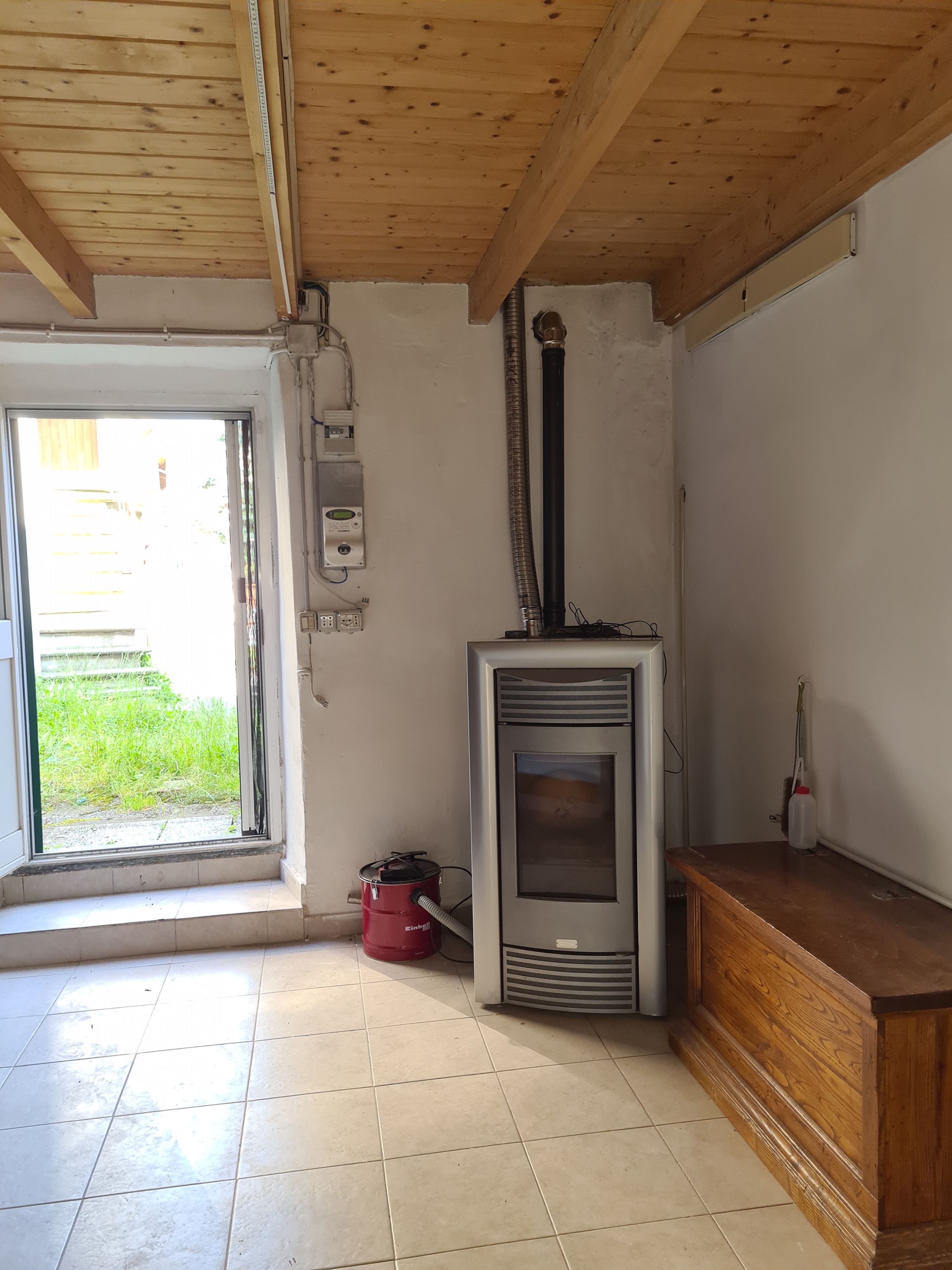 Buone condizioni di manutenzione sia interne che esterne (tetto completamente rifatto recentemente e facciate ancora in ordine). Bei pavimenti in tavolato, finestre in alluminio (doppio vetro) persiane in alluminio. Riscaldamento con stufa a pellet con bocchette di areazione e, in alternativa, termoconvettori (in bagno e nelle due camere) a gas. Boiler elettrico per la produzione di acqua calda.