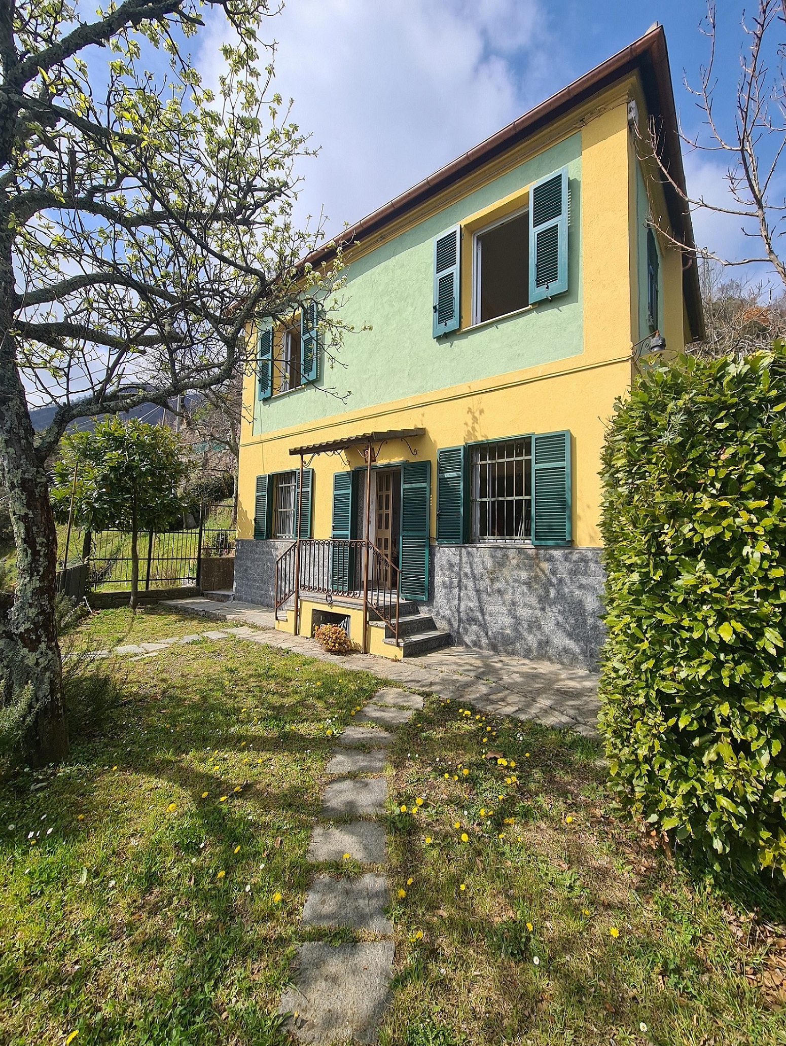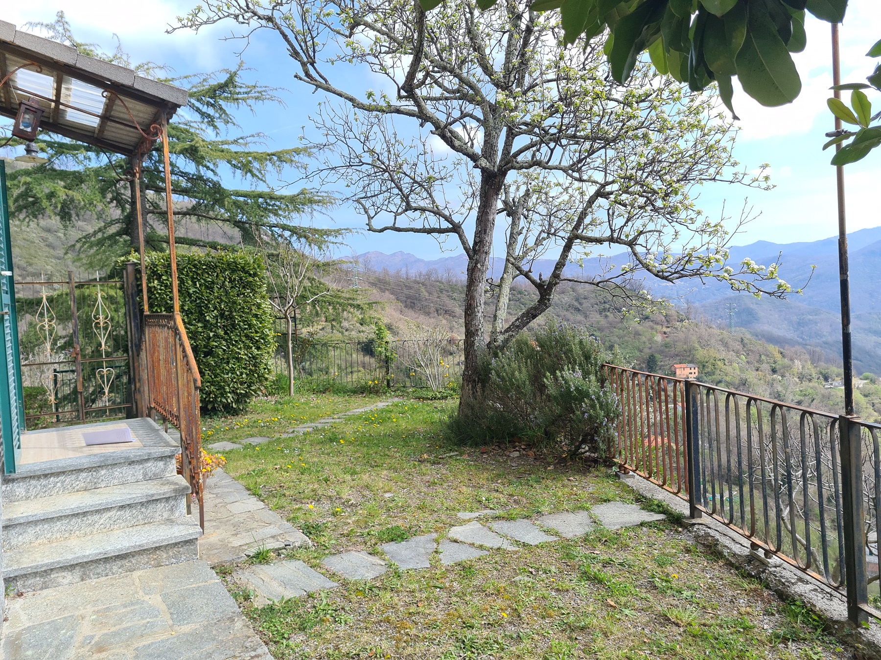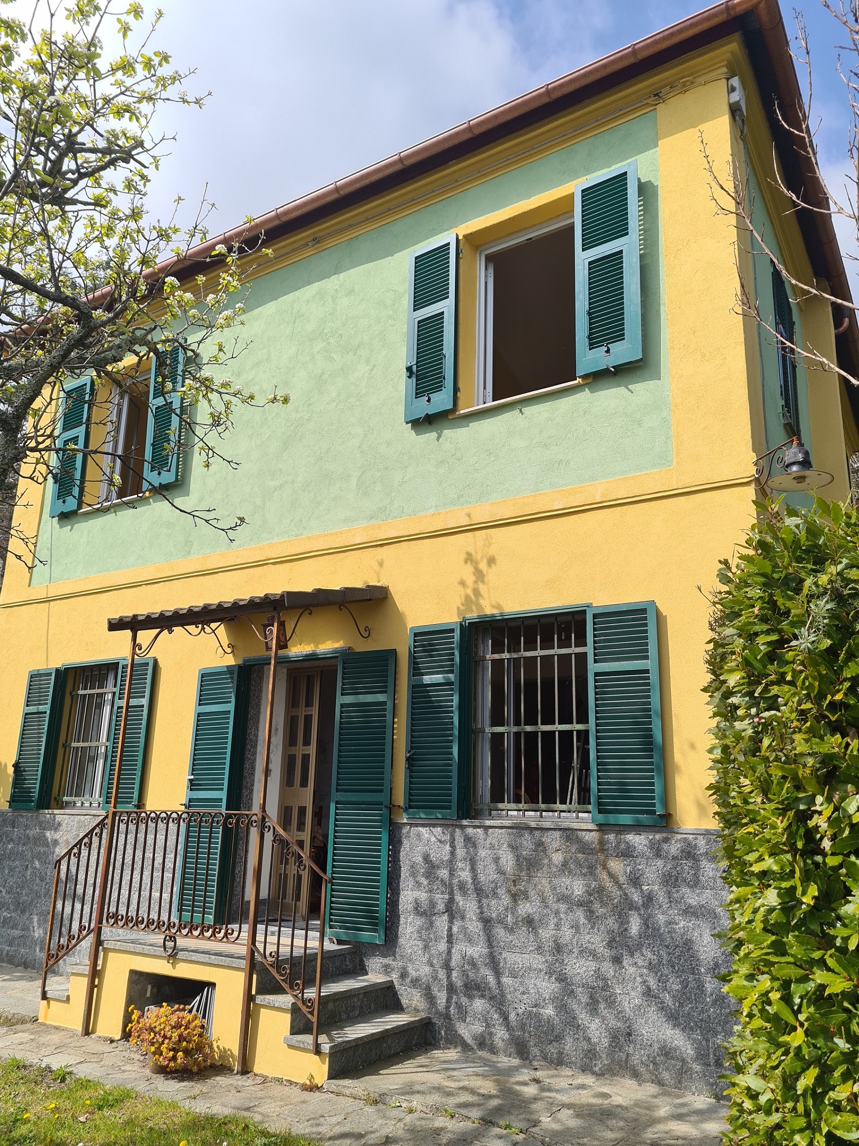 panoramicissima casetta bipiano, indipendente sui quattro lati, con gradevolissimo ed altrettanto panoramico piccolo (60 mq.) giardino splendidamente esposto al sole.