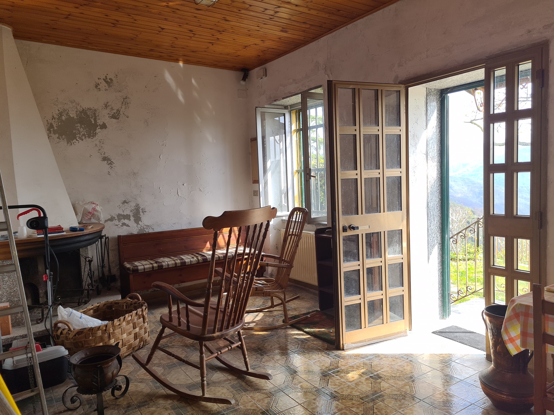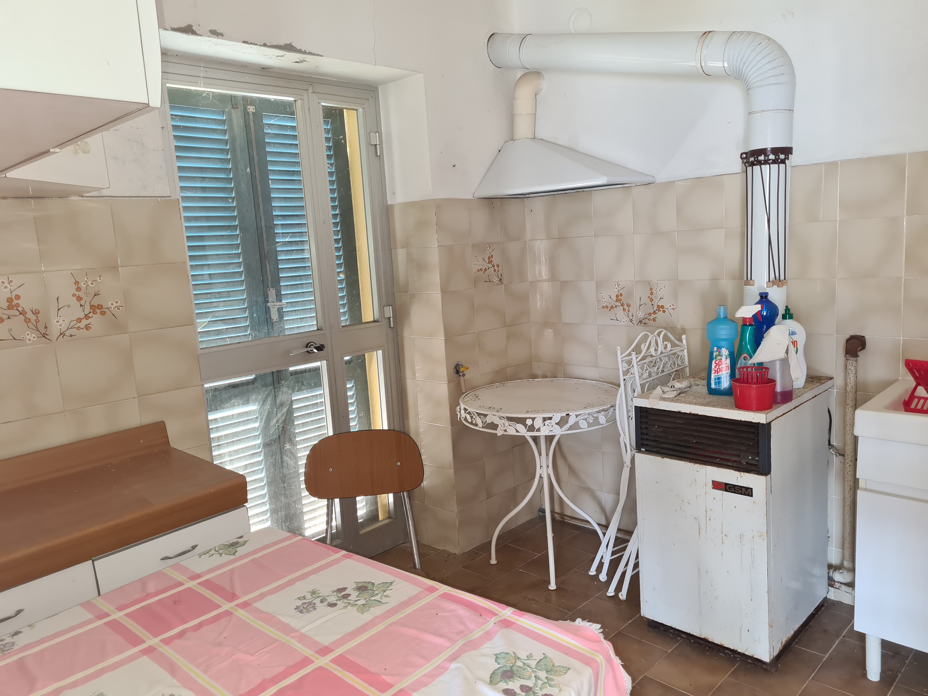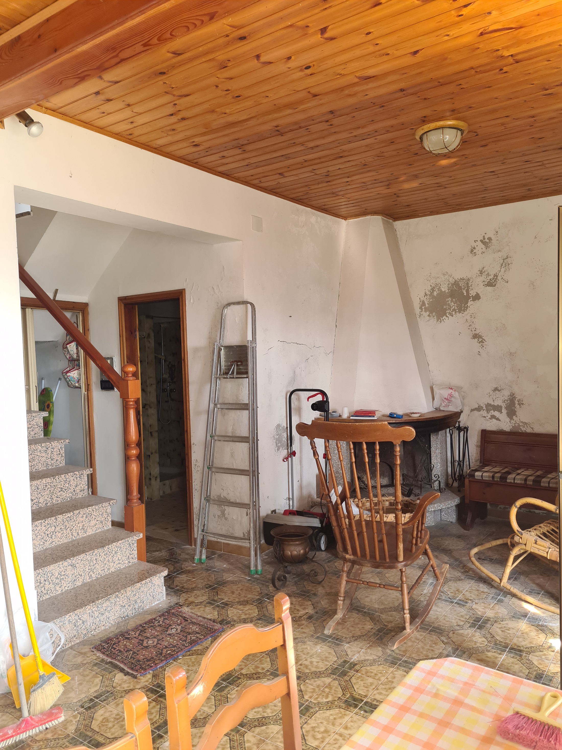 La casa è composta al piano terreno da un grande e luminoso soggiorno (portoncino d'accesso e due finestre) con caminetto, cucina abitabile, ripostiglio e servizi (doccia, finestra e alloggio lavatrice);