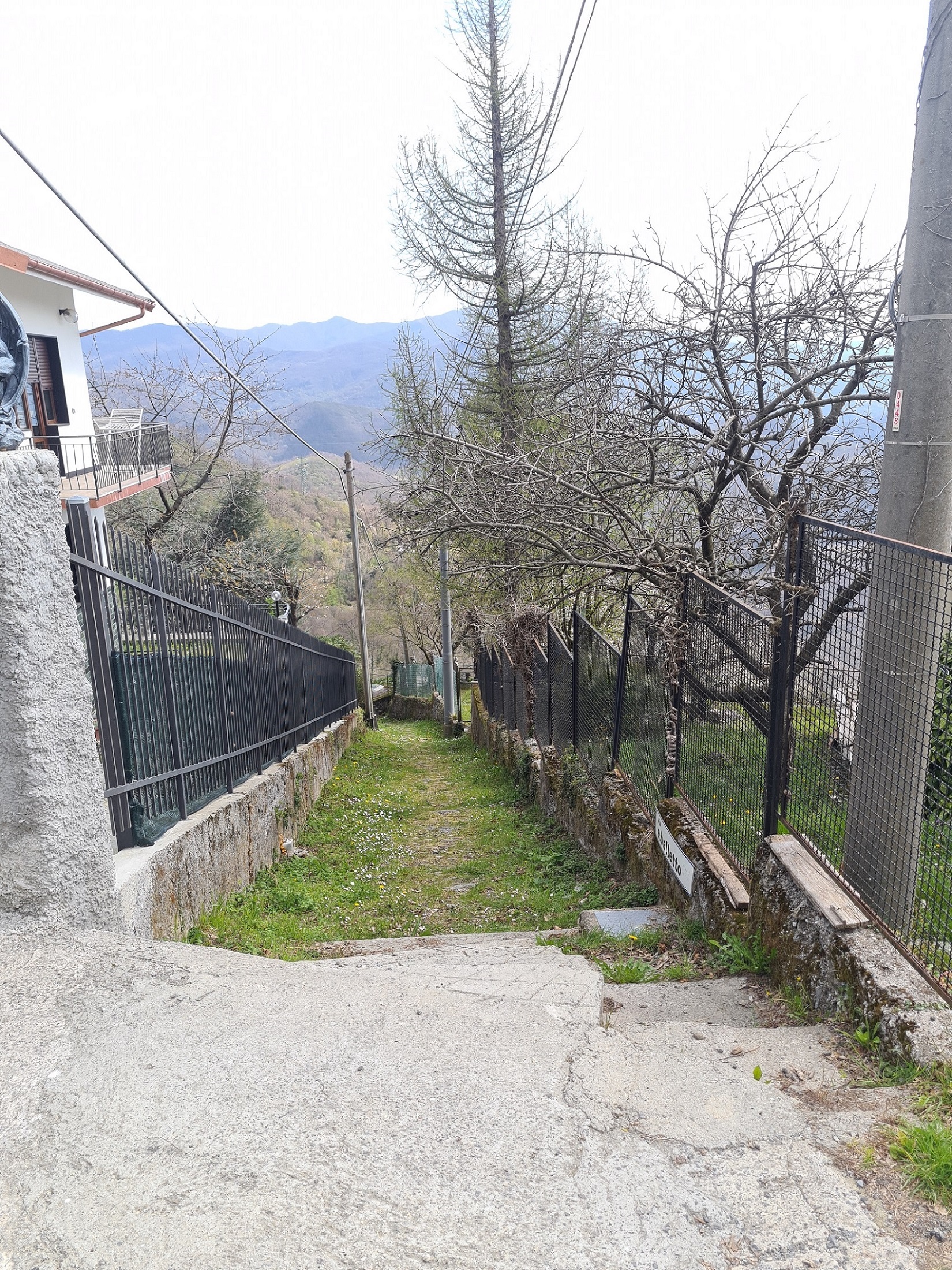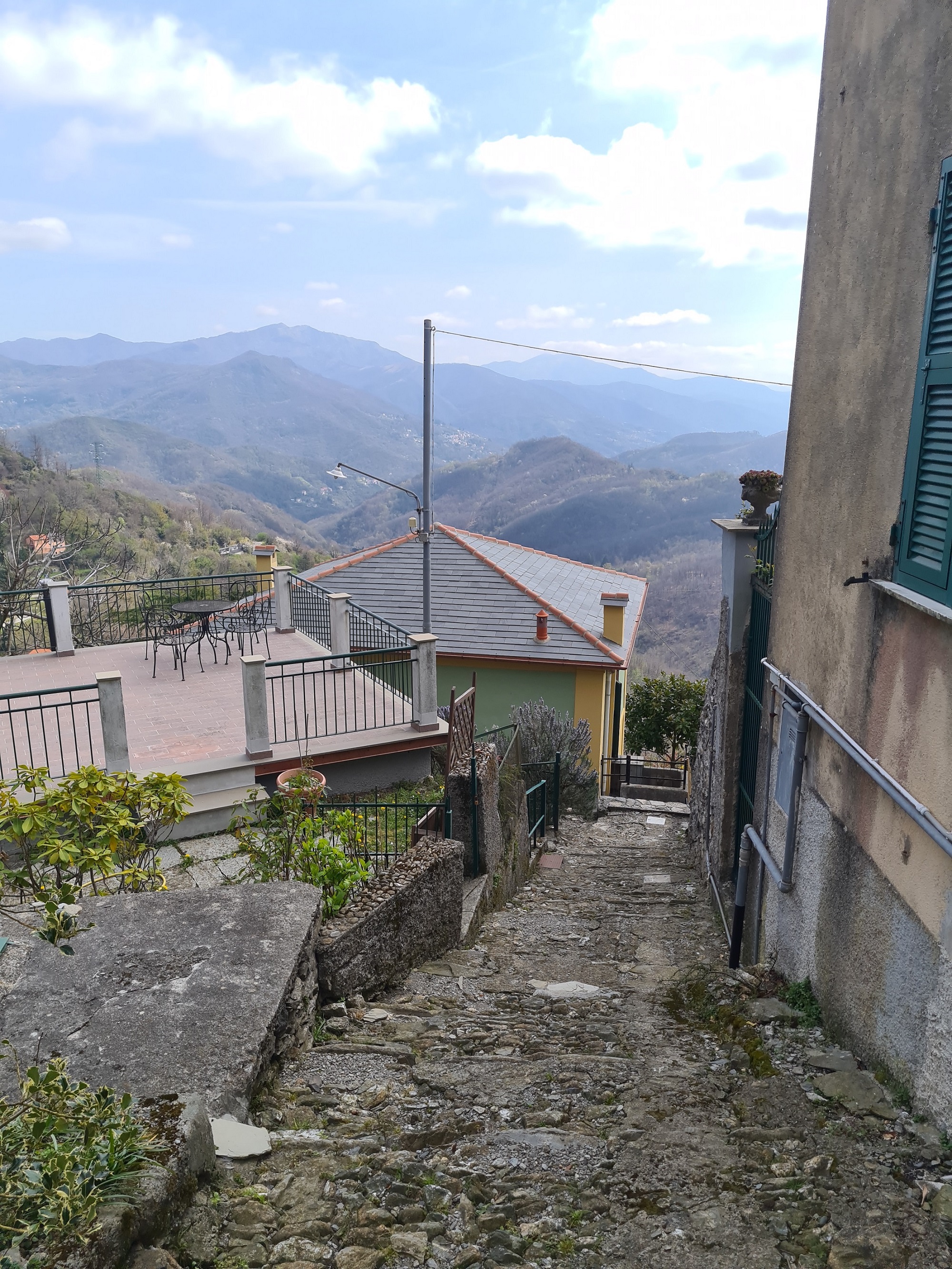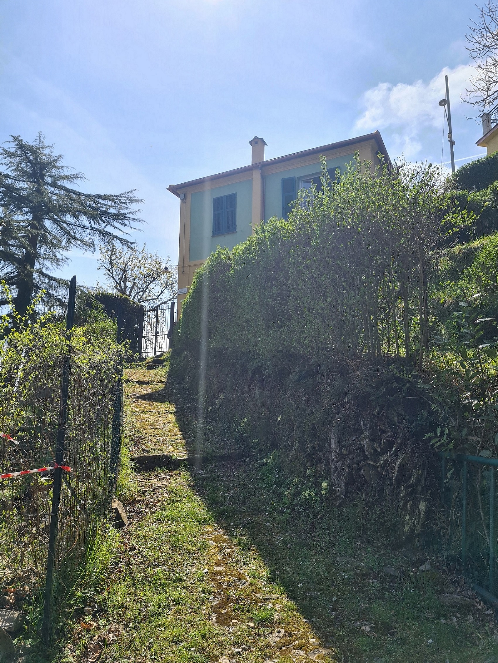 Per contro la casetta è raggiungibile solo pedonalmente essendo servita da classica crosa alla ligure (che parte dalla strada carrabile dove c'è ampia possibilità di parcheggio). Il tratto da percorrere pedonalmente misura circa 120 metri ma copre un dislivello piuttosto importante risultando pertanto decisamente impegnativo.