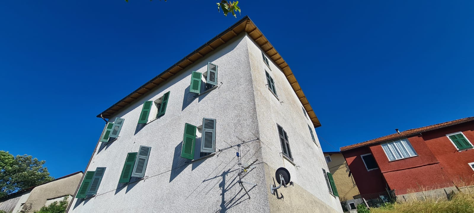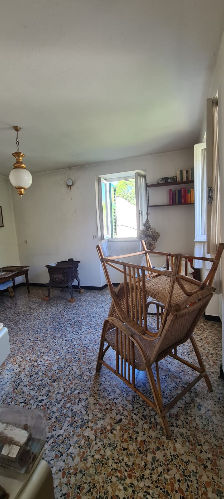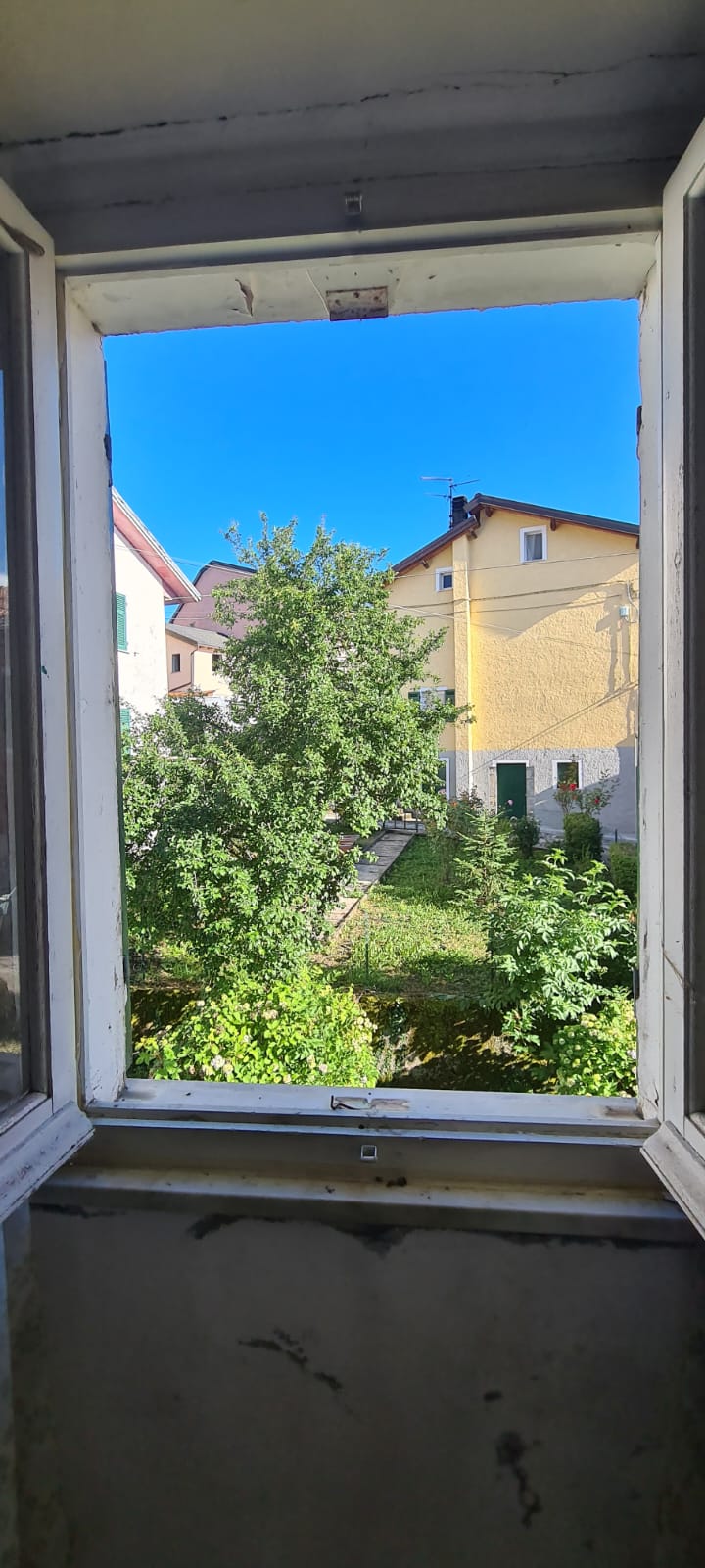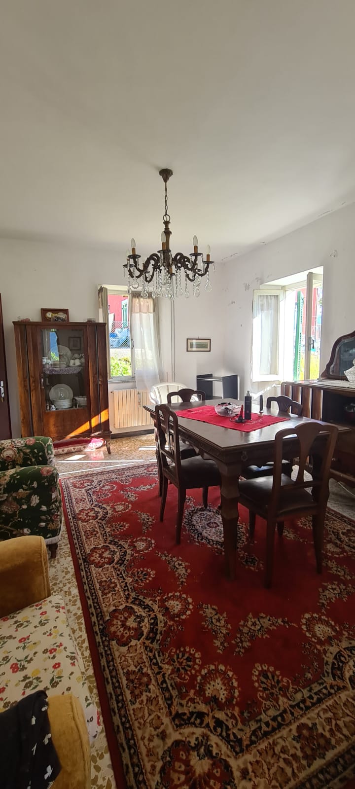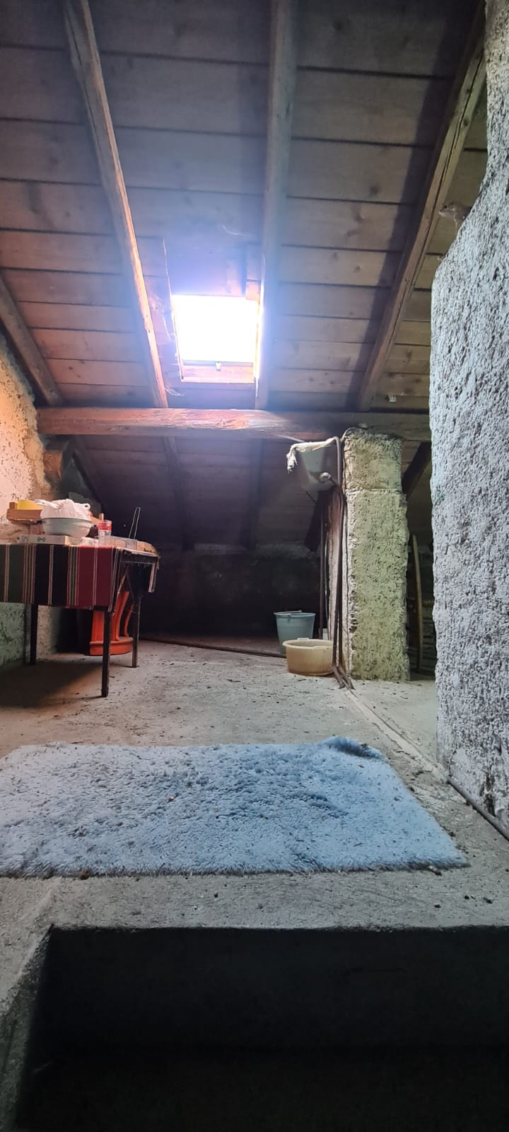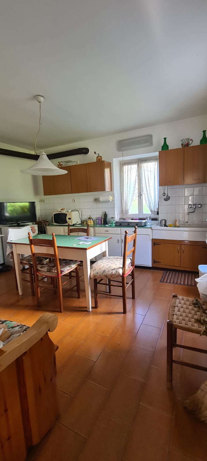 al piano terreno da ingresso, grande cucina, soggiorno (a servizio della stessa), altri due grandi locali a giorno (eventuali camere), disimpegno e servizi (con vasca e finestra); al primo piano (al quale si accede da comoda scala interna) da disimpegno, quattro camere (di cui una originariamente utilizzata come seconda cucina a servizio del piano), e secondo bagno (gemello del primo, con vasca e finestra). Al piano sottotetto, con comodo accesso da scala, da tre grandi locali di sgombero (tutti adeguatamente finestrati e recuperabili eventualmente a mansarda vivibile).