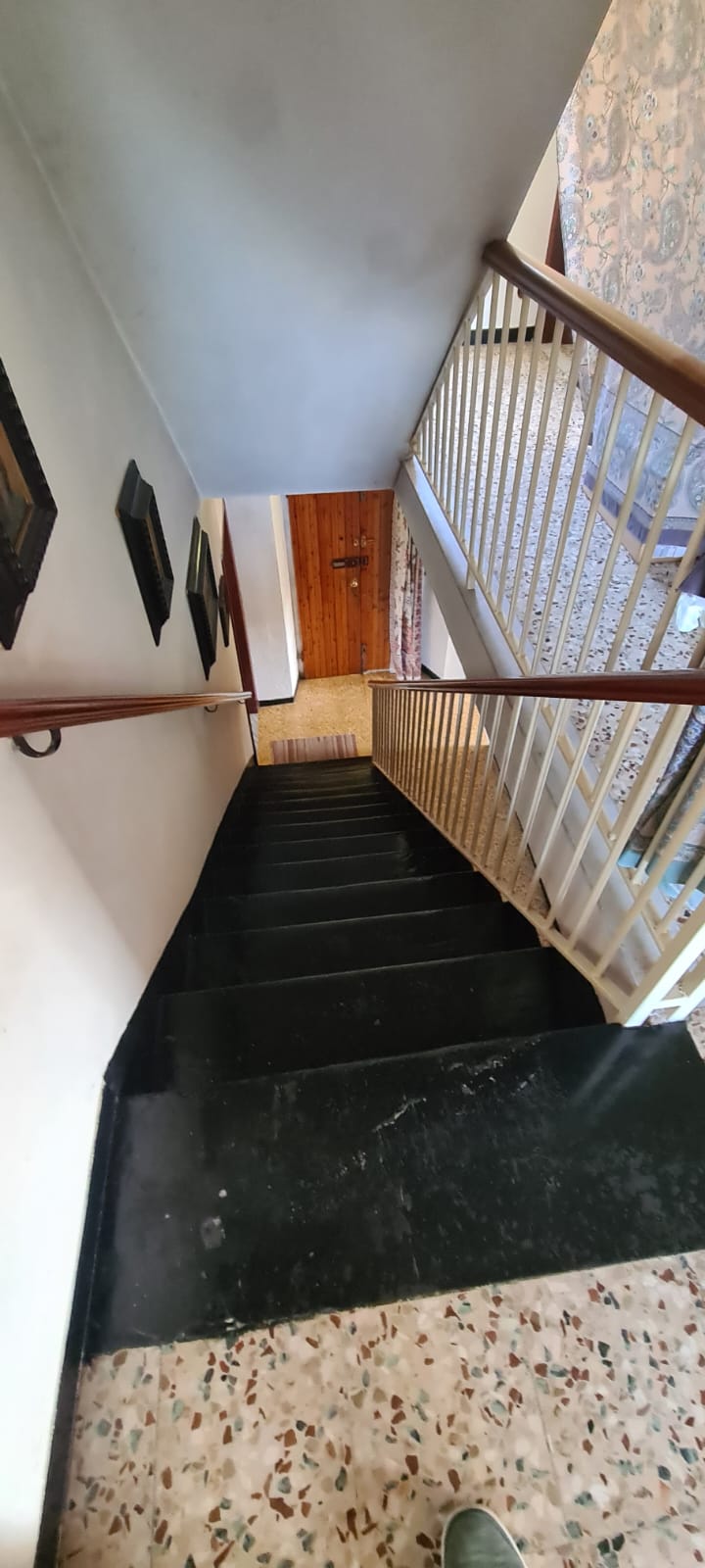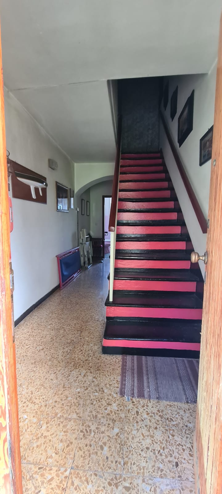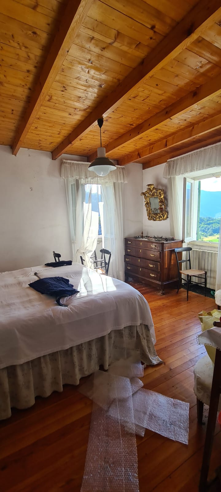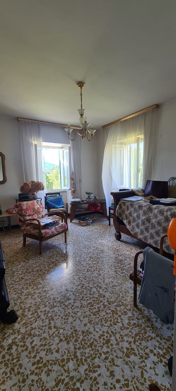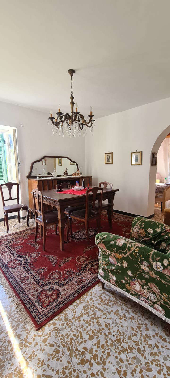 al piano terreno da ingresso, grande cucina, soggiorno (a servizio della stessa), altri due grandi locali a giorno (eventuali camere), disimpegno e servizi (con vasca e finestra); al primo piano (al quale si accede da comoda scala interna) da disimpegno, quattro camere (di cui una originariamente utilizzata come seconda cucina a servizio del piano), e secondo bagno (gemello del primo, con vasca e finestra). Al piano sottotetto, con comodo accesso da scala, da tre grandi locali di sgombero (tutti adeguatamente finestrati e recuperabili eventualmente a mansarda vivibile).