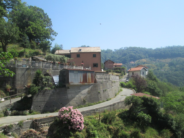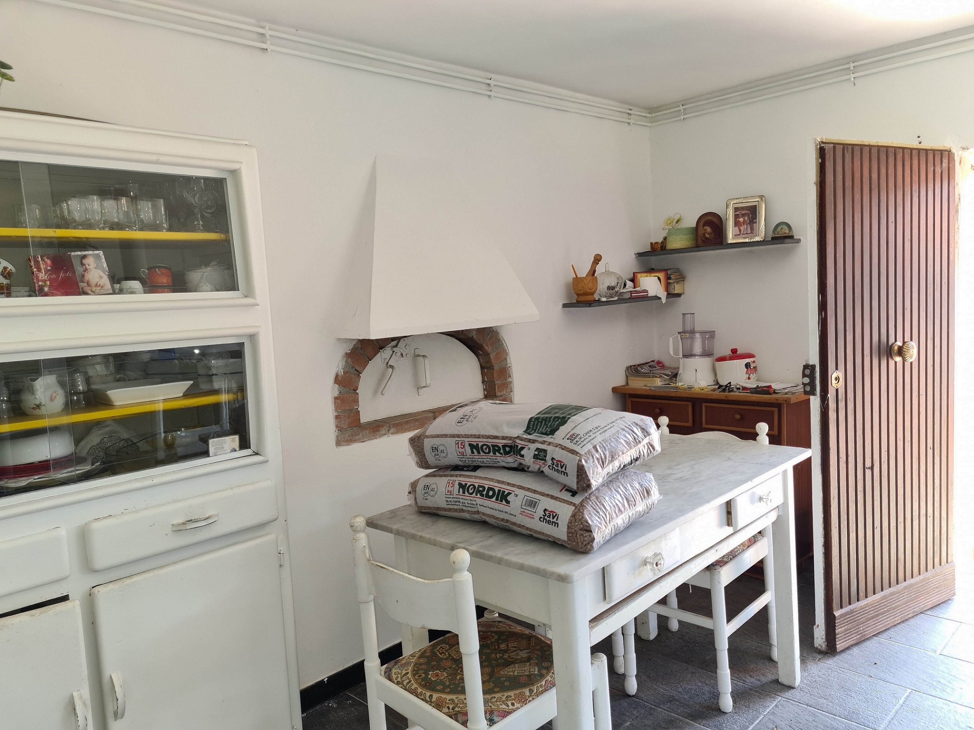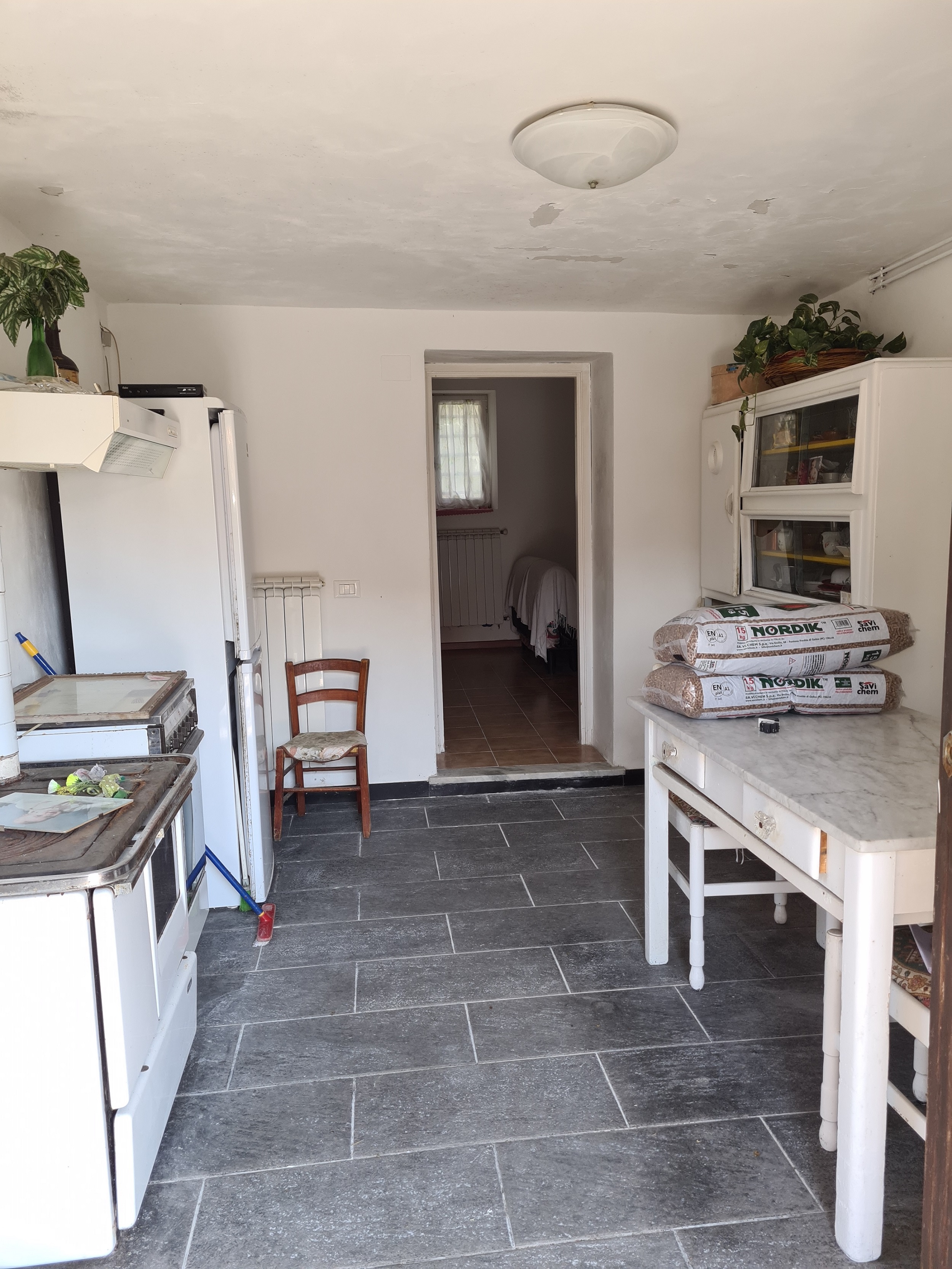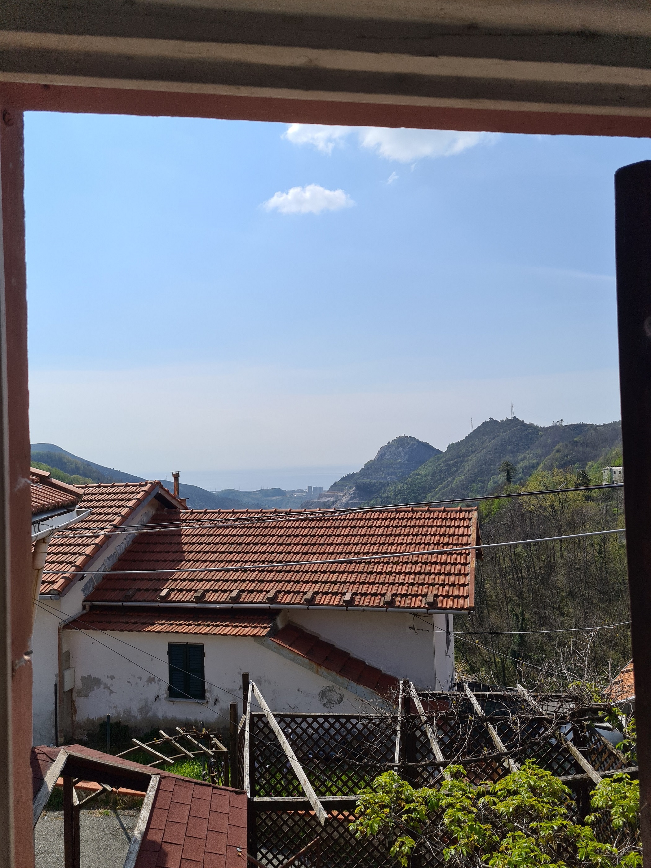 La casa è composta al piano terreno dal giardino terrazzato con pergolato e da cucina abitabile (davvero caratteristica, lavandino in marmo alla genovese, forno in muratura), soggiorno (con caminetto), servizi (doccia e finestra) e camera singola o studio; al piano superiore (al quale si accede tramite scala interna in legno) da piccolo disimpegno, due camere e terzo locale mansardato ampio e molto luminoso, con caratteristici soffitti con travi a vista) uso ulteriore zona notte o altro.