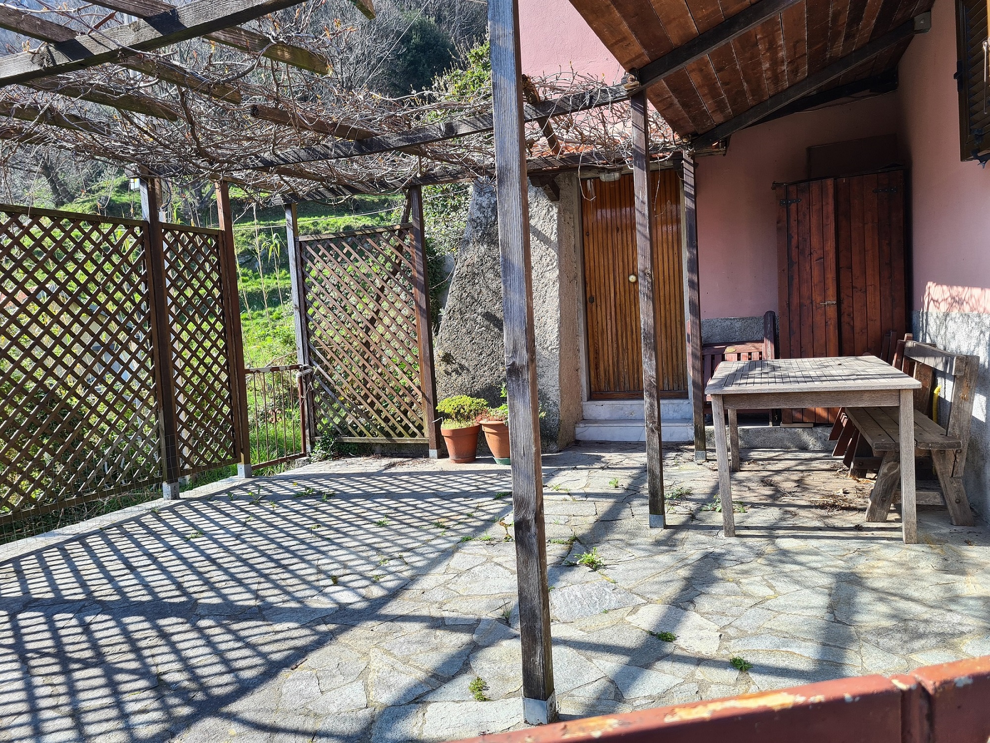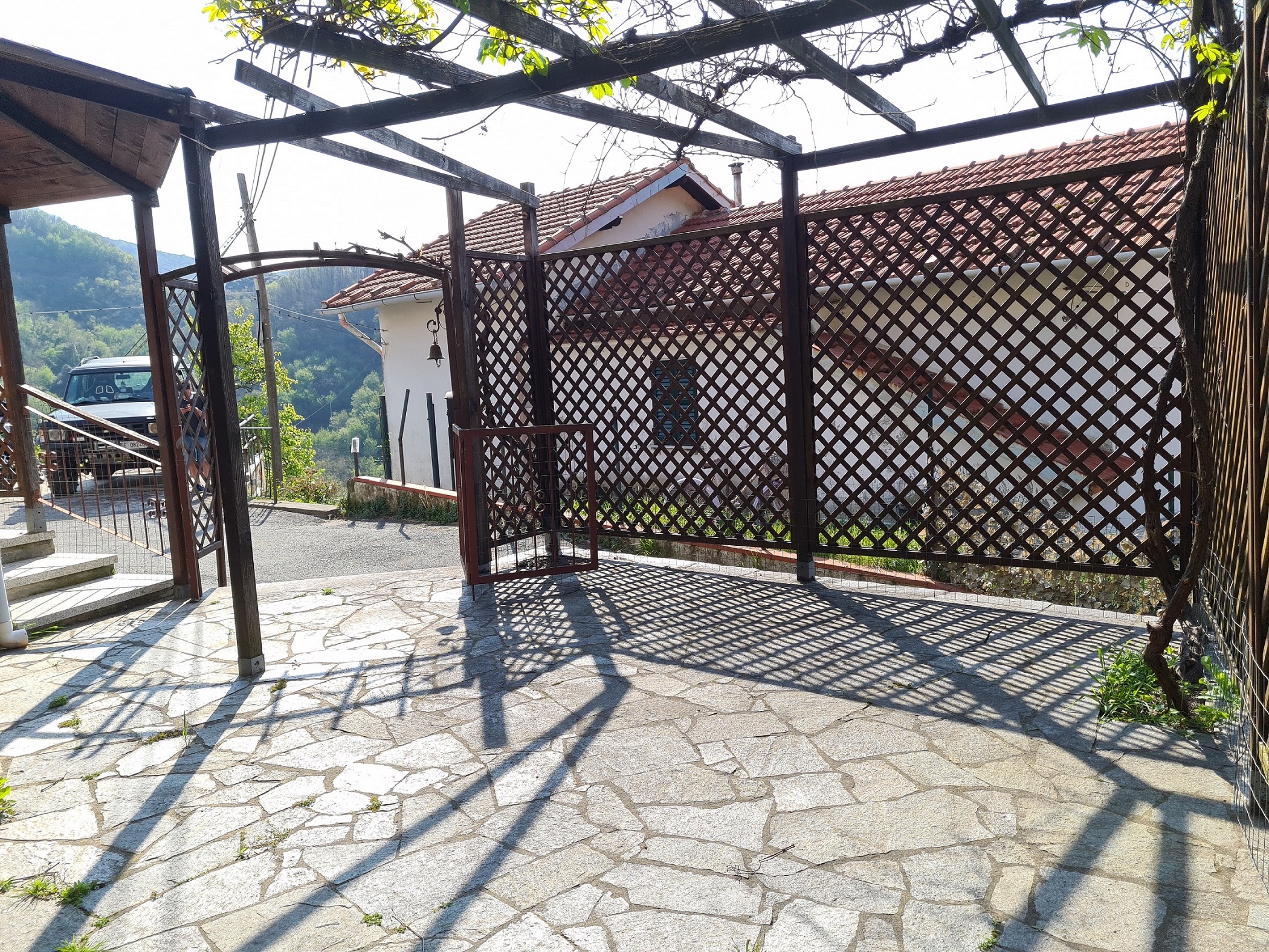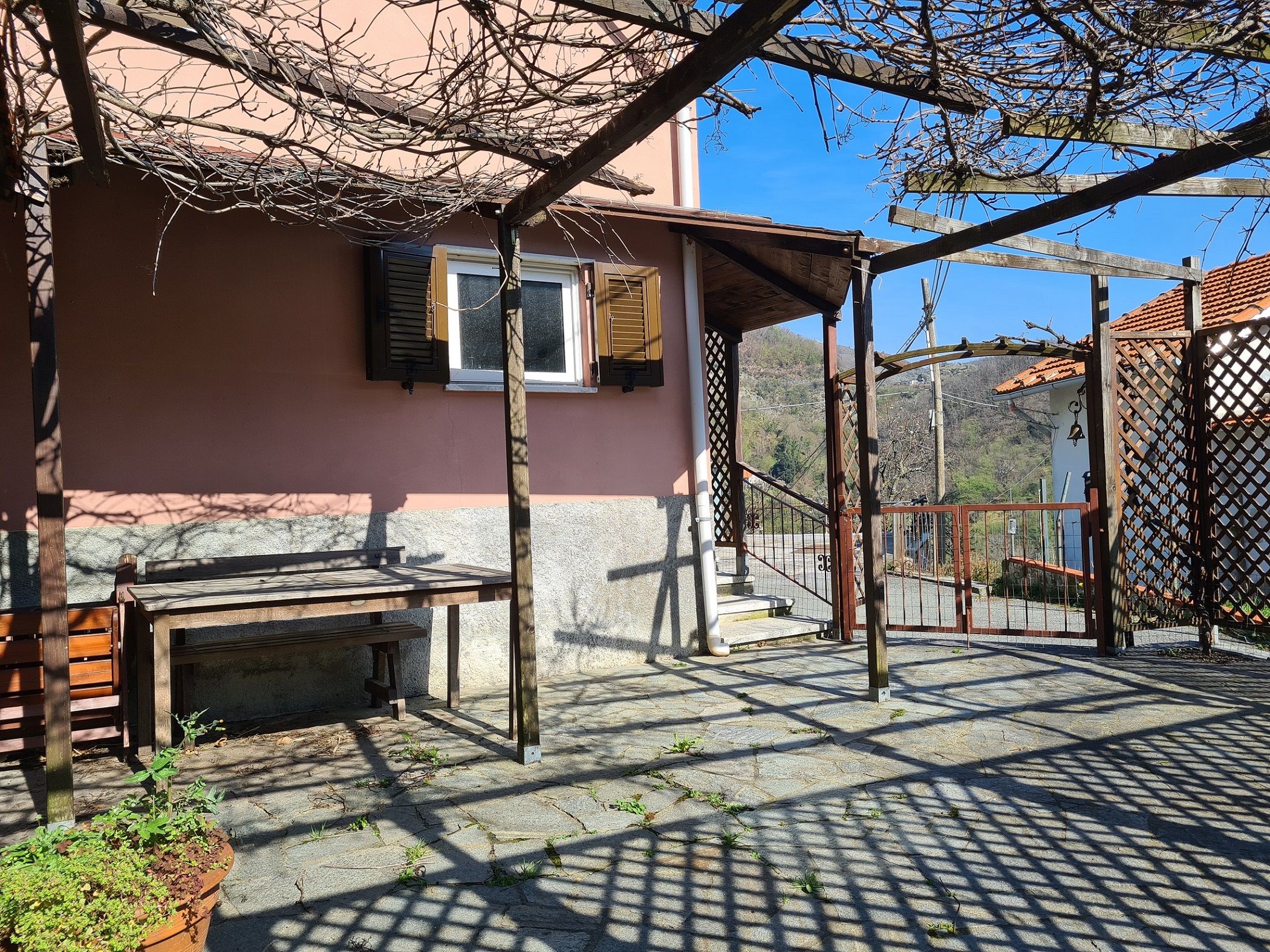 caratteristica ordinata casa su due piani, indipendente su tre lati con gradevole godibilissimo giardino terrazzato pertinenziale con bel pergolato, e porzione di terreno (circa 1.000 mq.) ad orto e bosco a pochi passi.