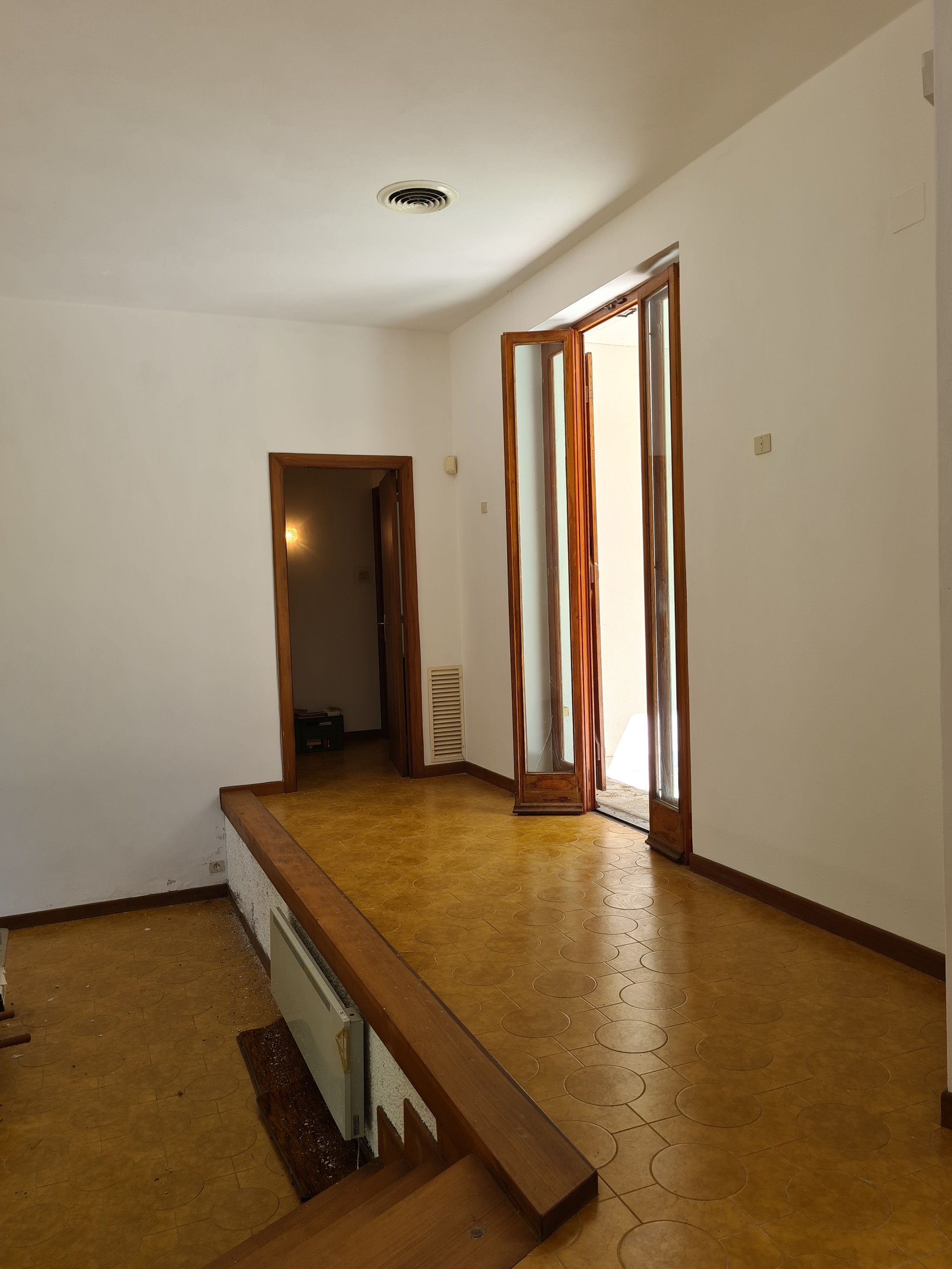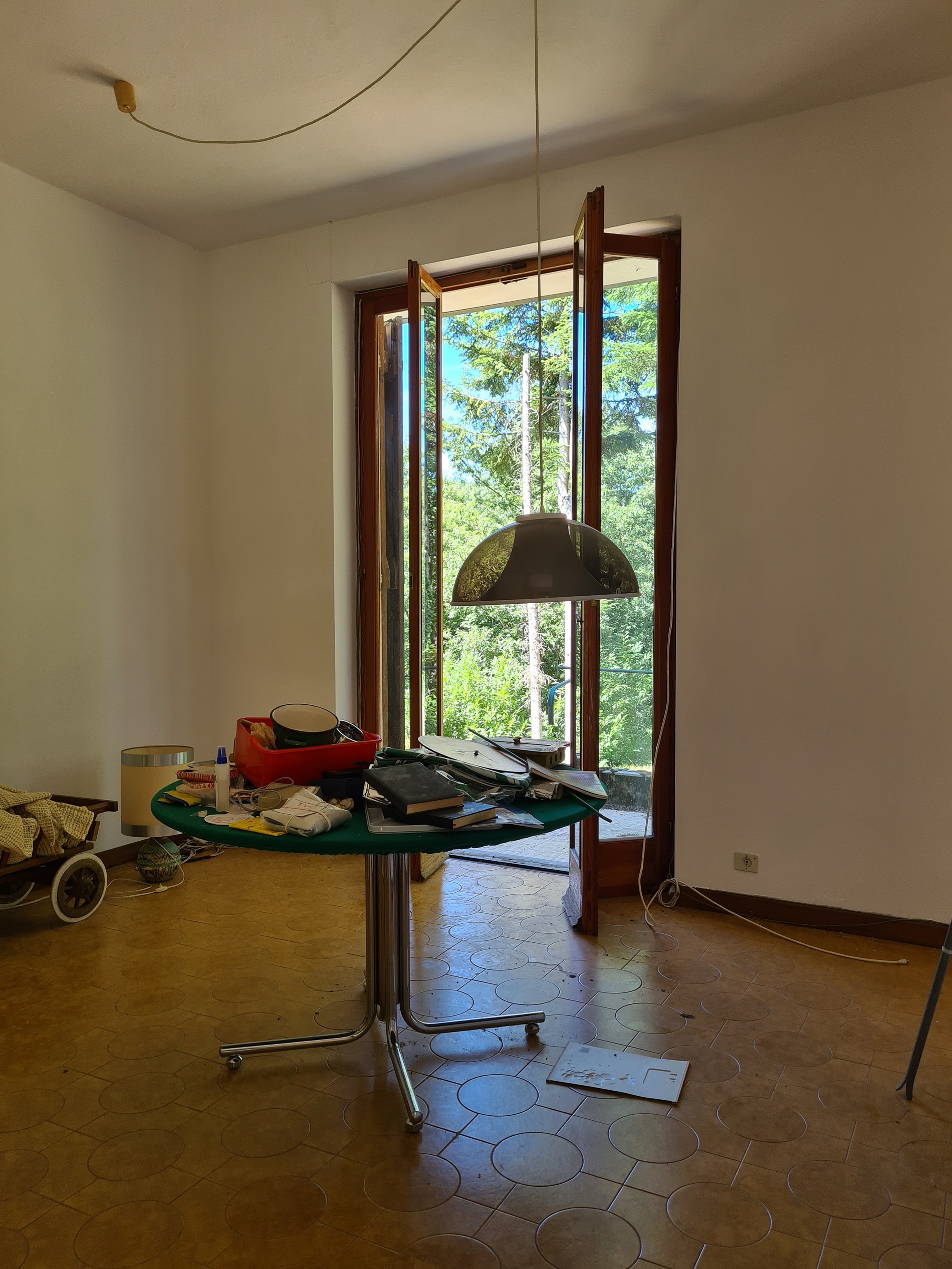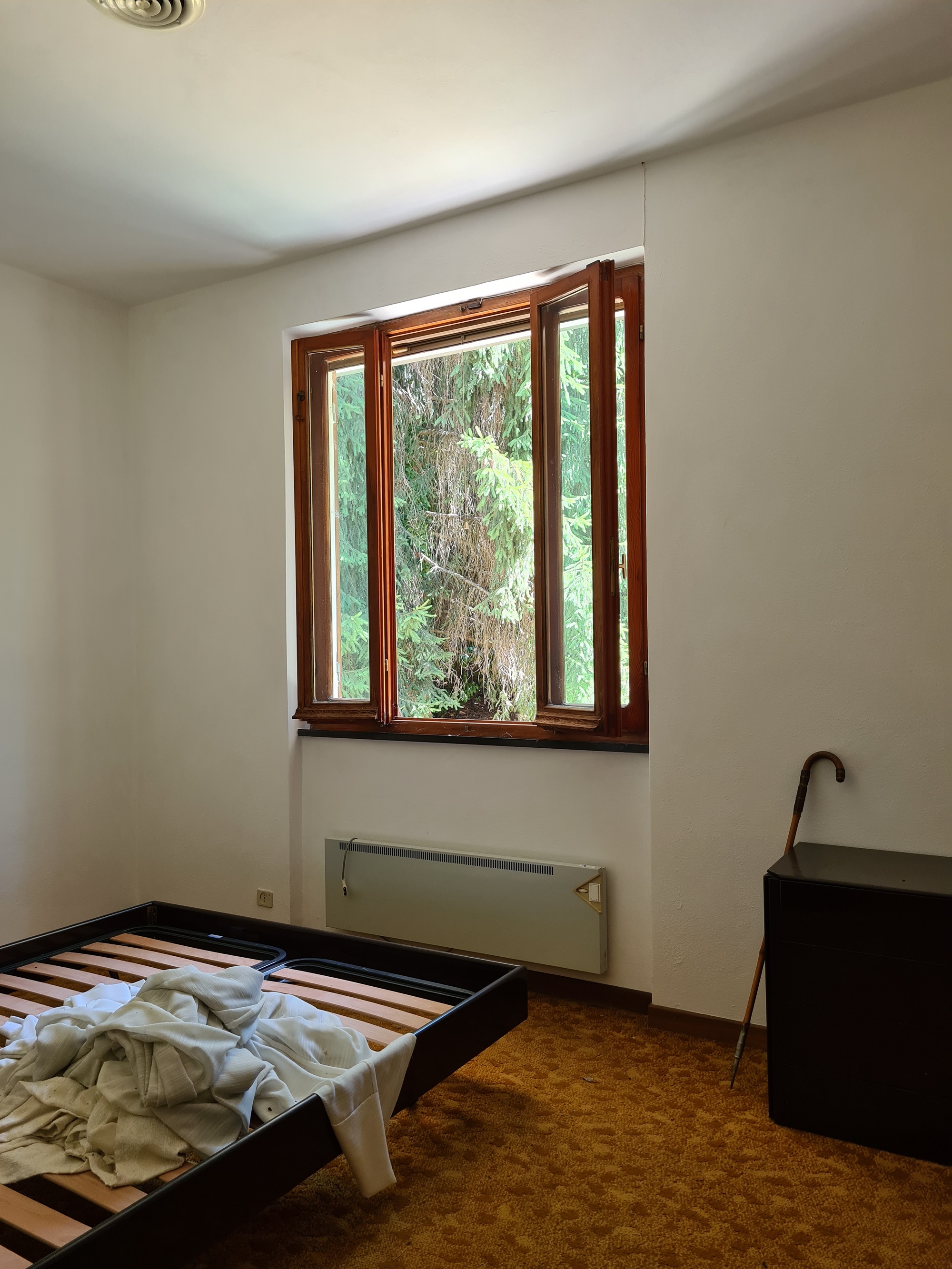 Ampie superfici finestrate con caratteristiche finestre in legno con vetro singolo ed altrettanto caratteristiche persiane in legno.