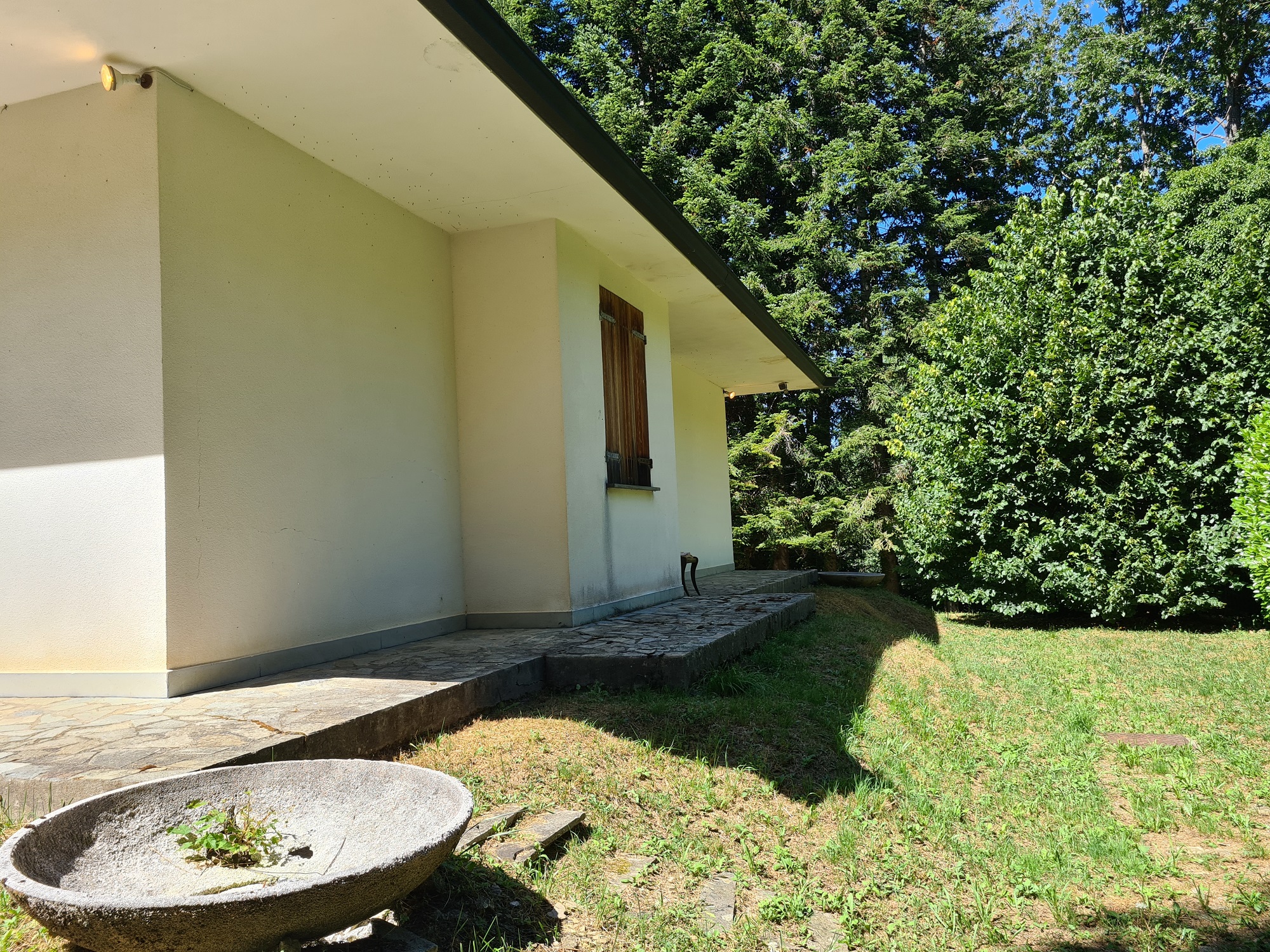 elegante, signorile villa metà anni '70 indipendente sui quattro lati, completamente immersa nel verde con grande giardino circostante perfettamente mantenuto con alberi ad alto fusto ed altro terreno a prato e bosco il tutto formante un sol corpo (circa 5.000 mq.) attorno alla proprietà.