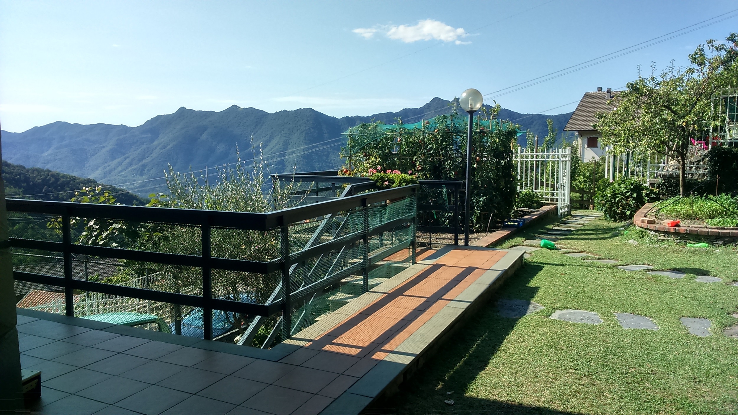 elegante ordinatissimo villino semindipendente con giardino attrezzato terrazze panoramiche splendido terreno ad orto e frutteto, agevole doppio accesso carrabile, garage e grande spazio a parcheggio.