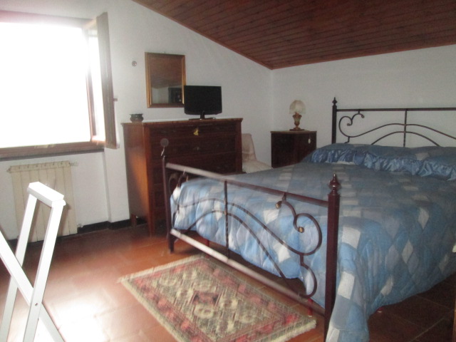 Dal giardino attrezzato si accede alla parte ad abitativo composta al piano giardino da ampio soggiorno (con caratteristico e funzionale caminetto) molto luminoso e con bell'affaccio sulla vallata, cucina a vista e servizi (con vasca e finestra); al piano superiore (elegante scala in legno) da piccolo disimpegno, camera matrimoniale, una seconda camera più piccola e servizi (doccia e finestra). I due piani ad abitativo misurano 70 mq. utili. (al netTo delle terrazze perimetrali, ed alla terrazza a servizio del giardino) oltre ai 30 mq. del locale al piano rialzato, al garage ed al locale tecnico.