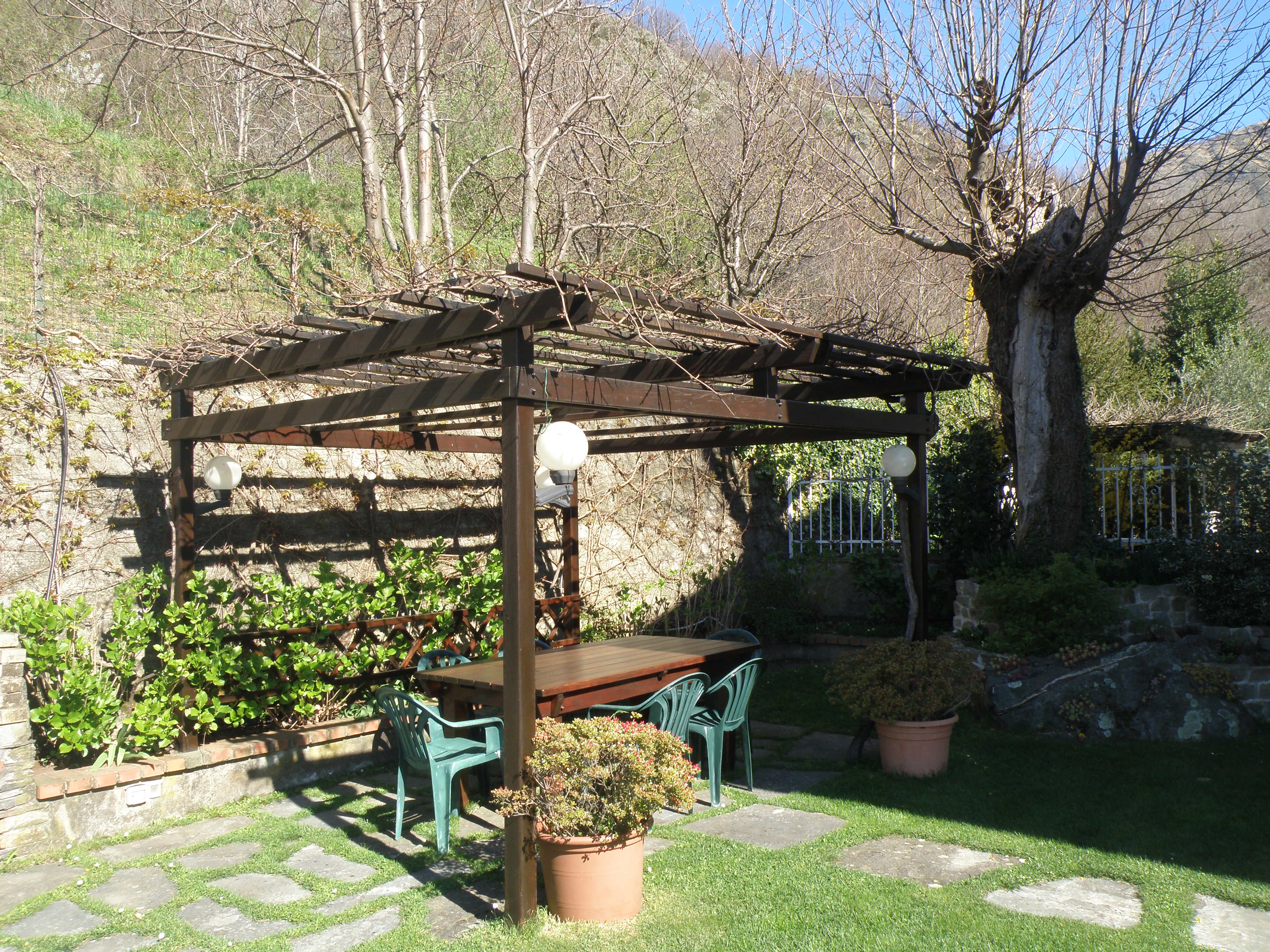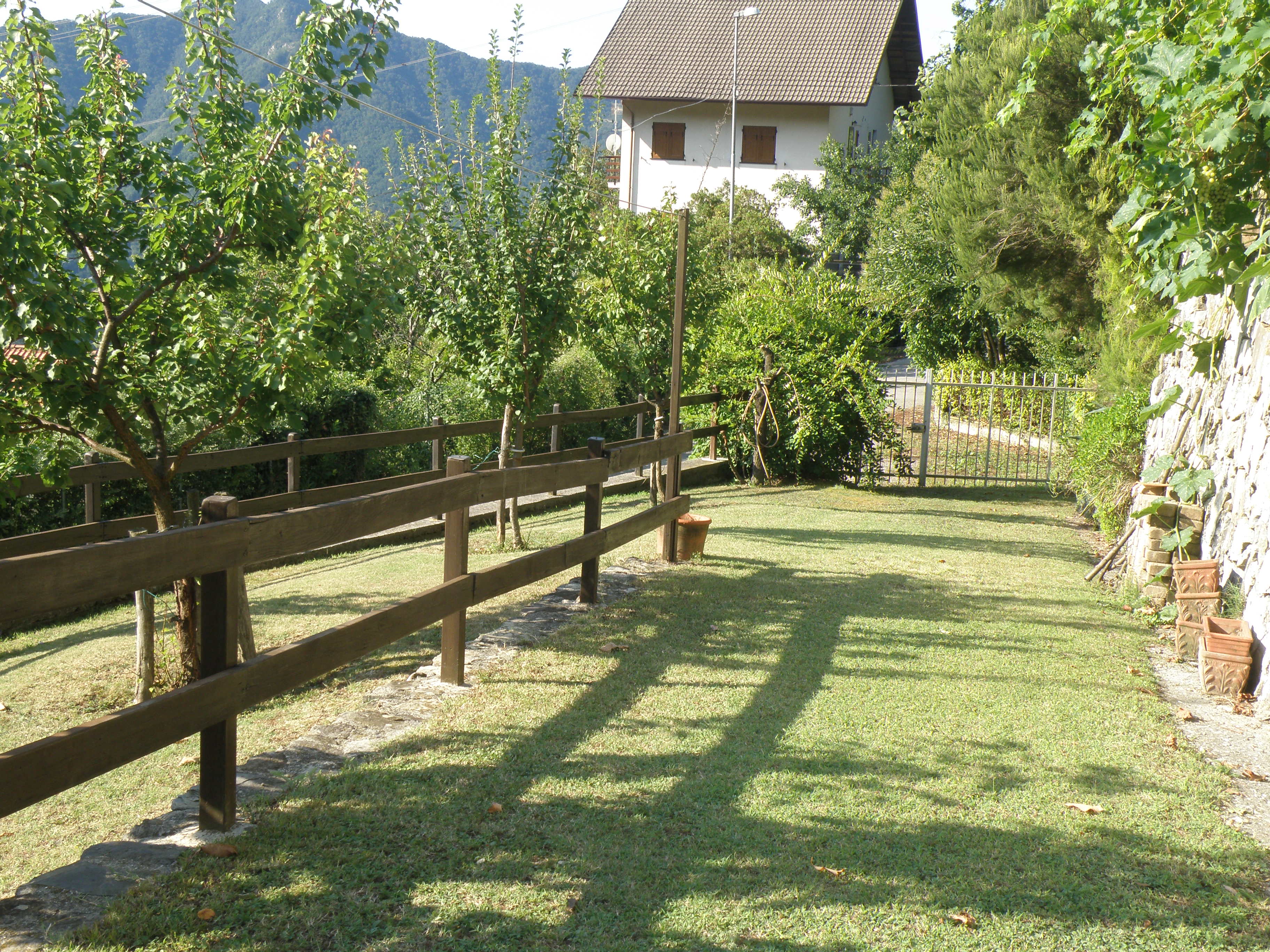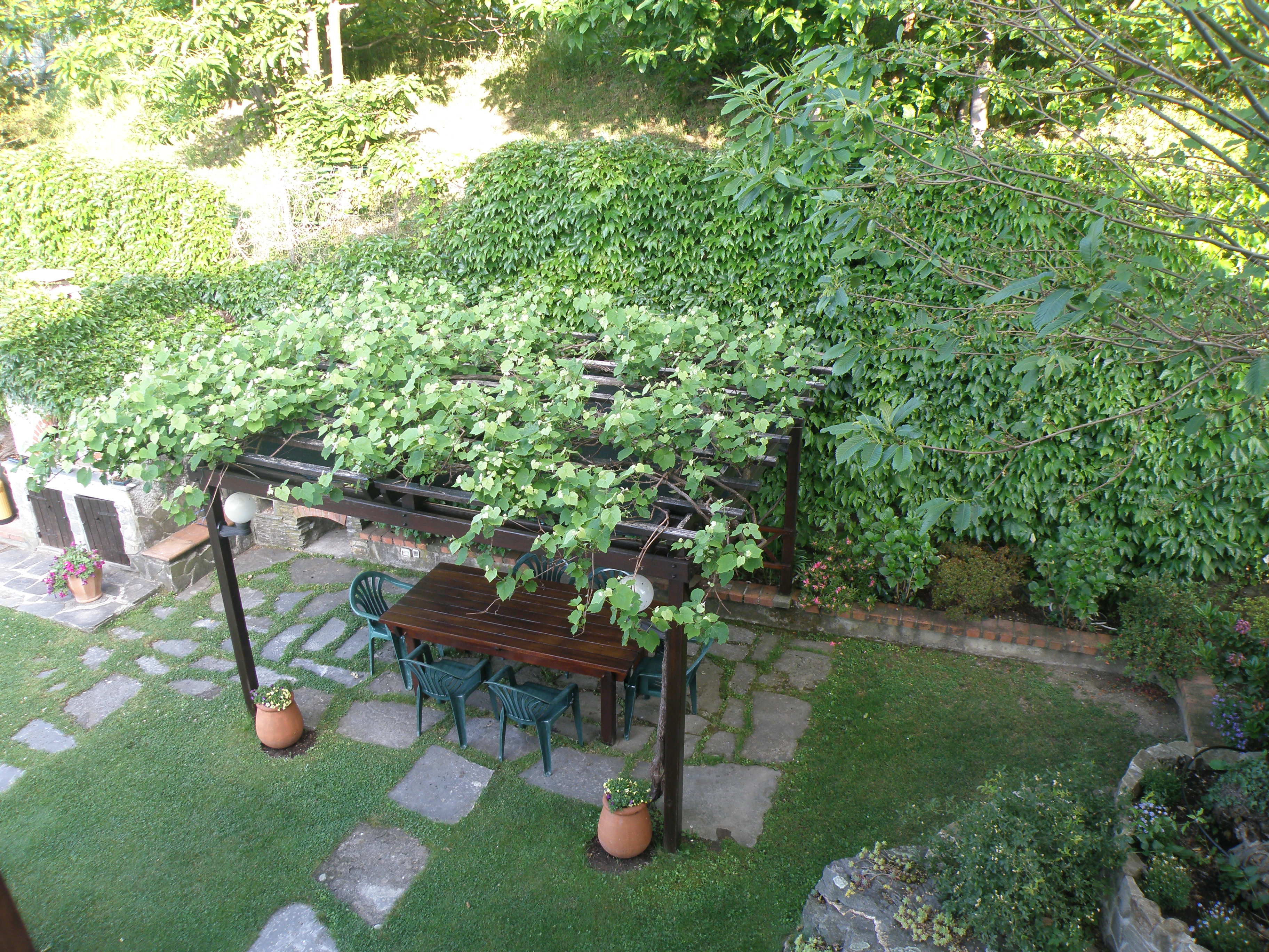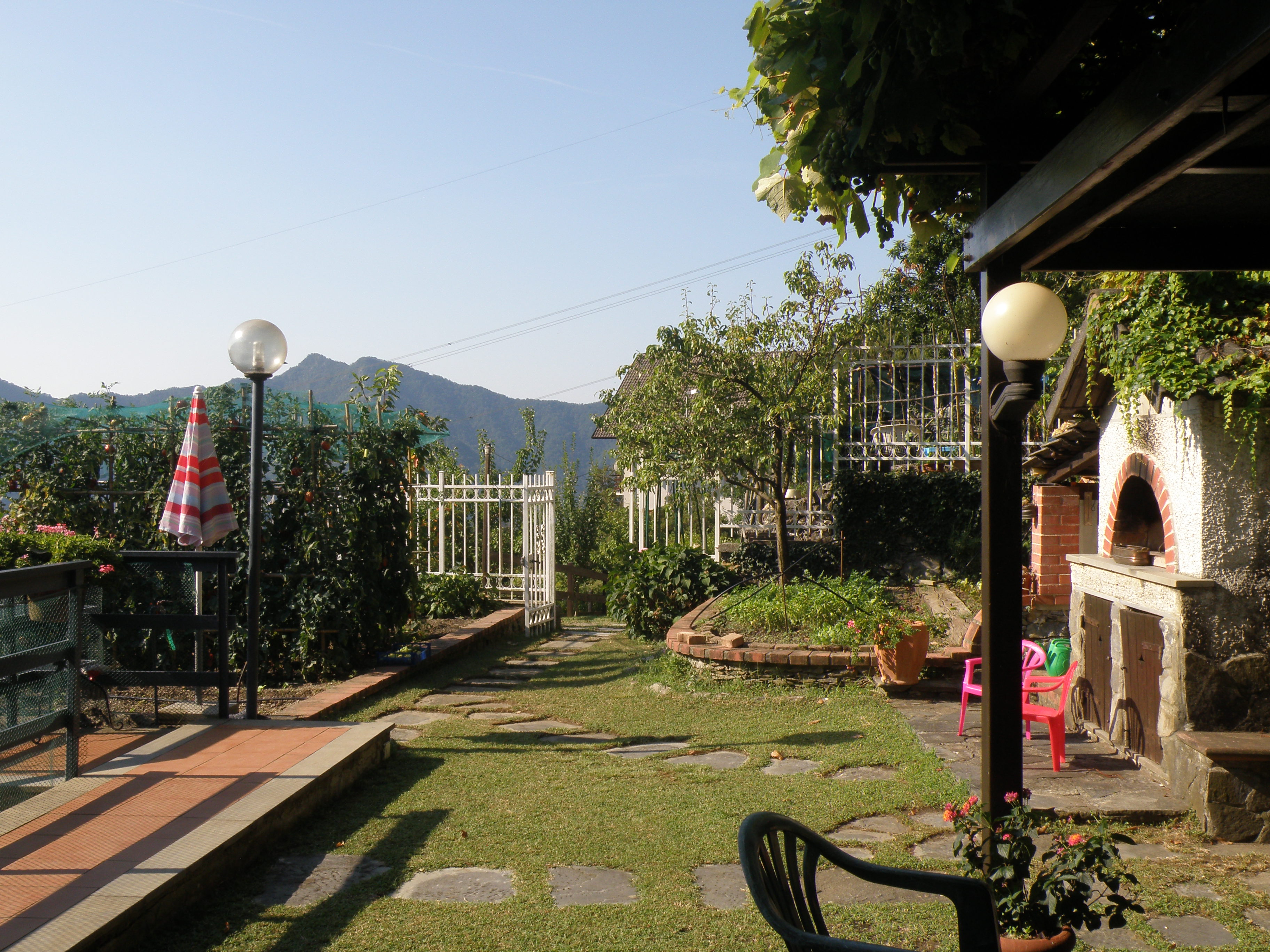 Il giardino davvero gradevole è splendidamente esposto ed attrezzato (Bersò con tavolo in legno, barbecue e forno a legna) Il terreno ad orto e frutteto è dotato di un impianto per l'irrigazione con cisterna di raccolta per l'acqua piovana con accumulo ci circa 4.000 lt.