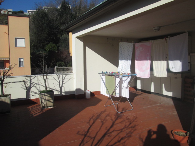 La proprietà è composta al piano terra da ingresso, soggiorno (affacciato su balconata), cucinino e servizi (con doccia); al primo piano (al quale si accede tramite elegante scala interna) da disimpegno, grande camera matrimoniale (con gradevole ed ampia terrazza al piano), due camere singole (una con balcone) , grandissimo bagno (con vasca e finestra) e con, al piano superiore di copertura (con accesso sempre dalla elegante scala interna) da un'ampia terrazza parzialmente coperta utilizzabile come lavanderia/stenditoio o altro.